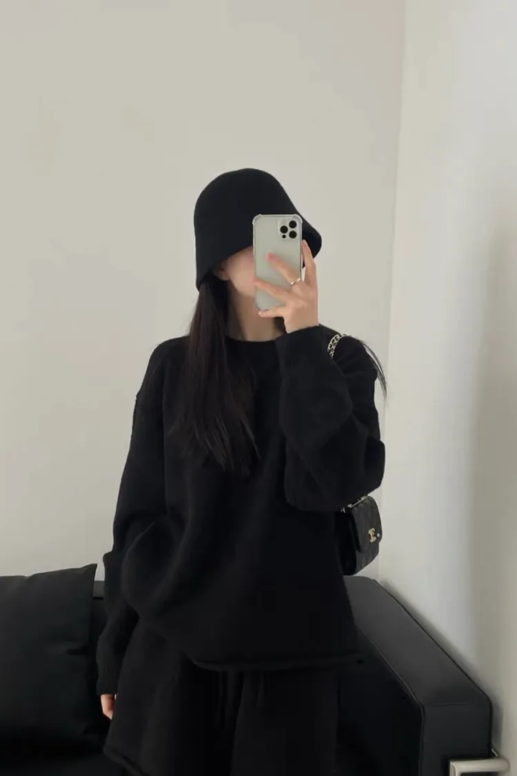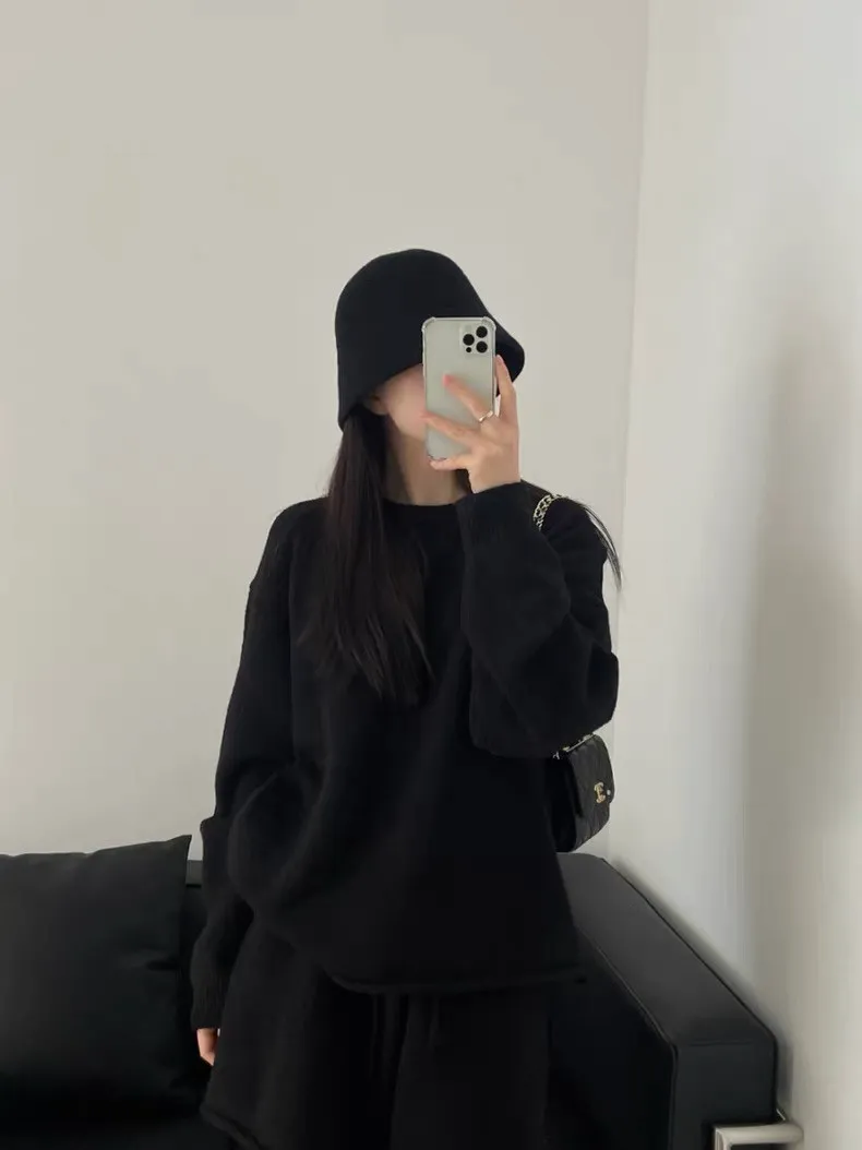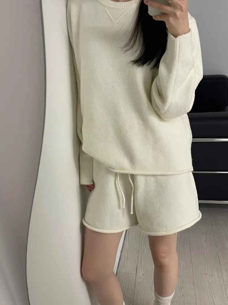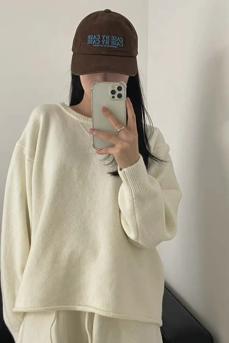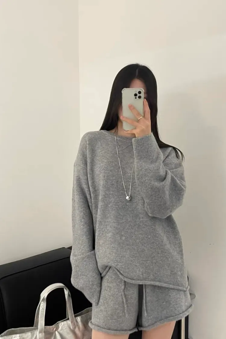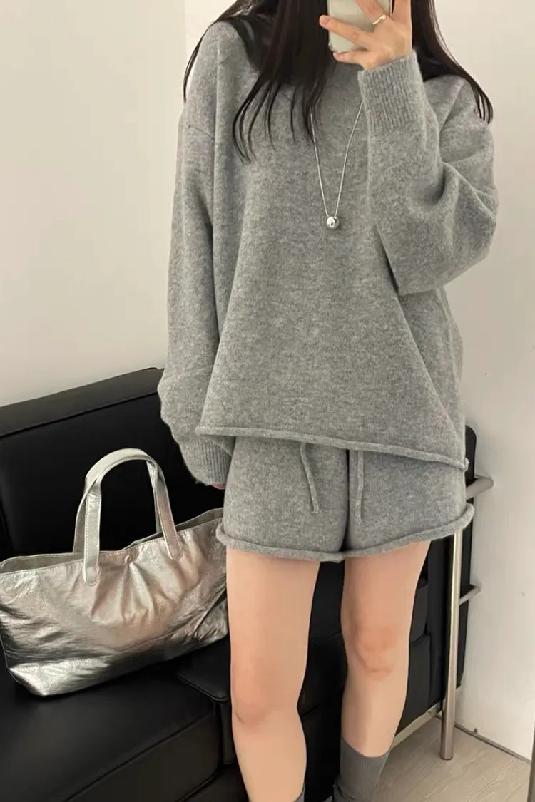 秋季慵懶軟糯寬鬆捲邊針織套裝