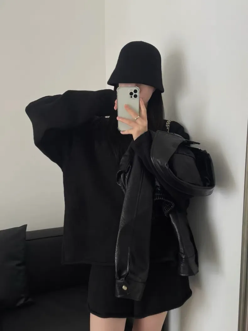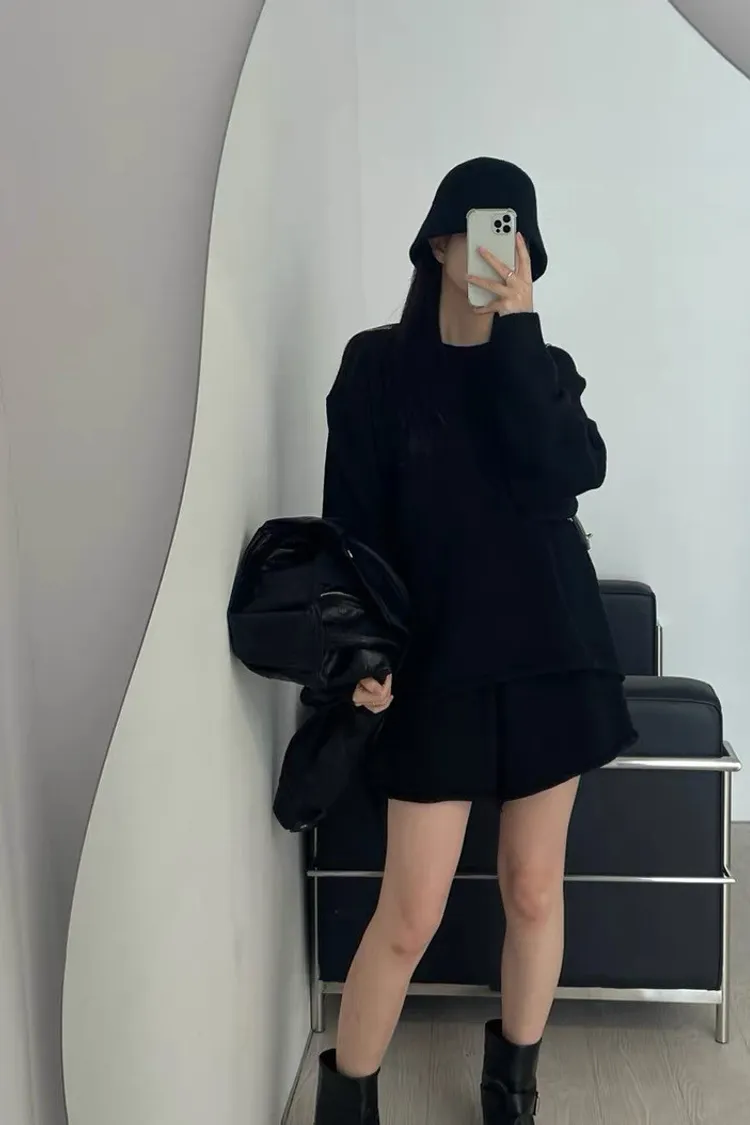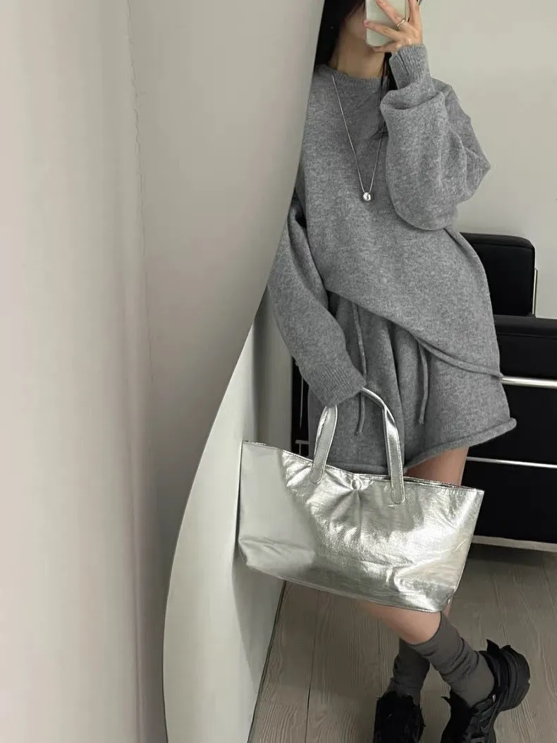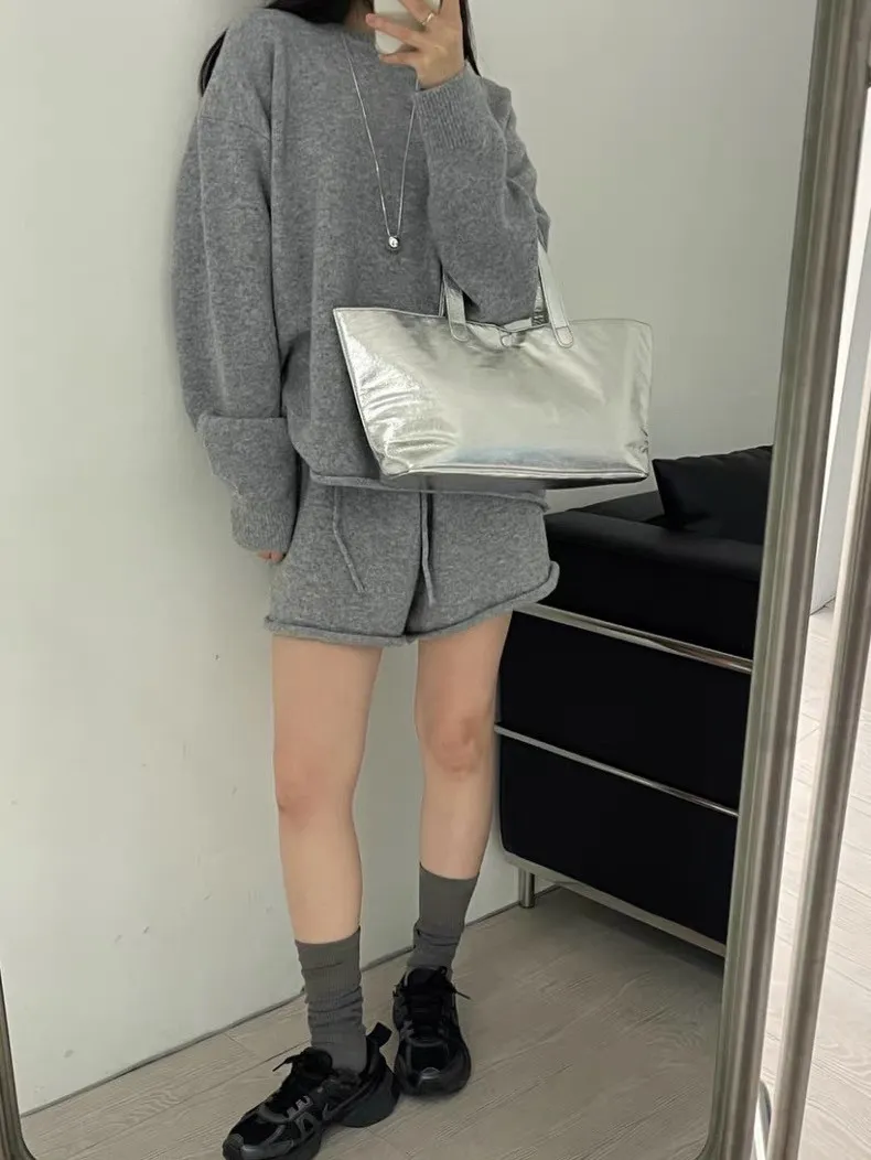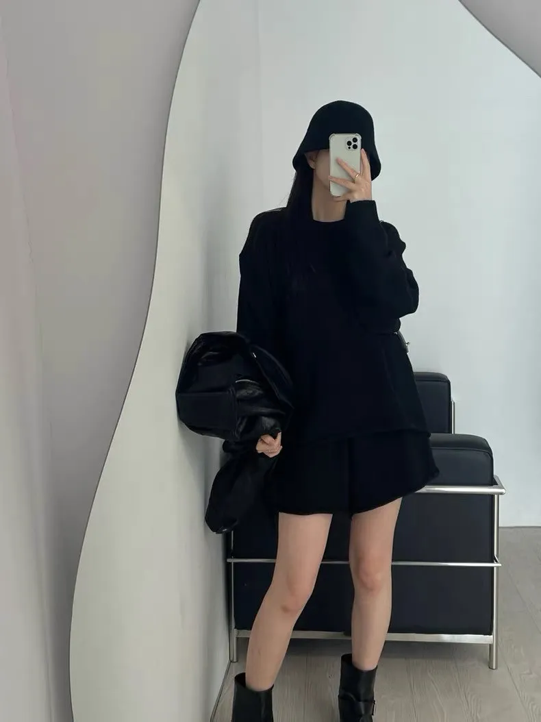 秋季慵懶軟糯寬鬆捲邊針織套裝