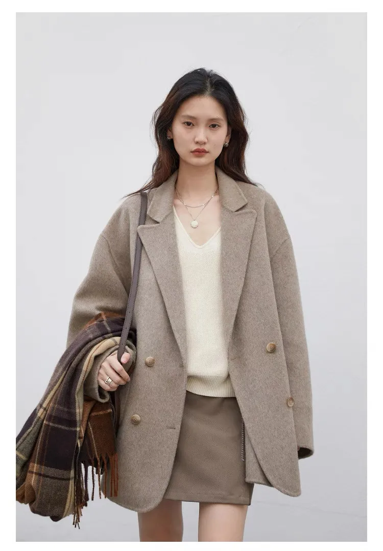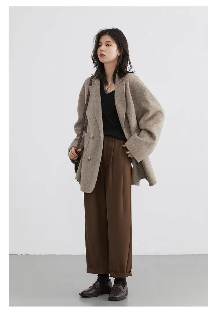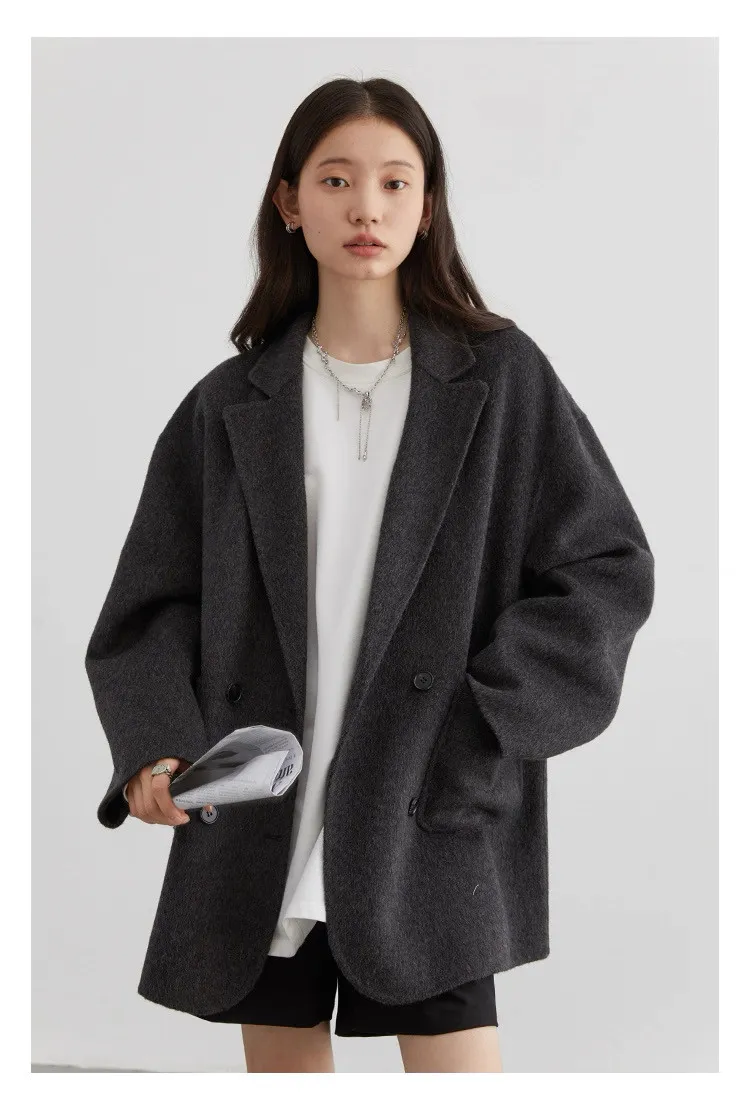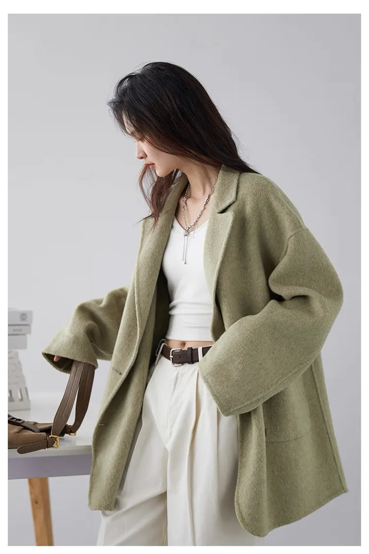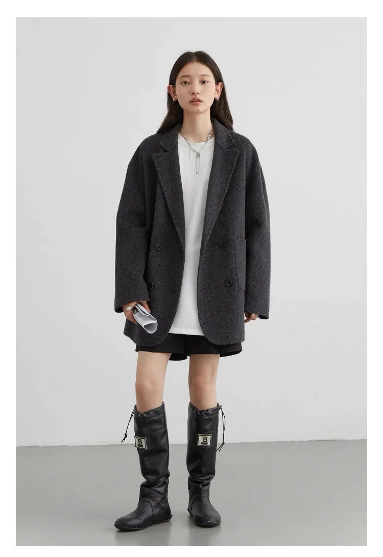 秋冬新款氣質綿羊毛雙面毛呢西裝式外套