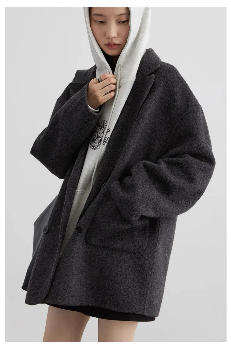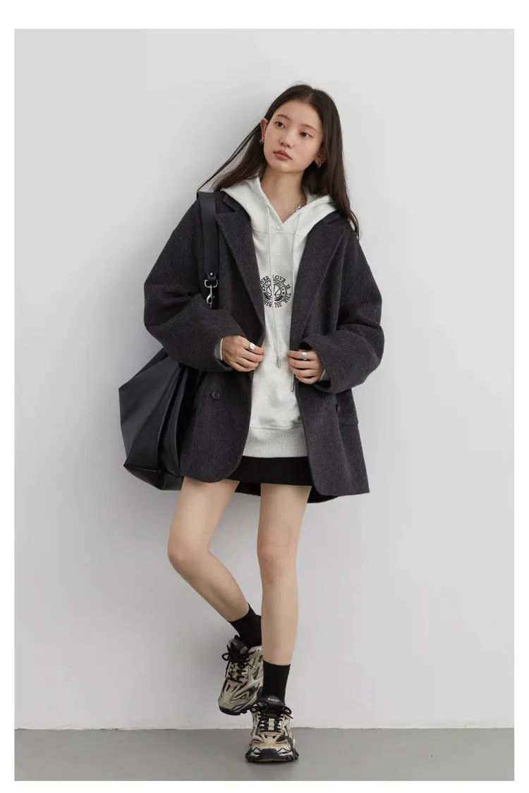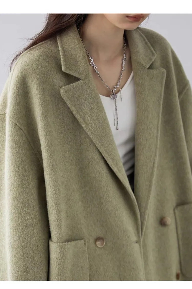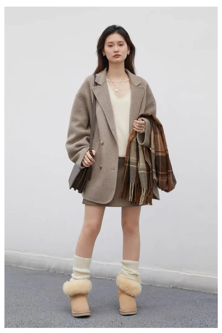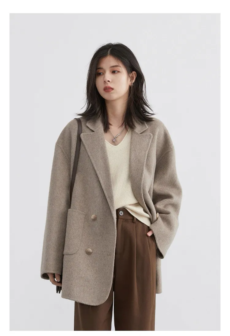 秋冬新款氣質綿羊毛雙面毛呢西裝式外套