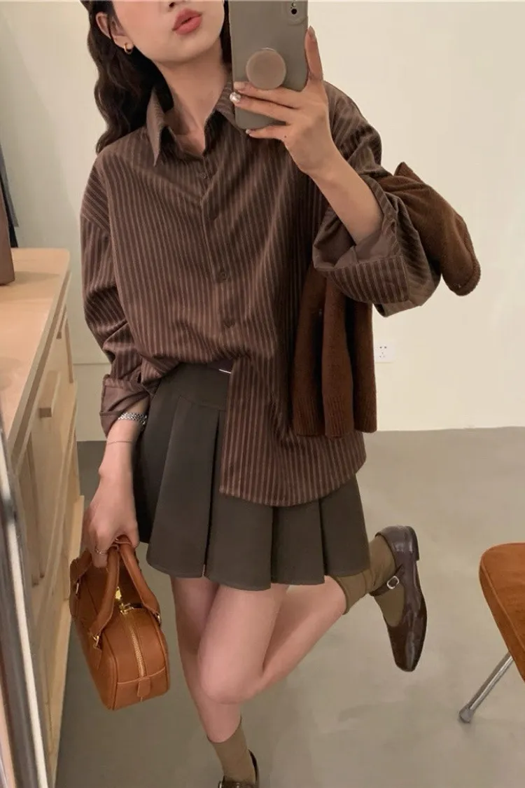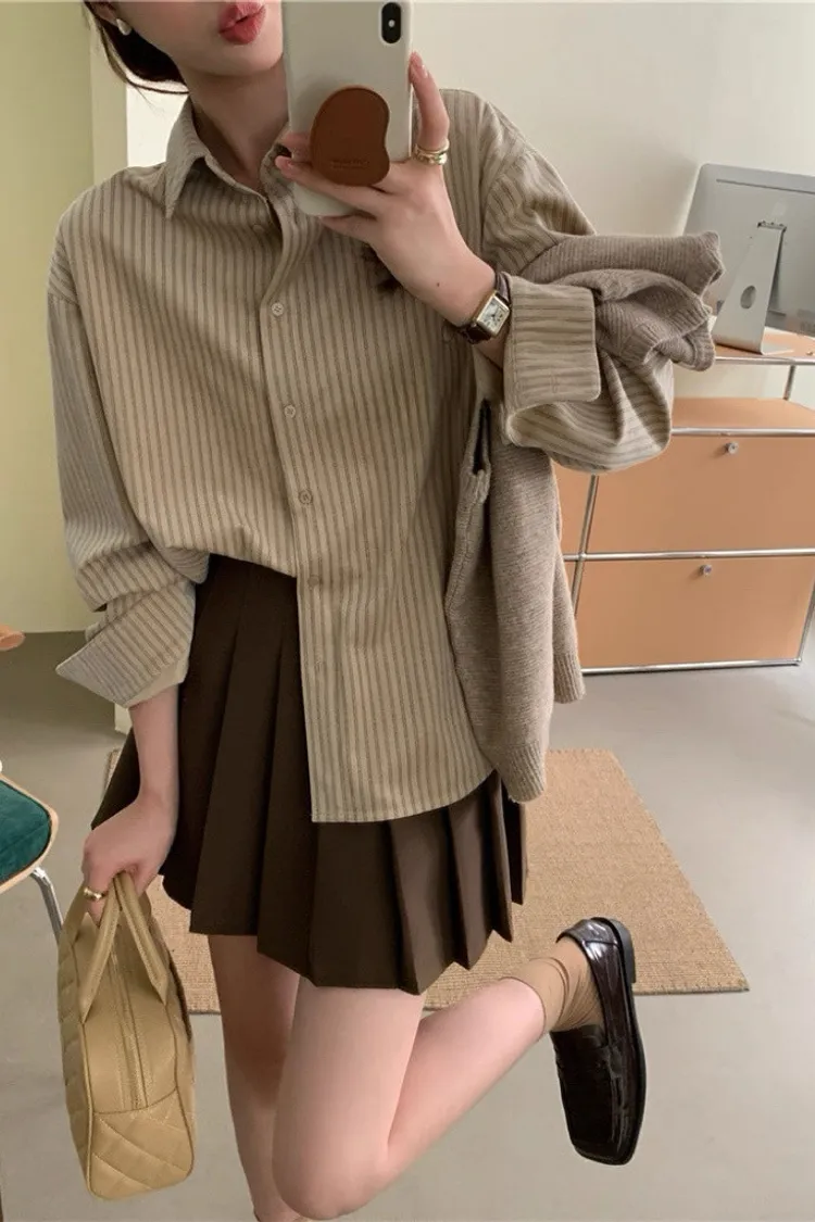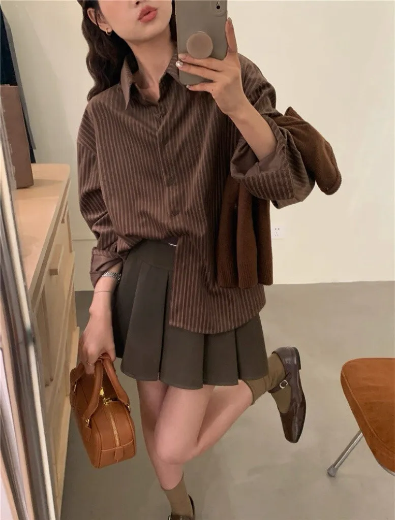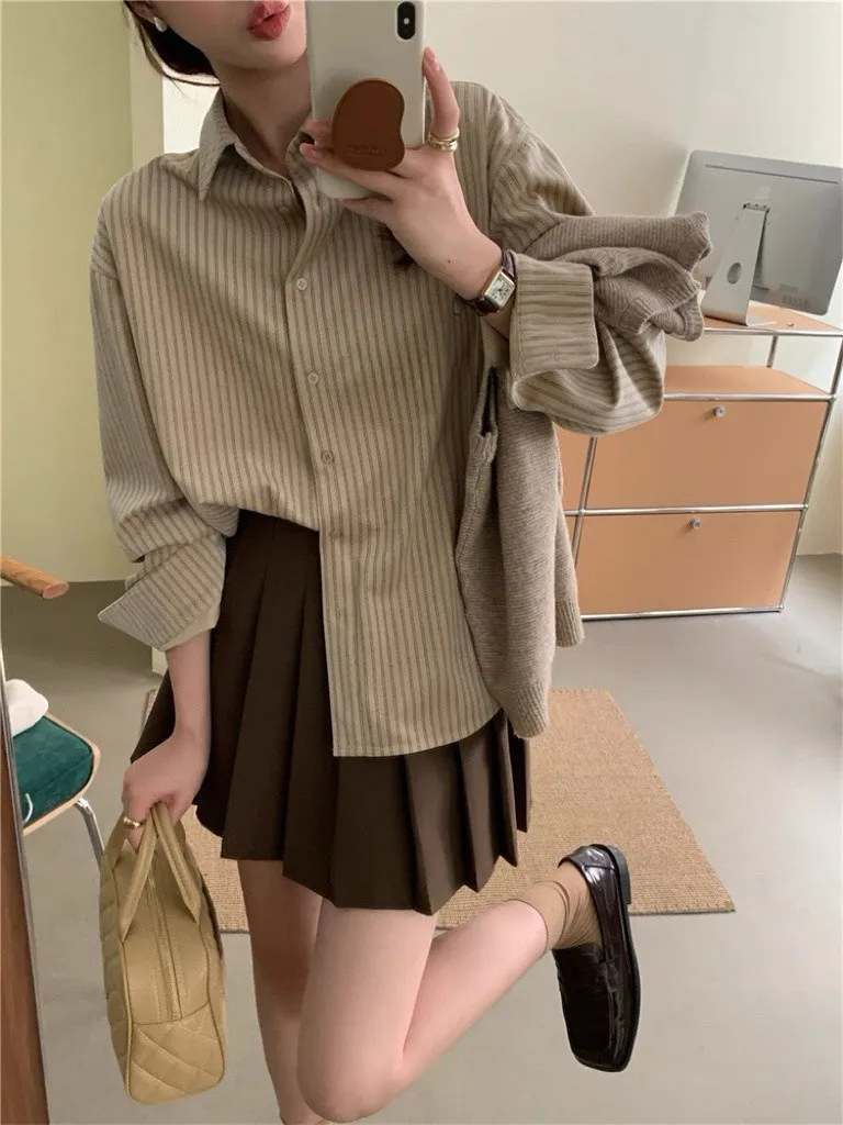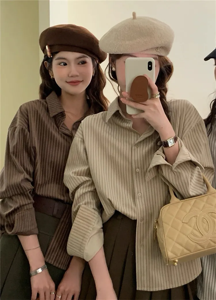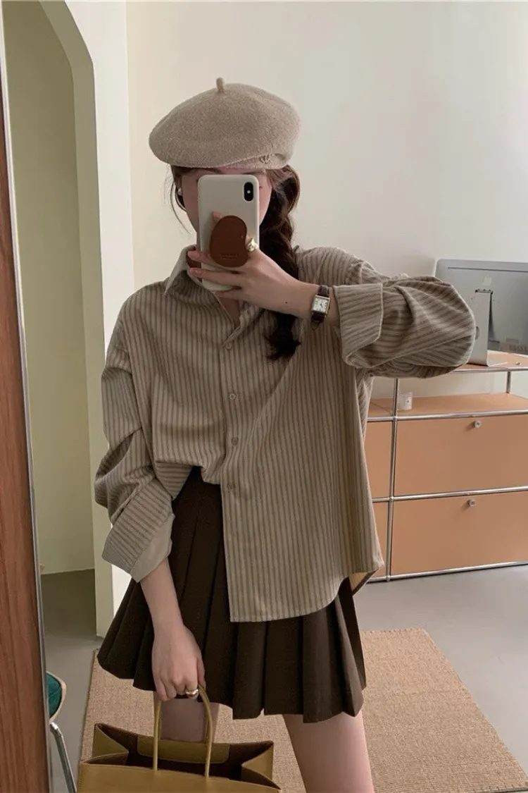 秋冬燈心絨寬鬆小眾條紋襯衫