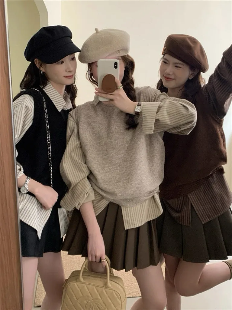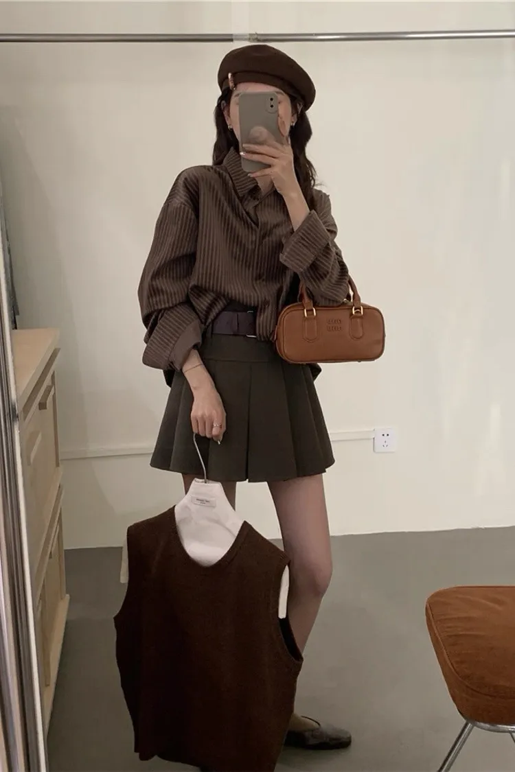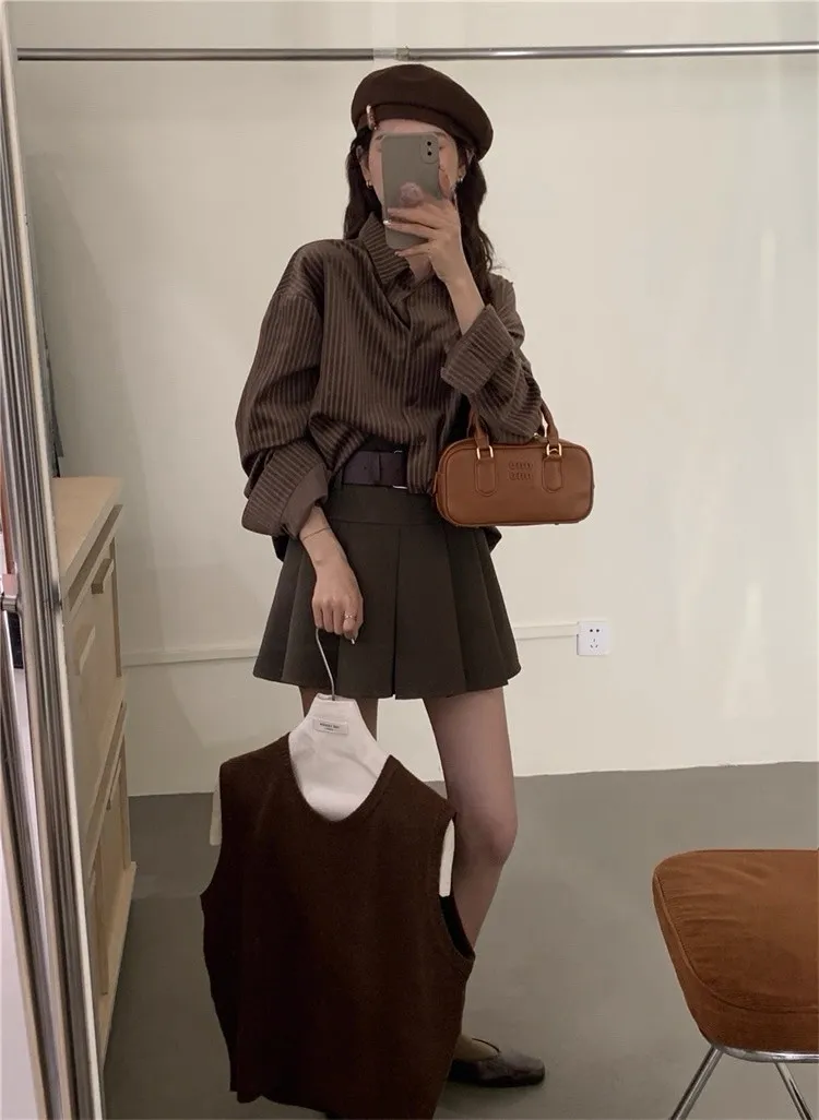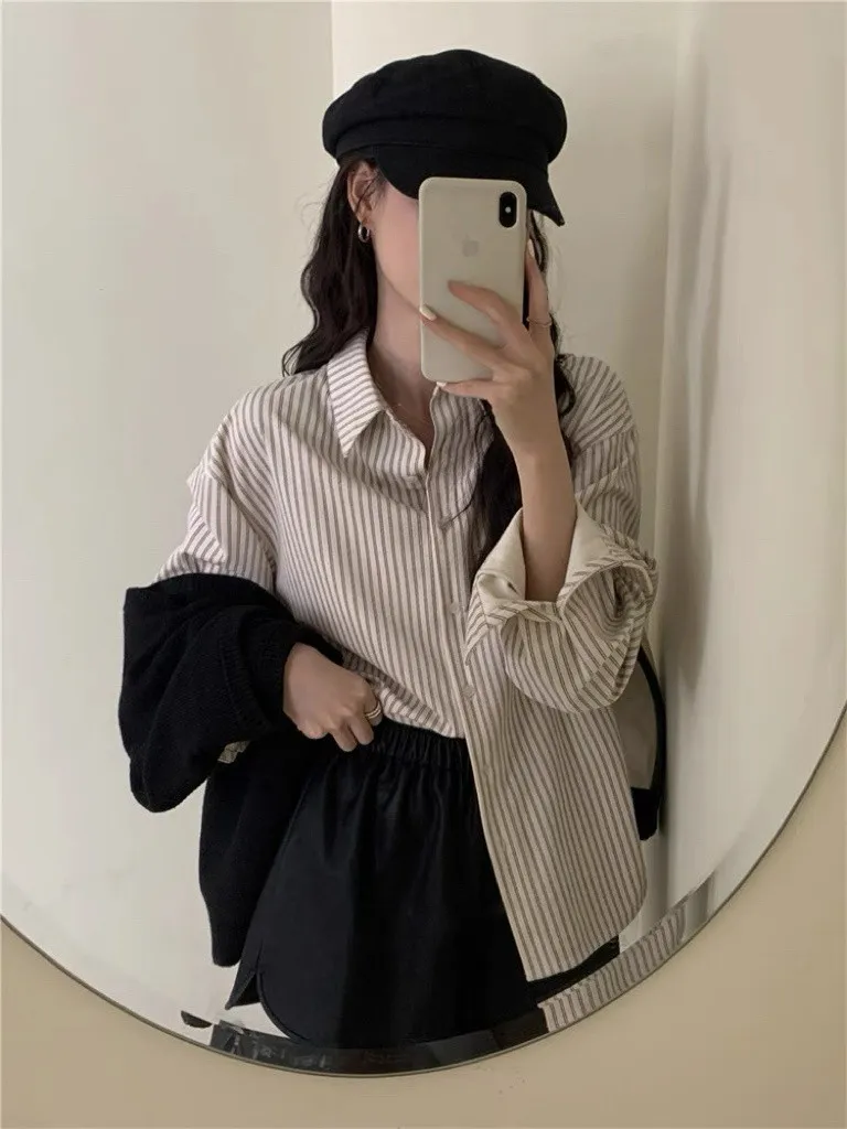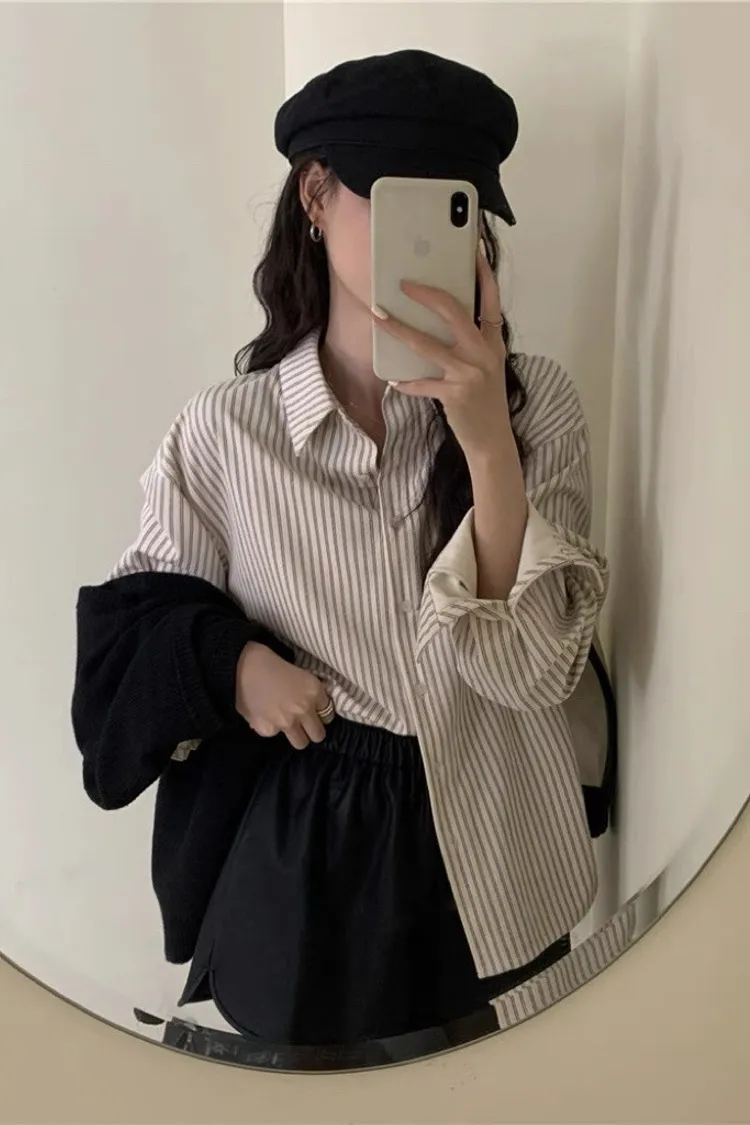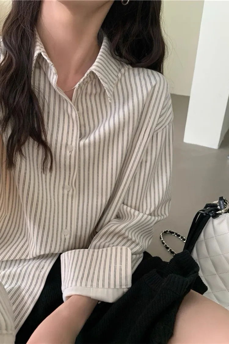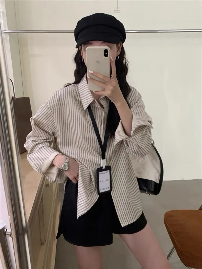 秋冬燈心絨寬鬆小眾條紋襯衫