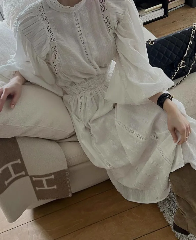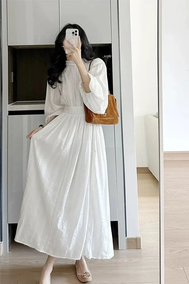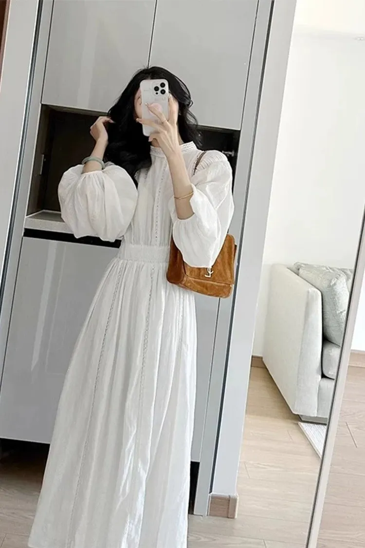 法式重工高級感泡泡袖連身裙