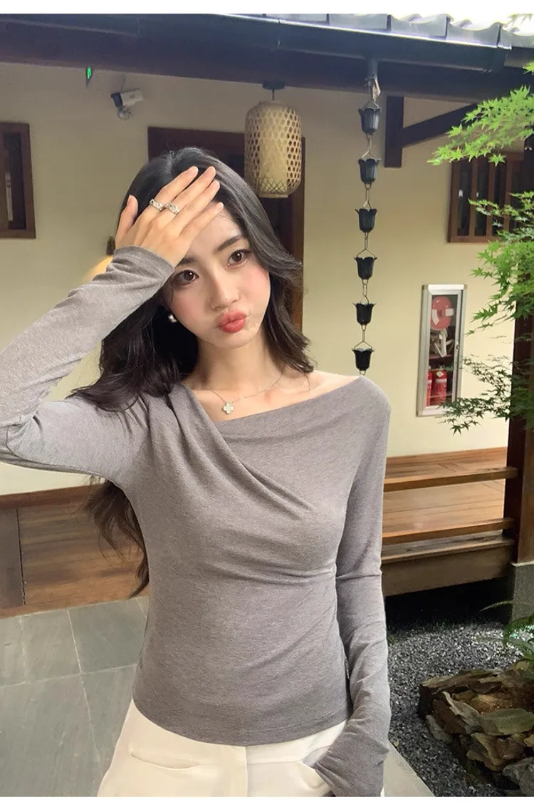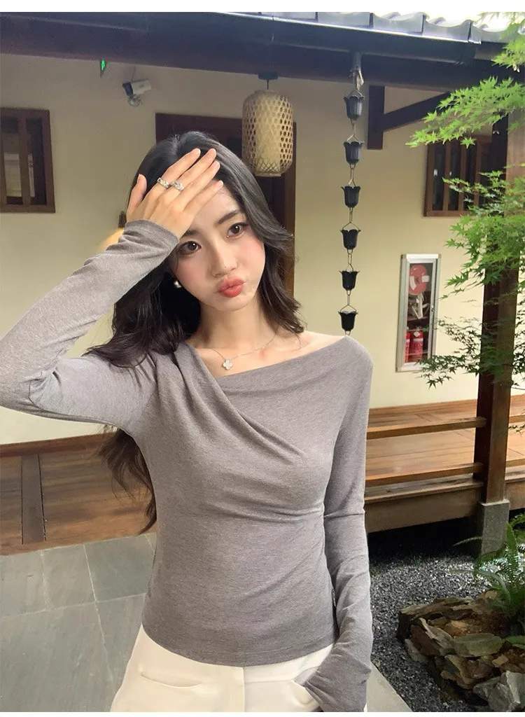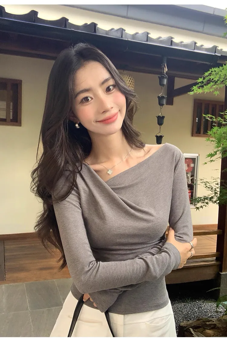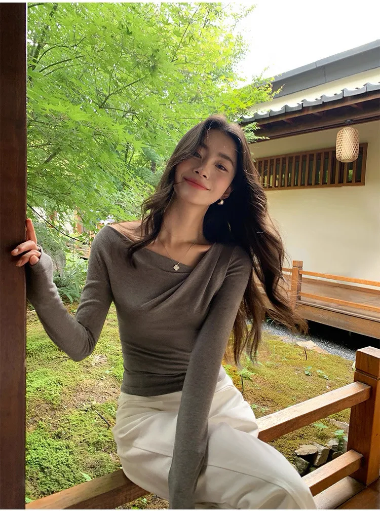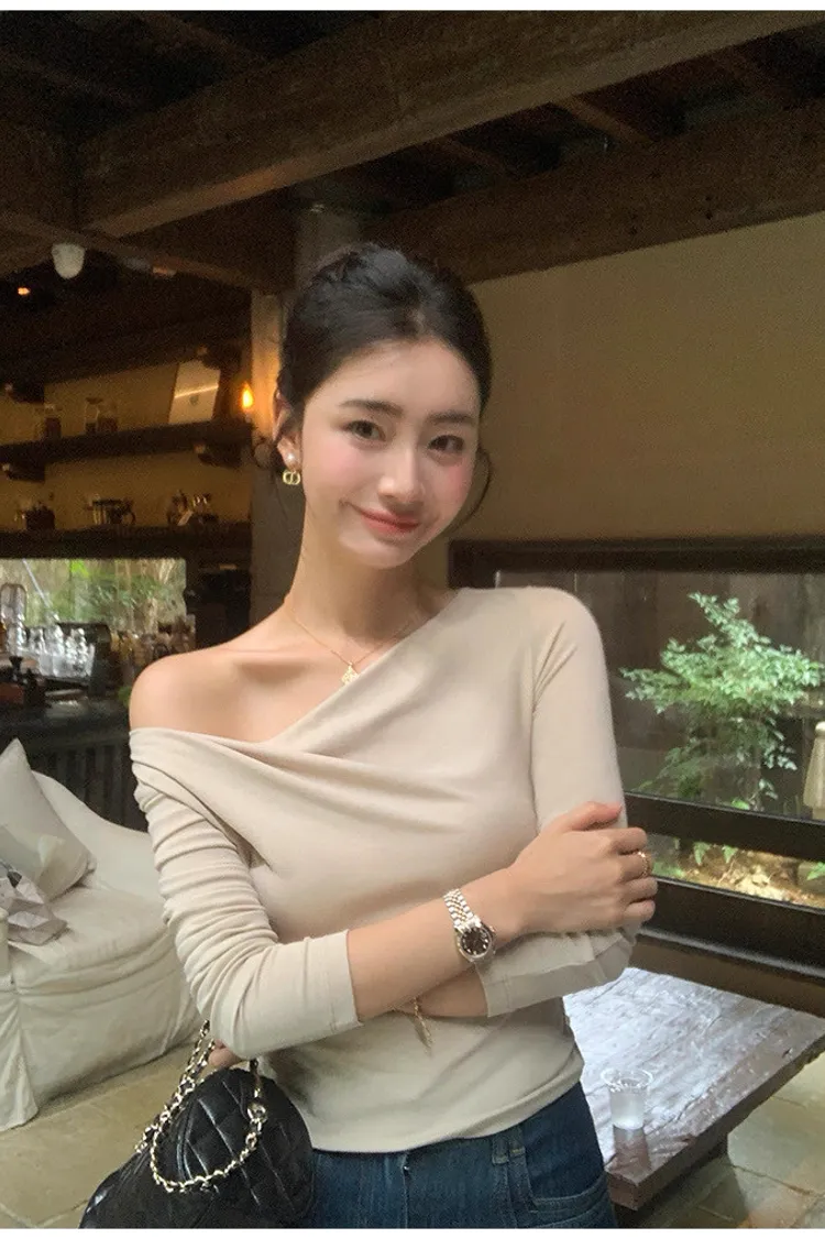 氣質小姐姐不規則斜肩針織衫