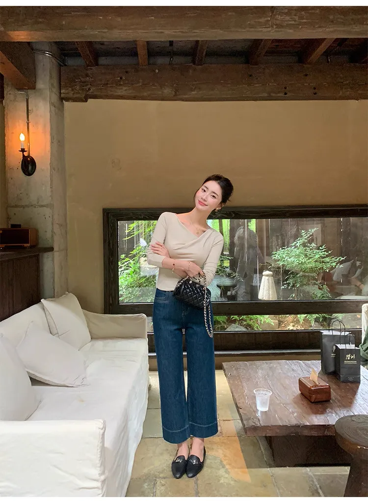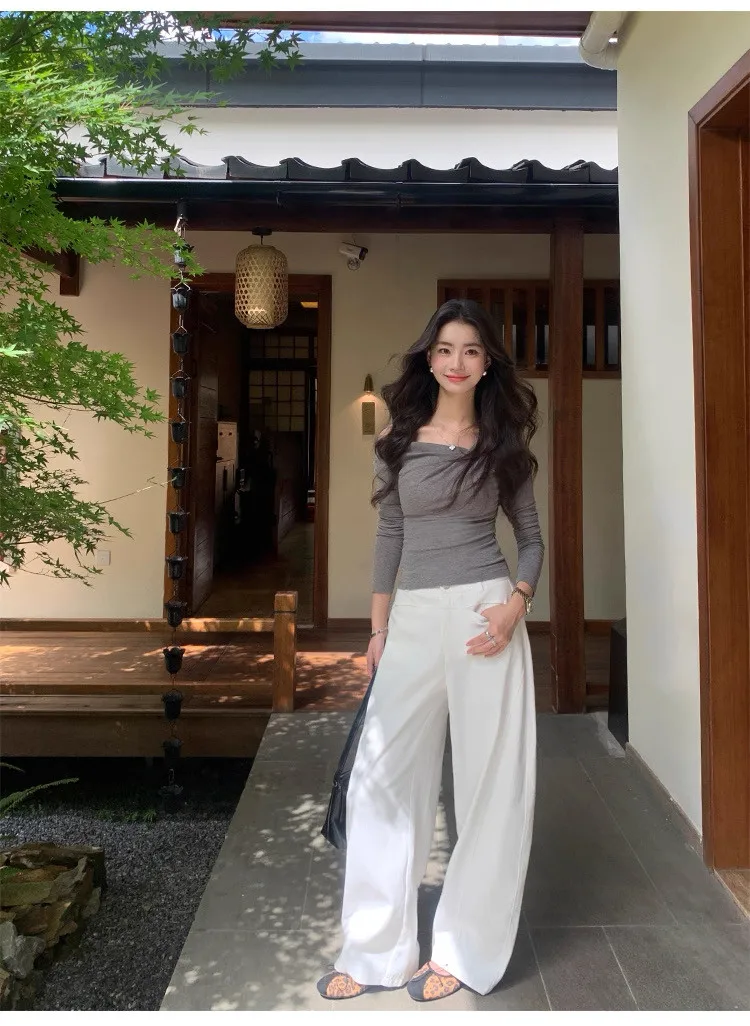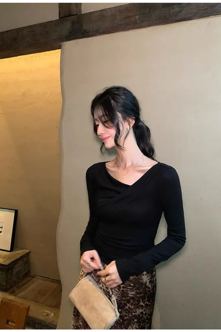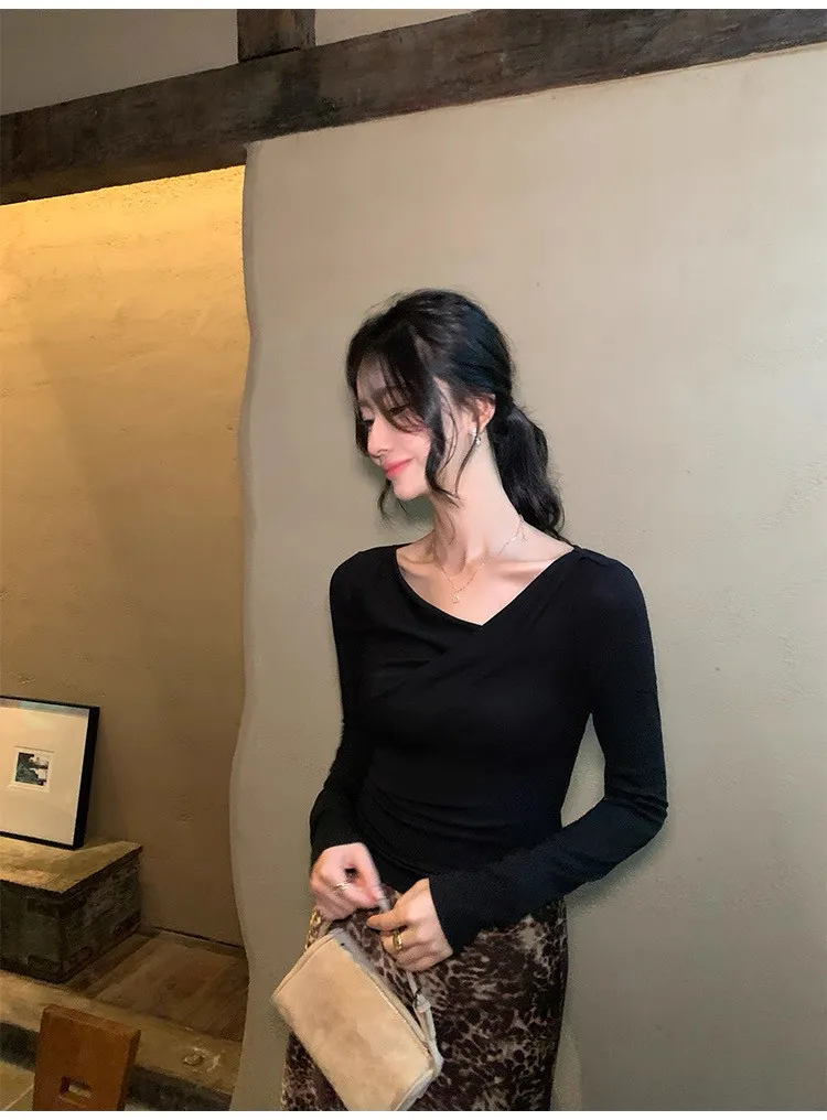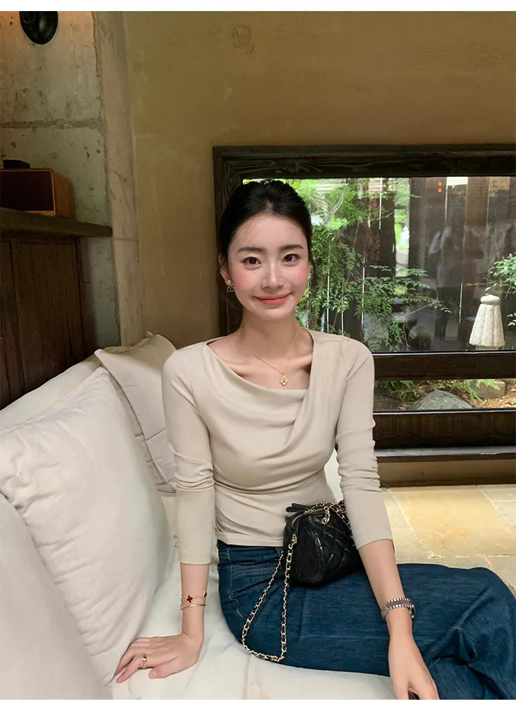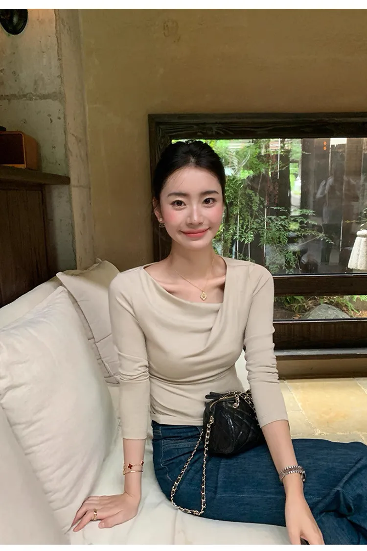 氣質小姐姐不規則斜肩針織衫