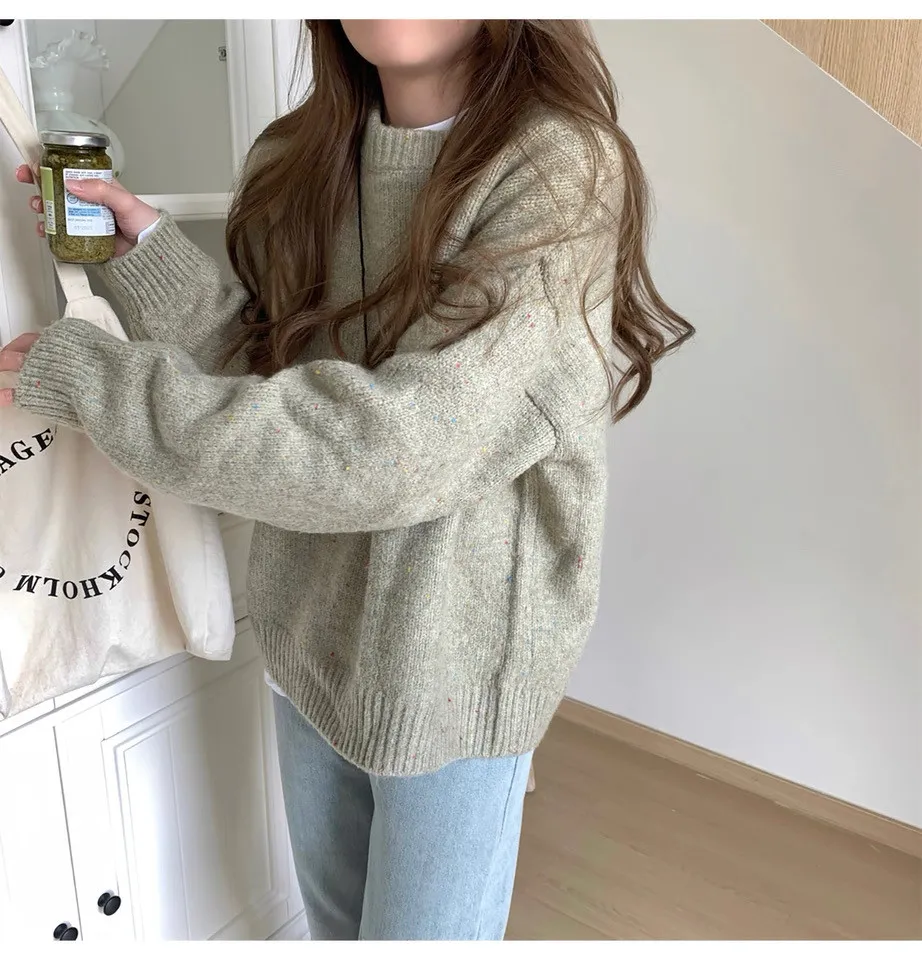 甜甜氛圍感彩色點點針織毛衣