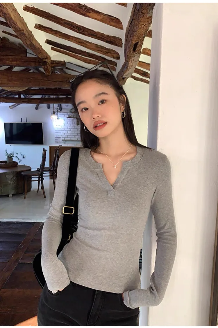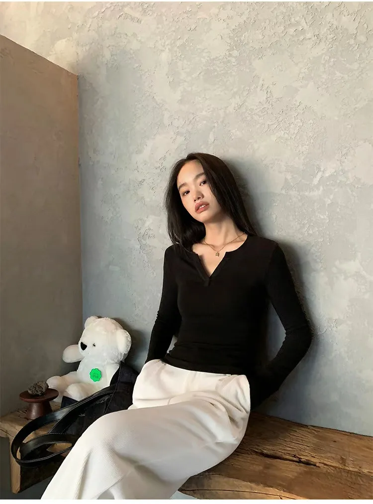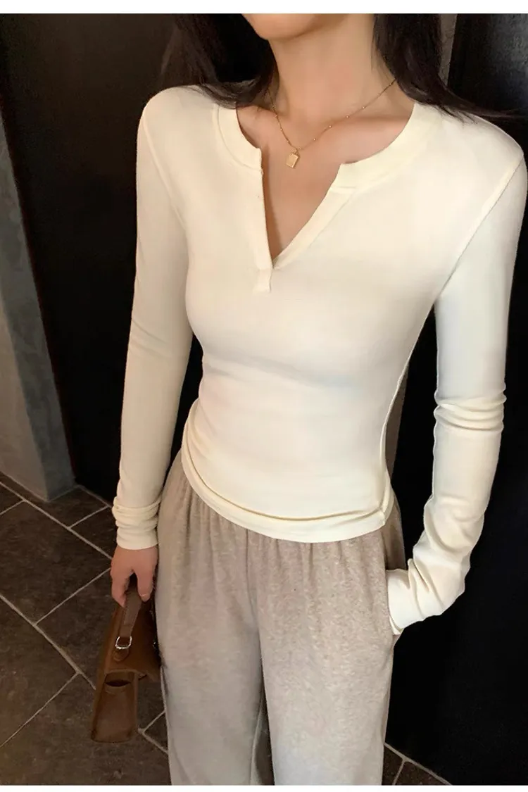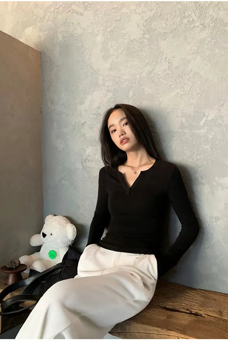 周末之約V領小心機修身打底衫