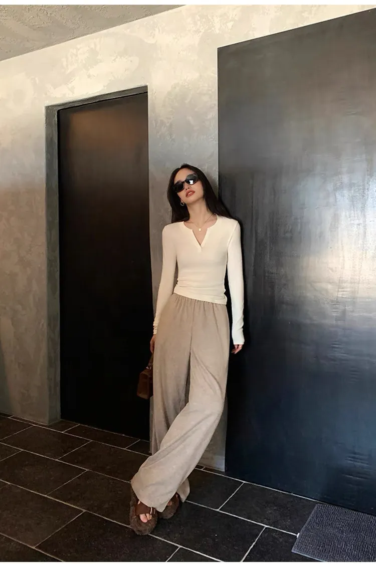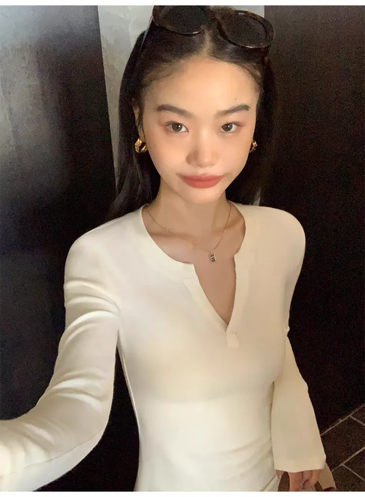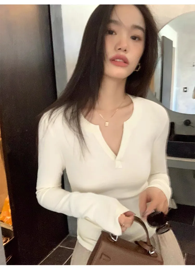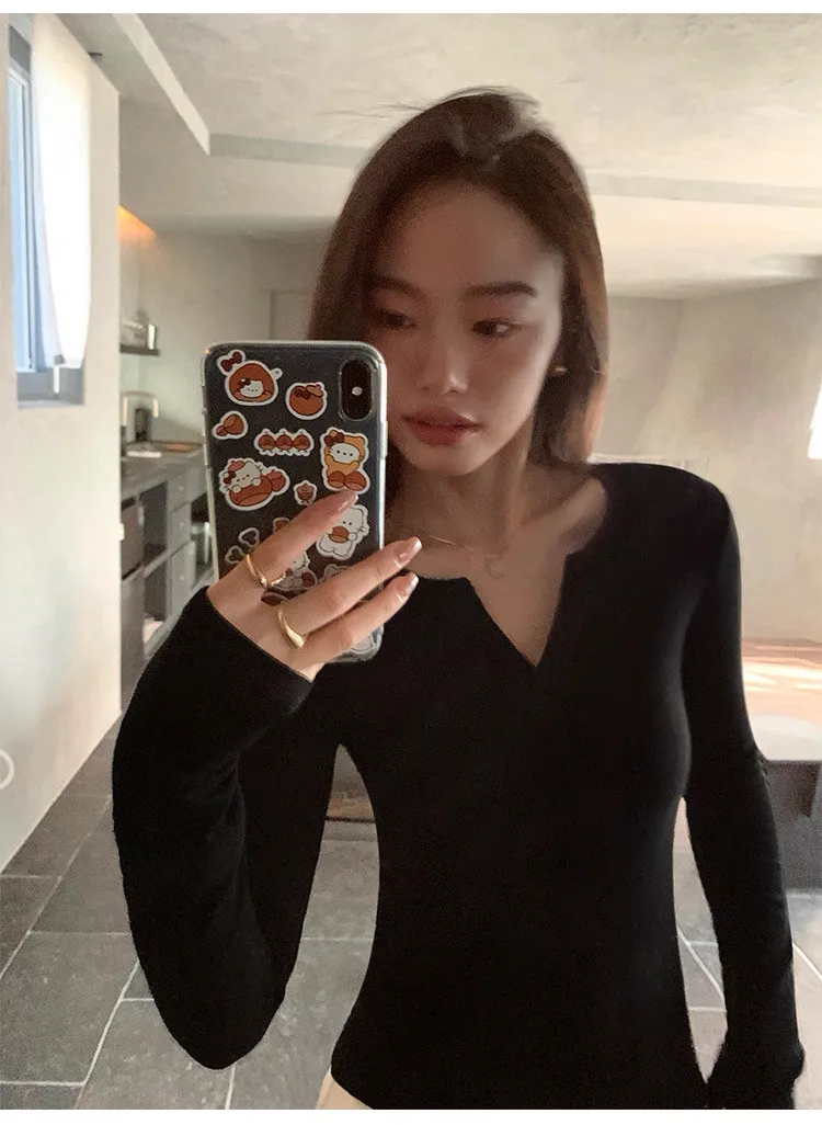 周末之約V領小心機修身打底衫