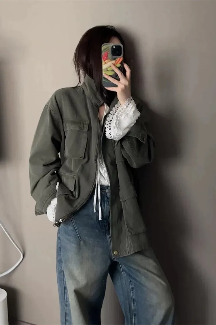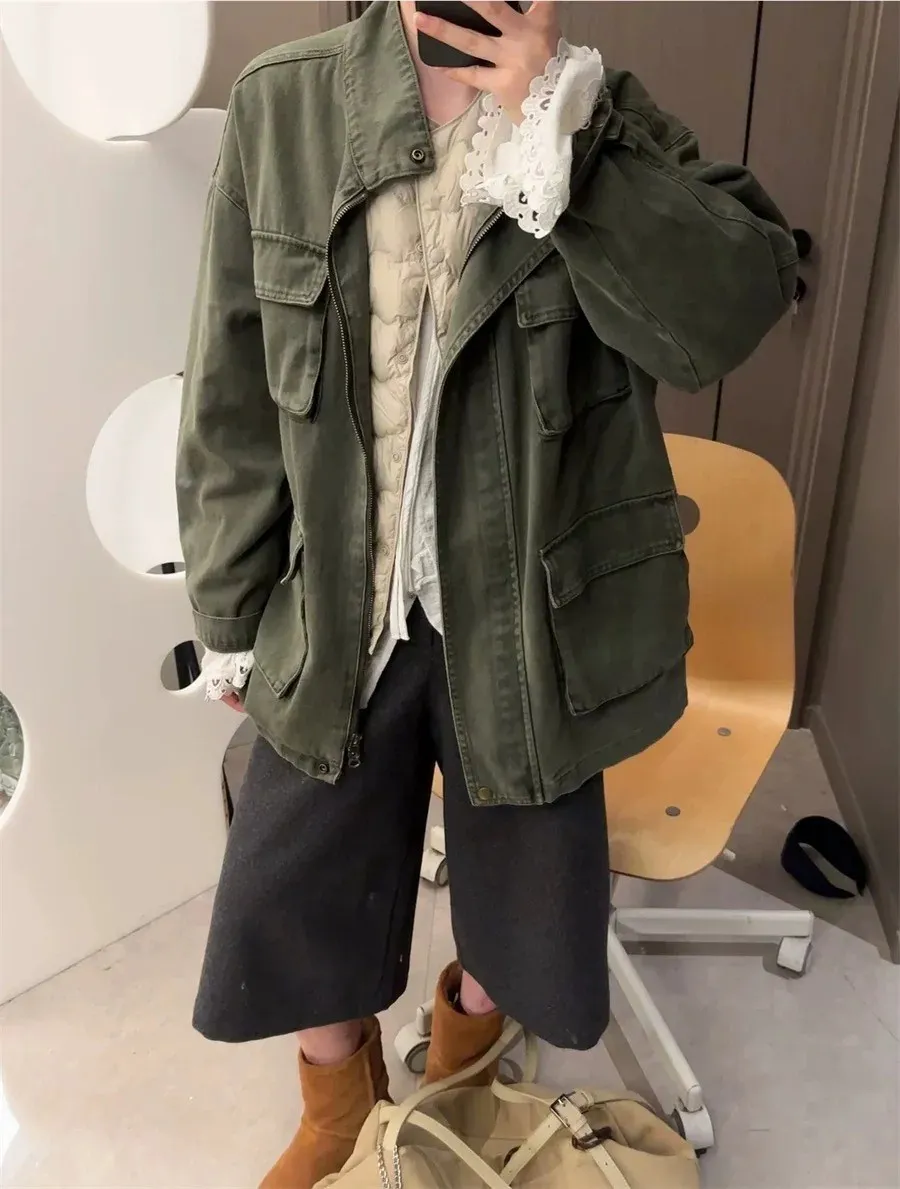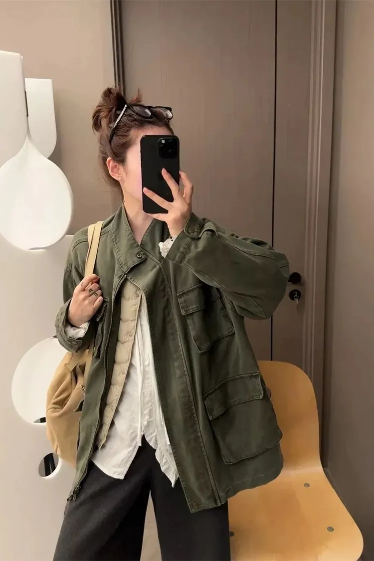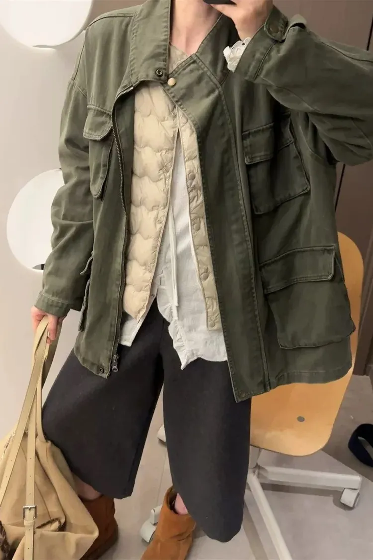 率性古著洗舊感工裝風衣外套