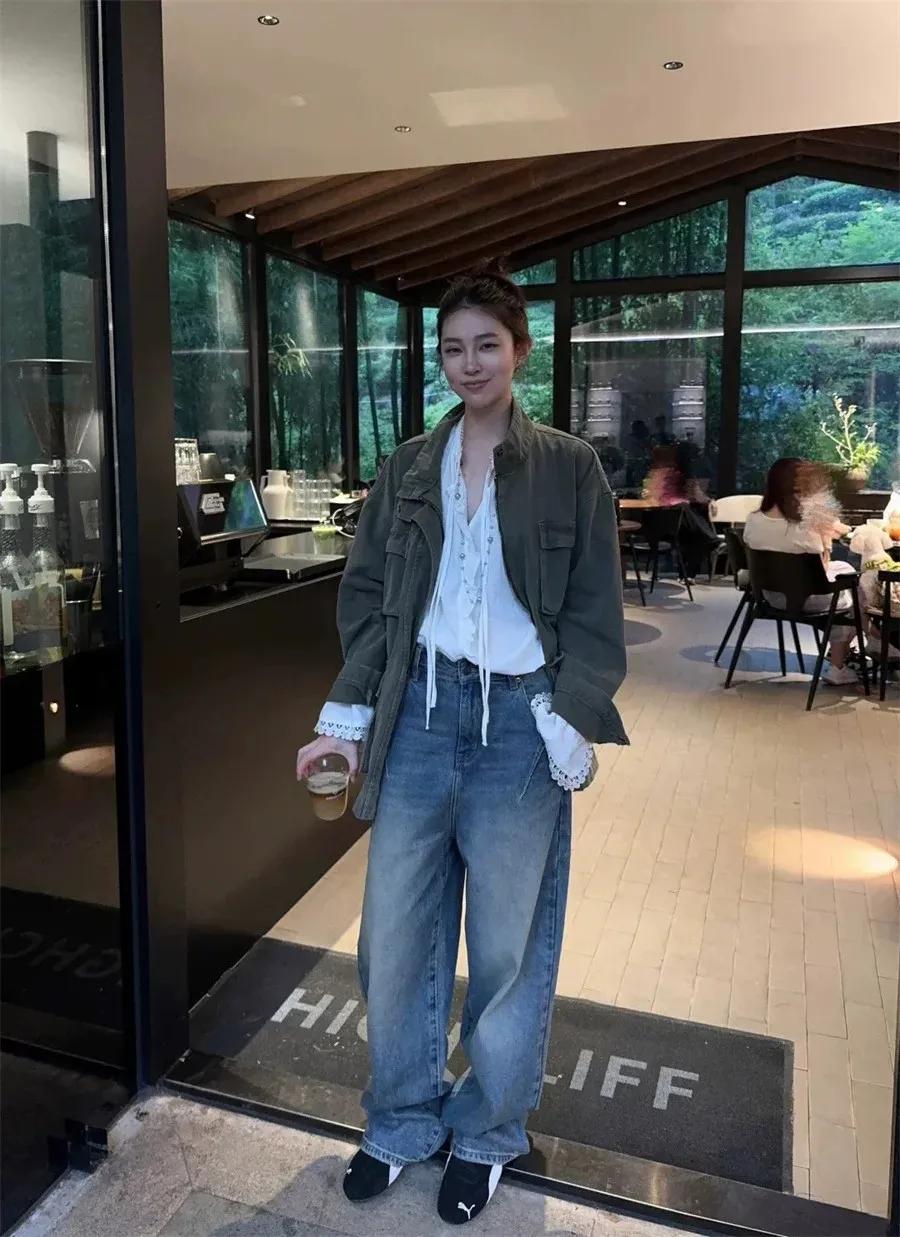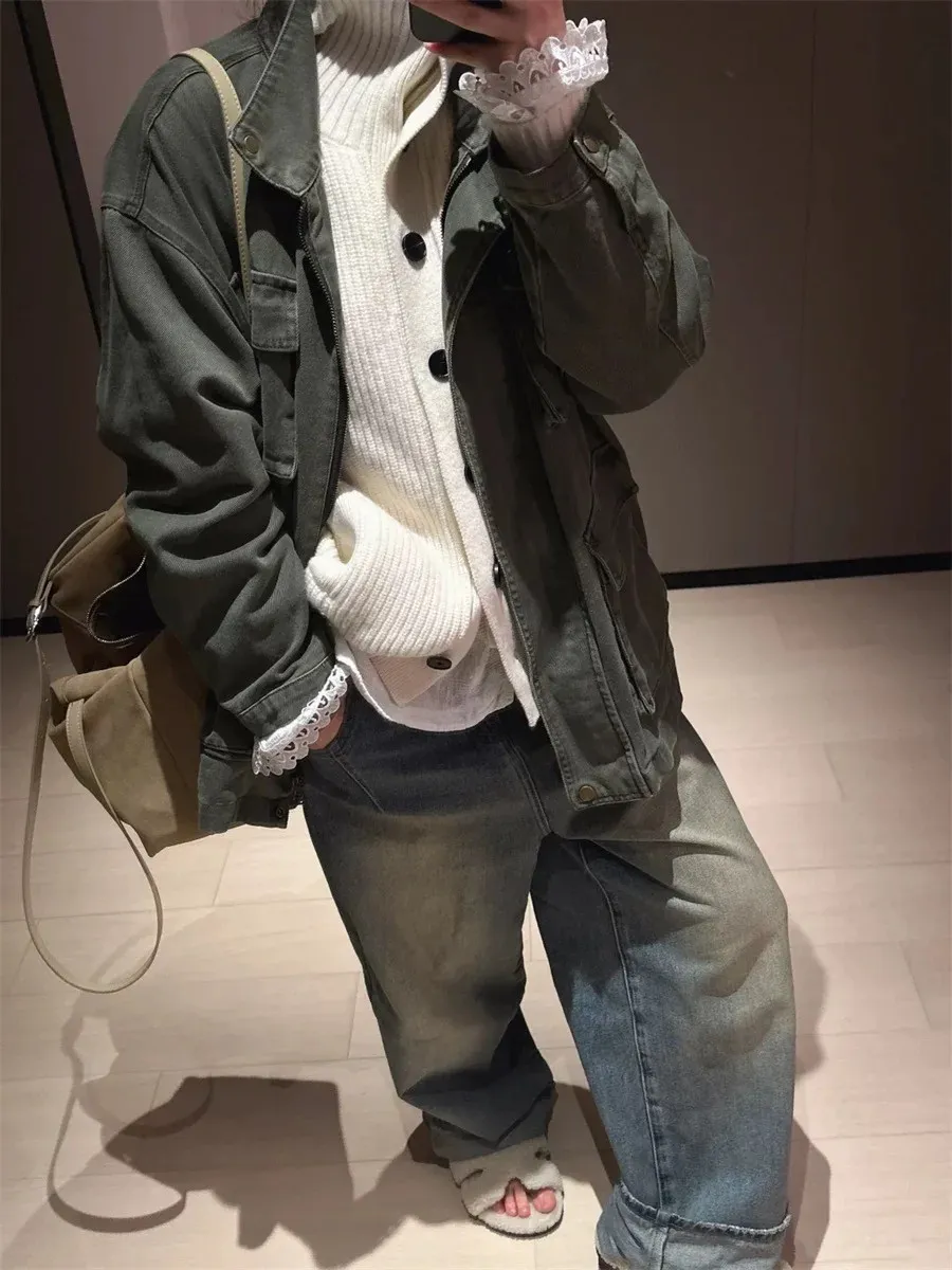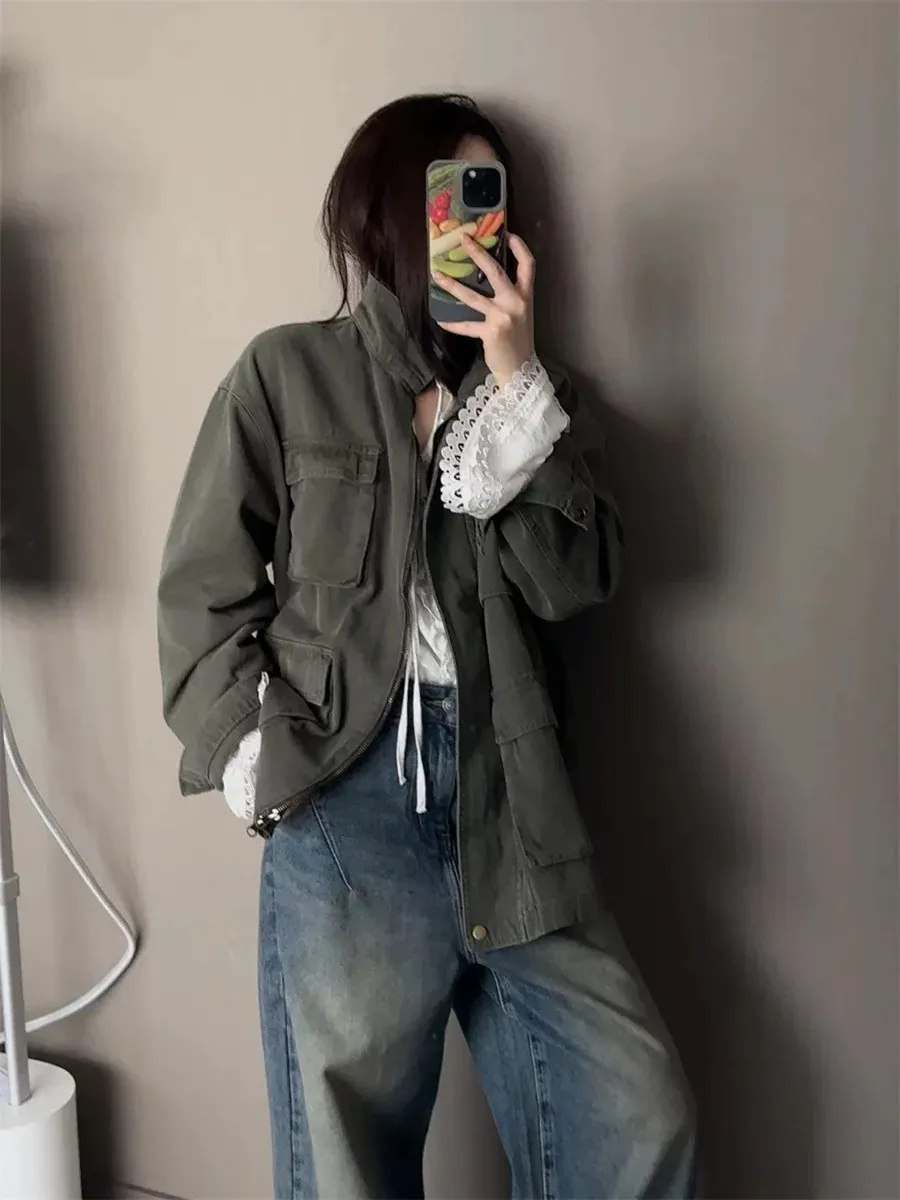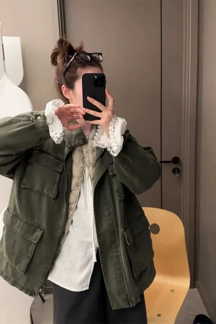 率性古著洗舊感工裝風衣外套