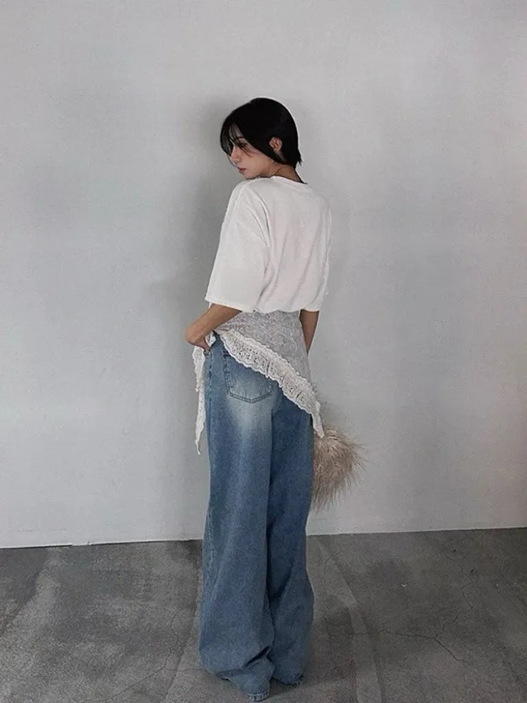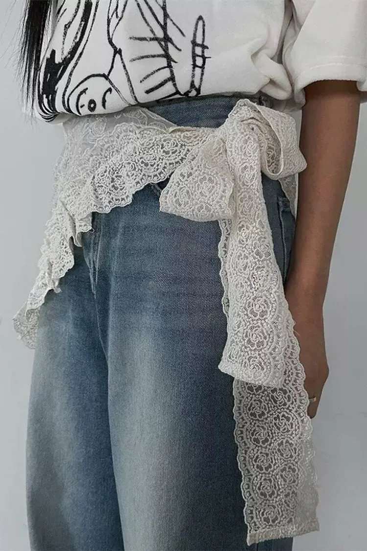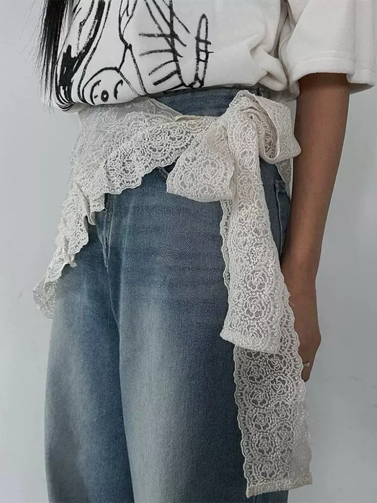 層次感穿搭復古刺繡蕾絲三角腰巾