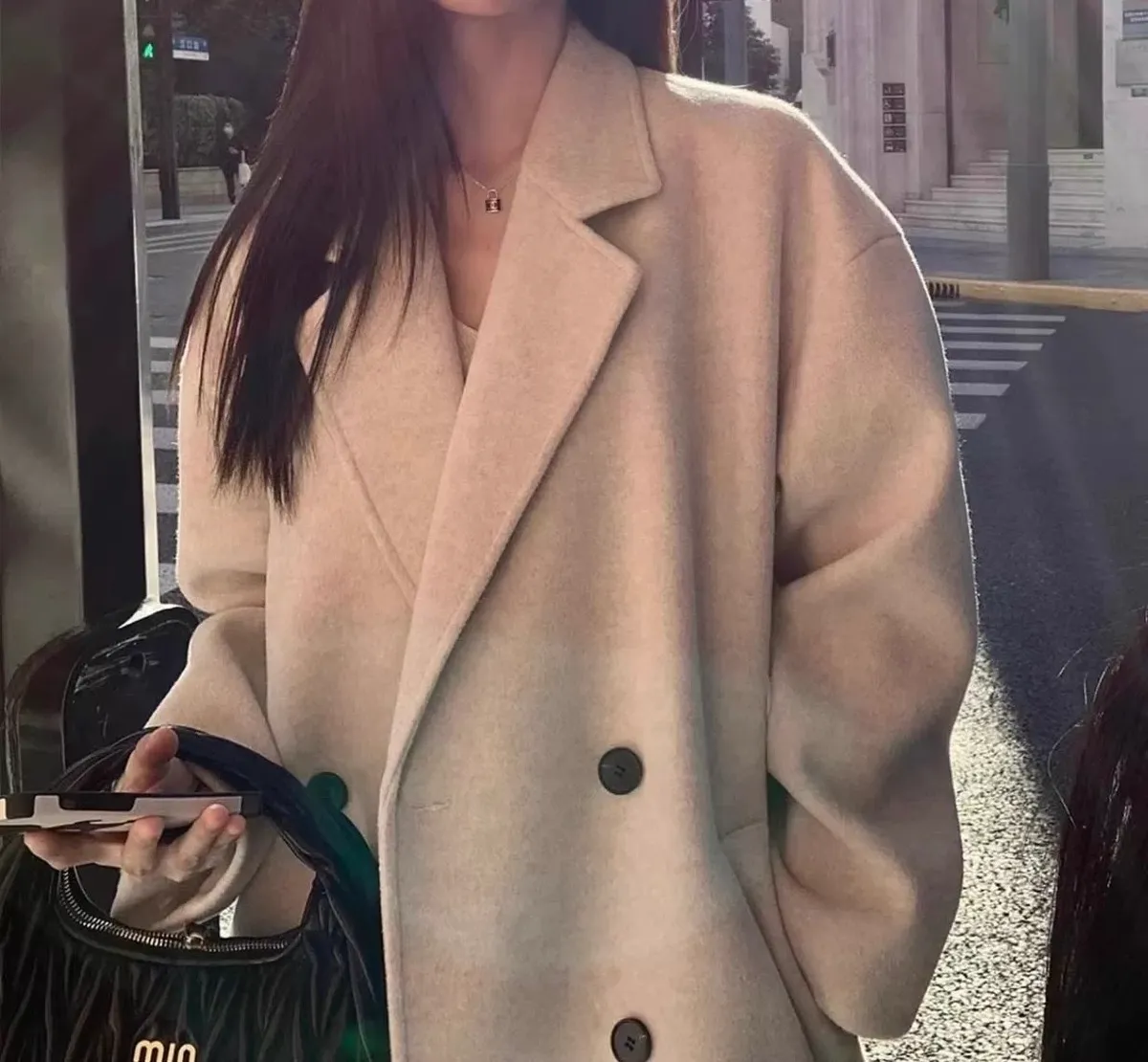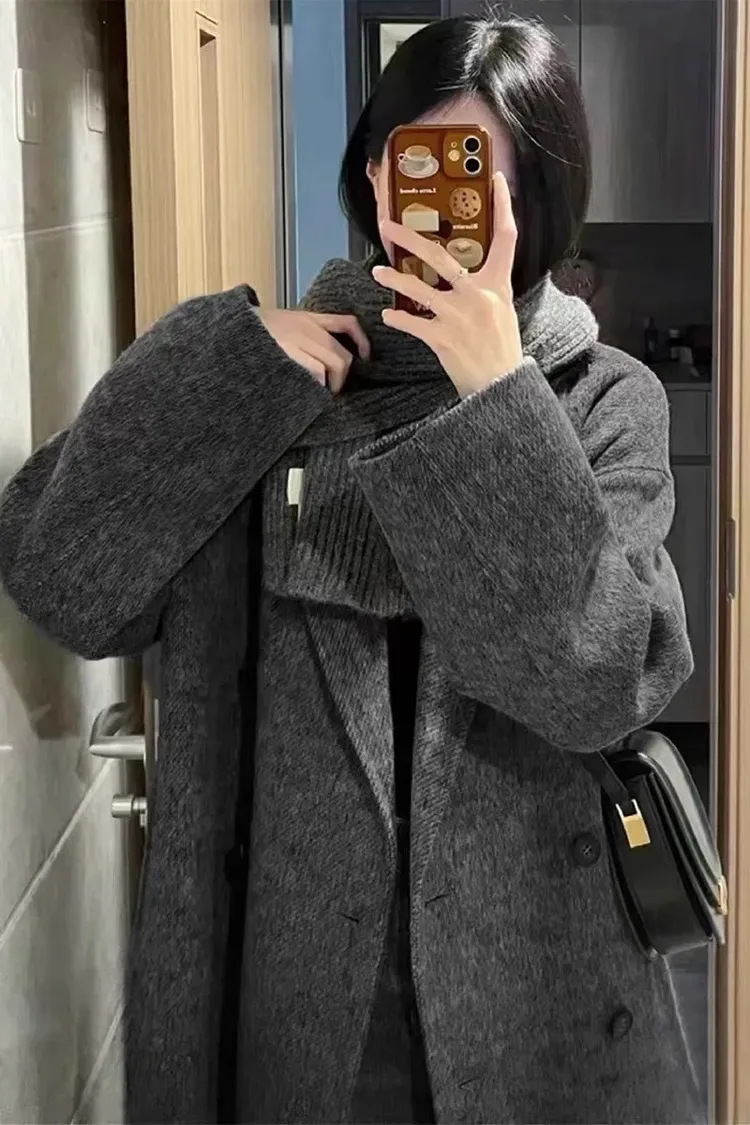 韓系高級感70%綿羊毛毛呢大衣外套