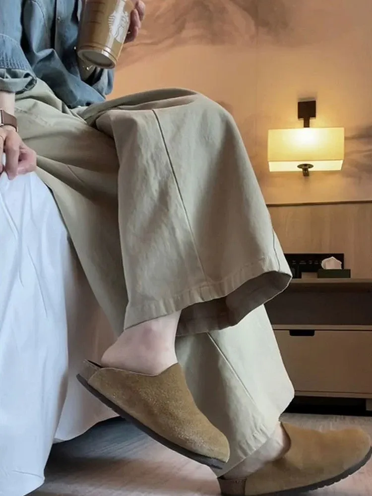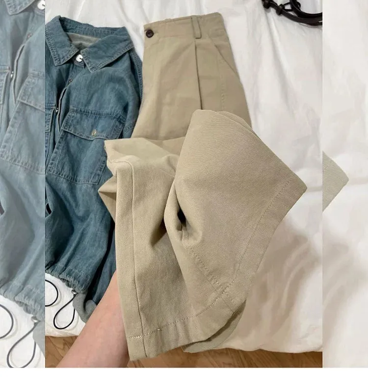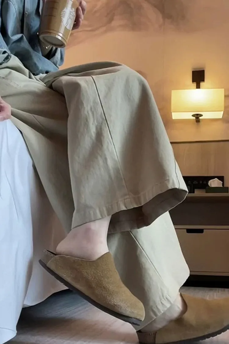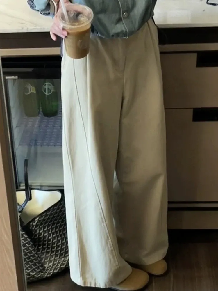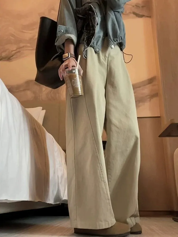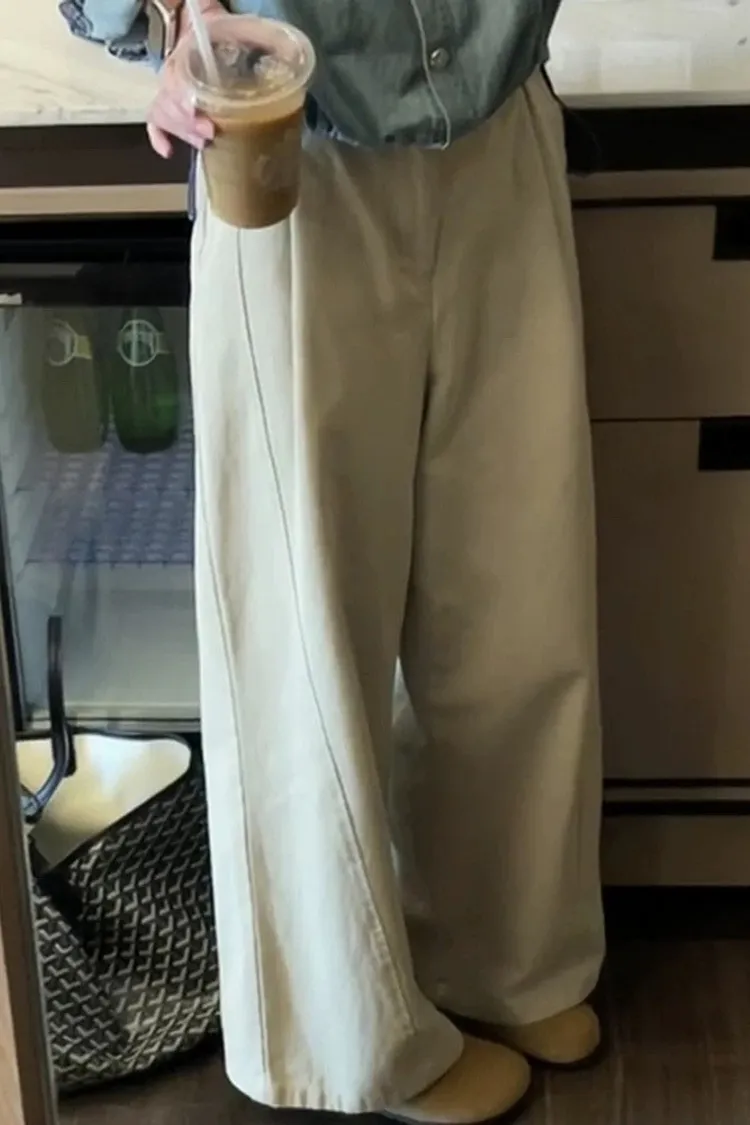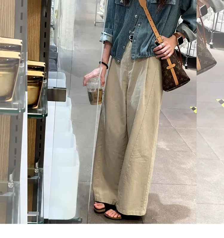 日系小文青慵懶卡其直筒褲