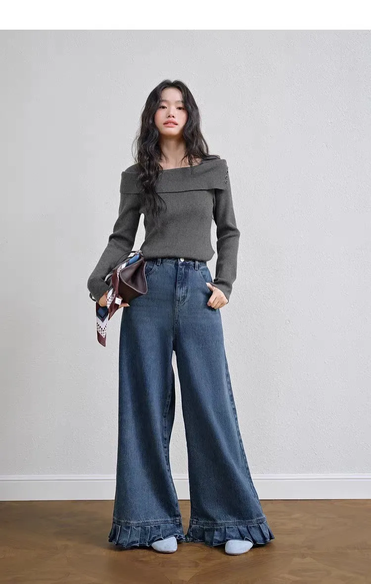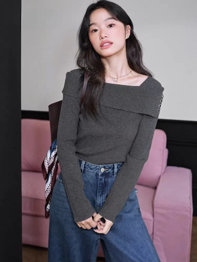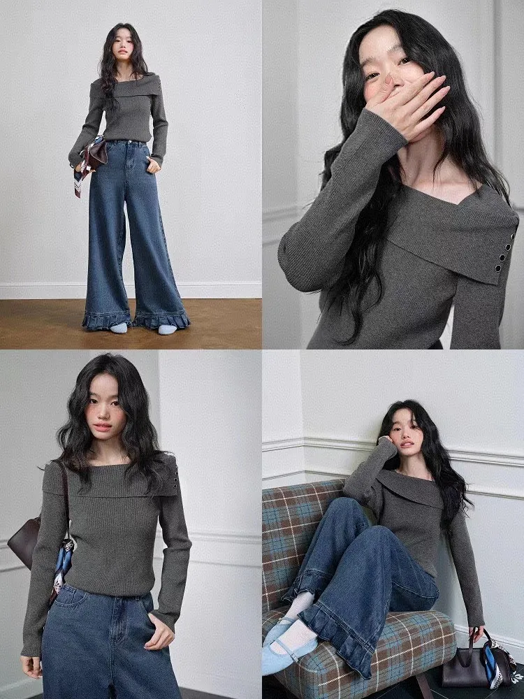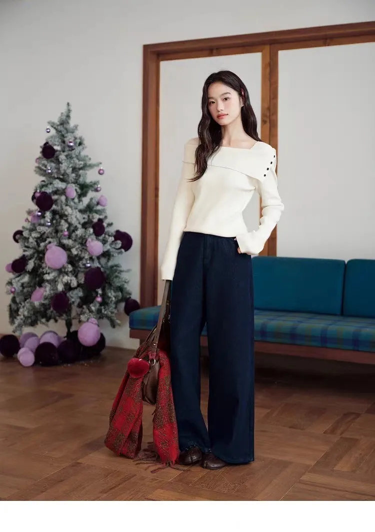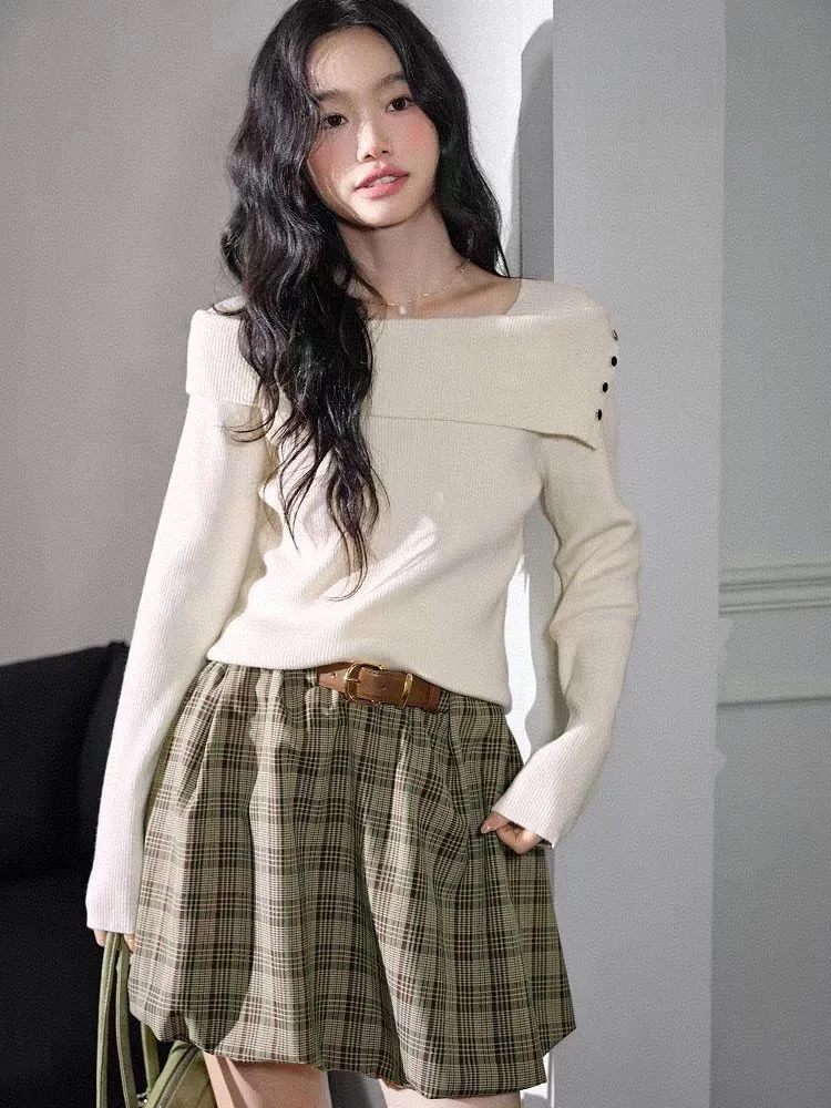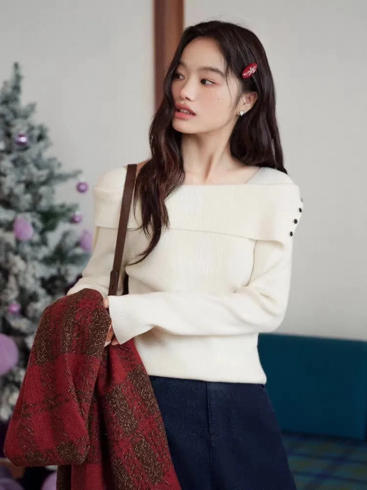 聖誕小姐姐一字領顯瘦長袖針織衫