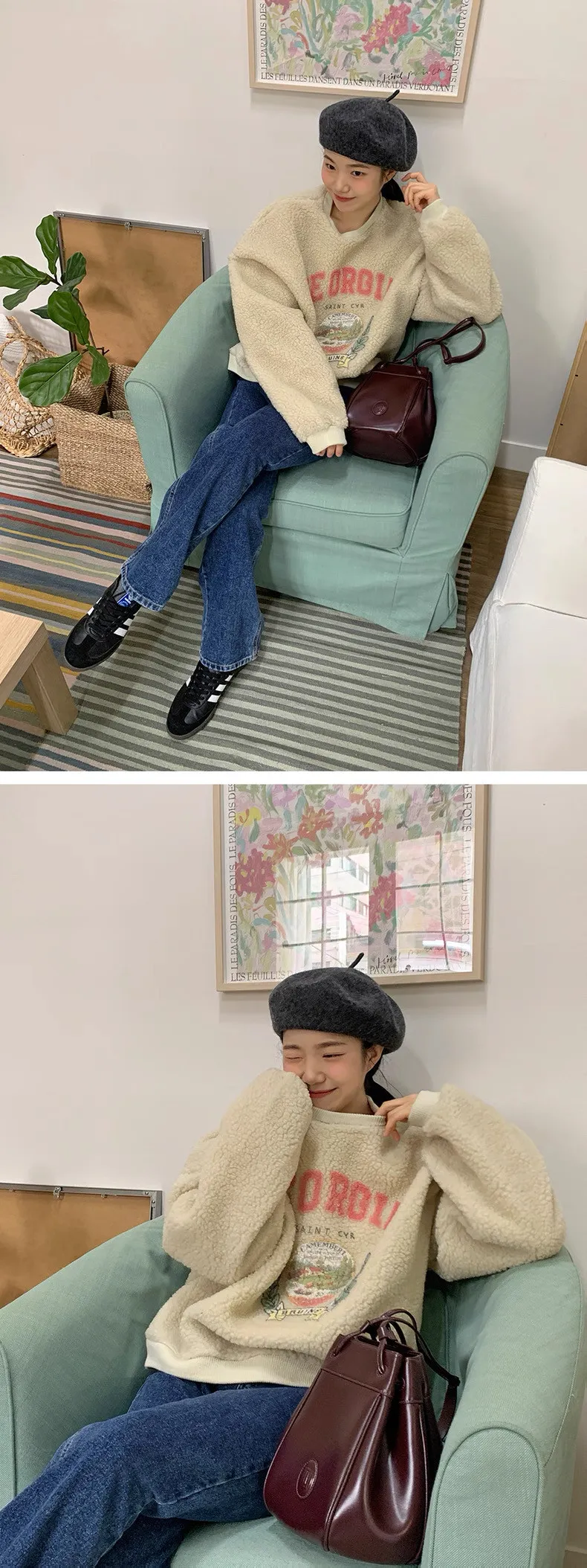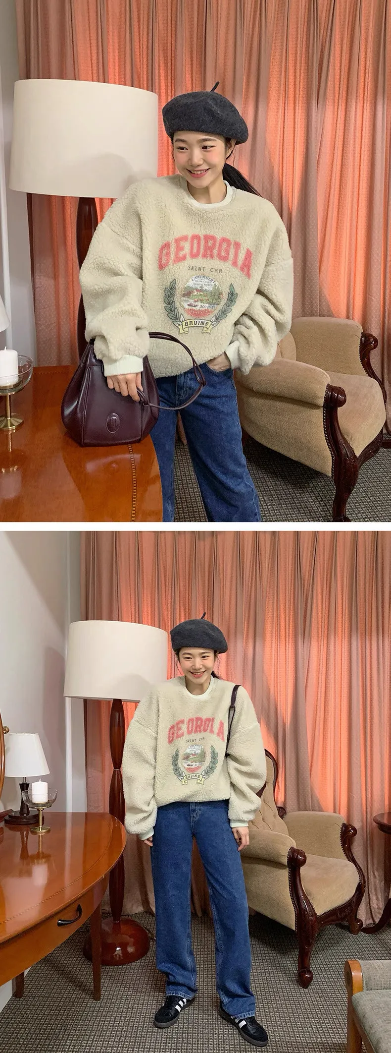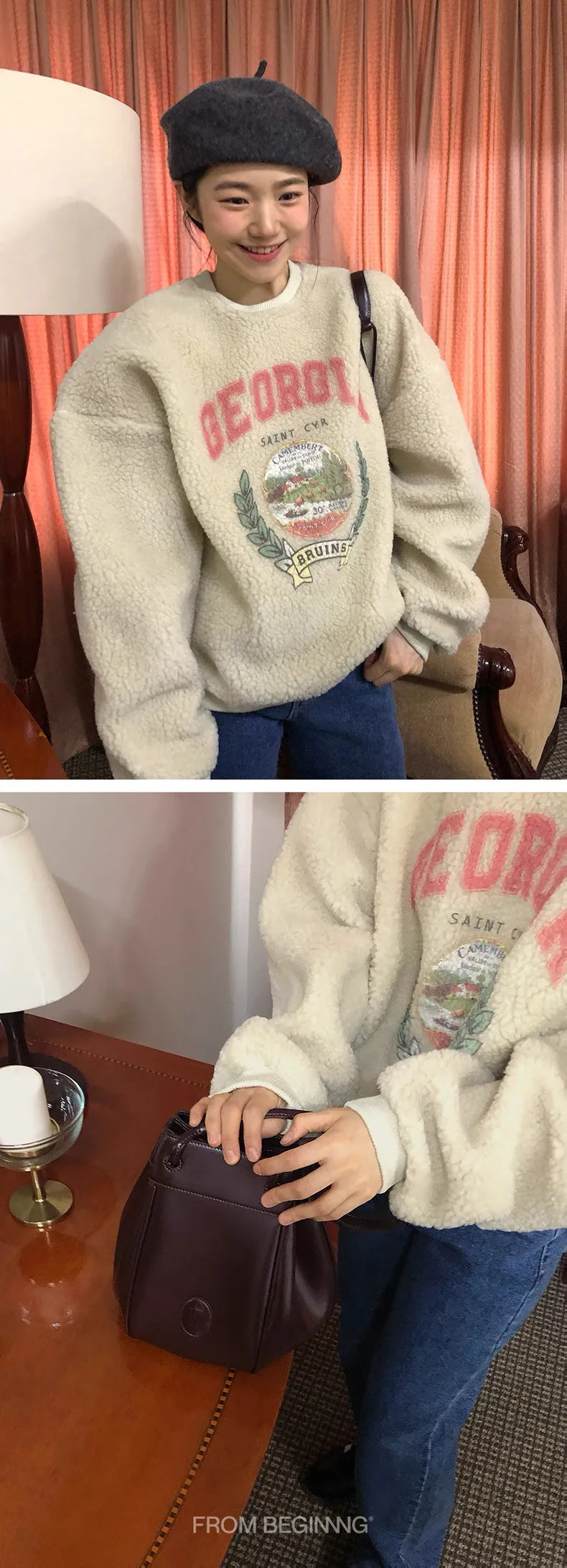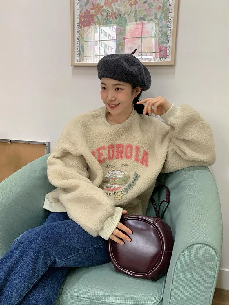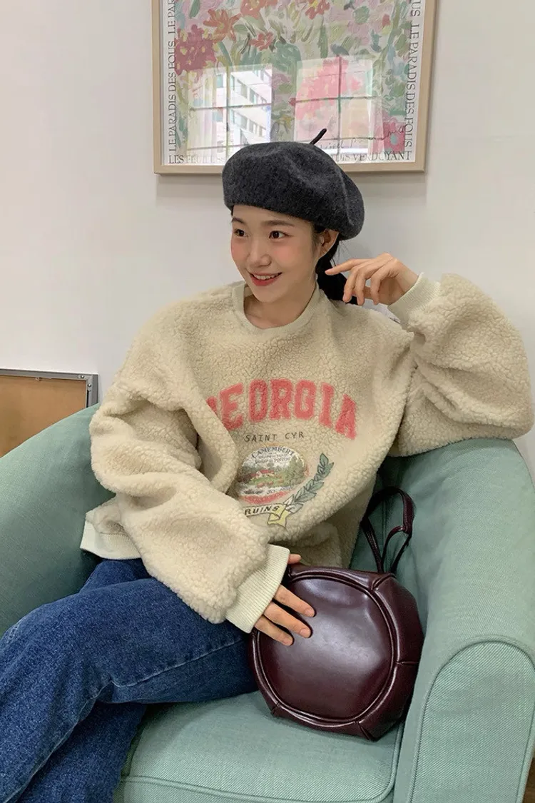 復古好溫暖字母印花羊羔絨圓領衛衣