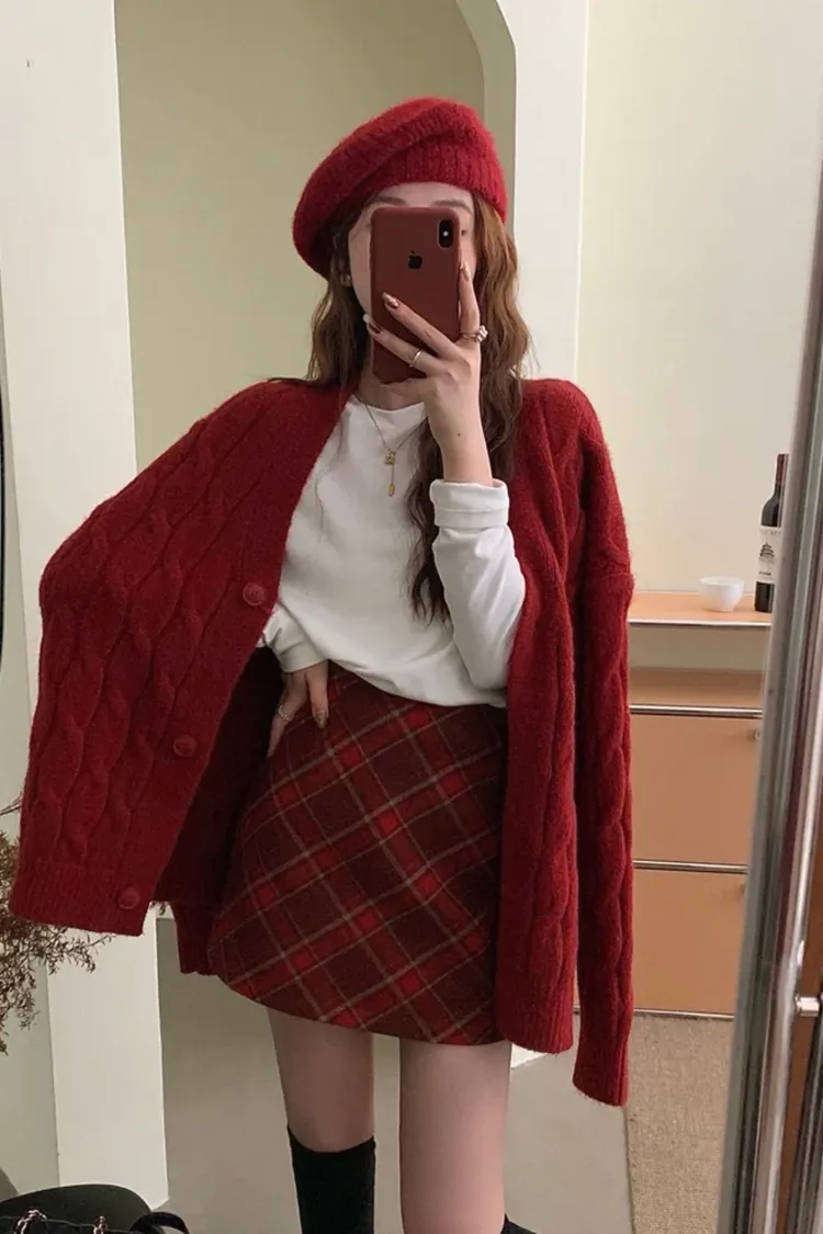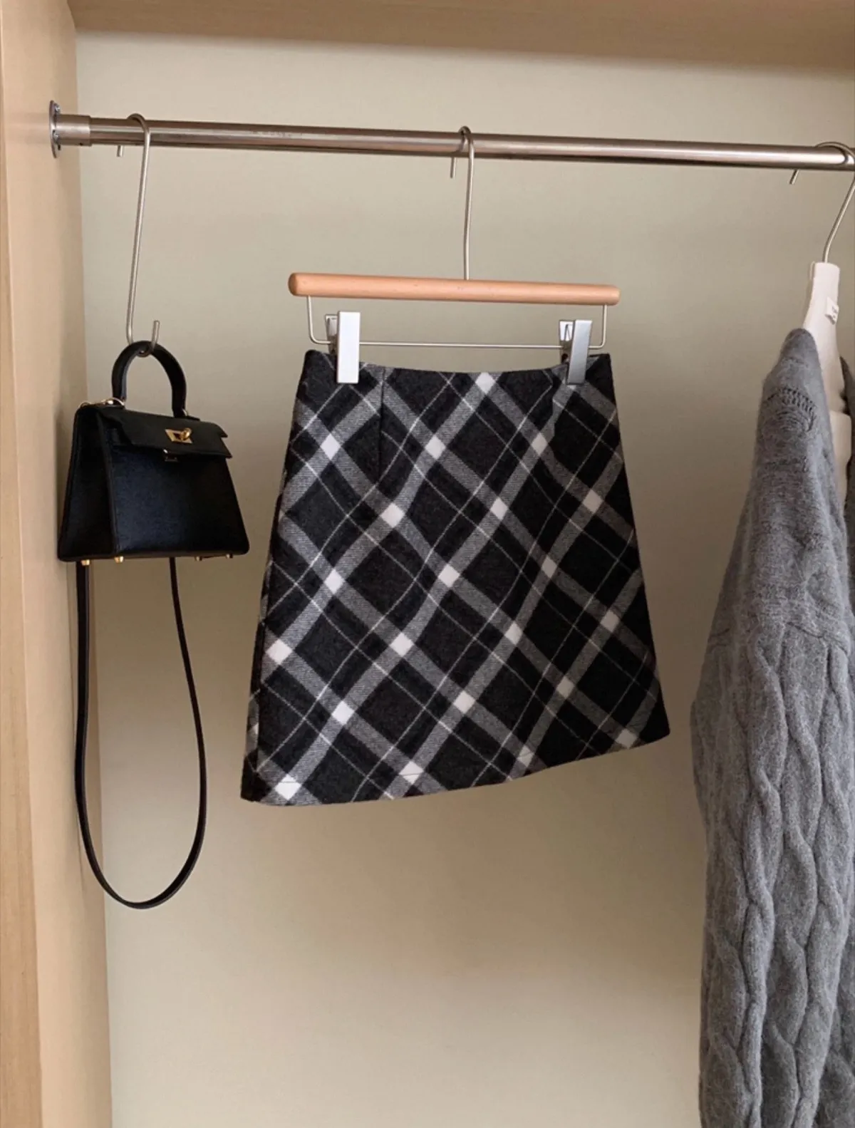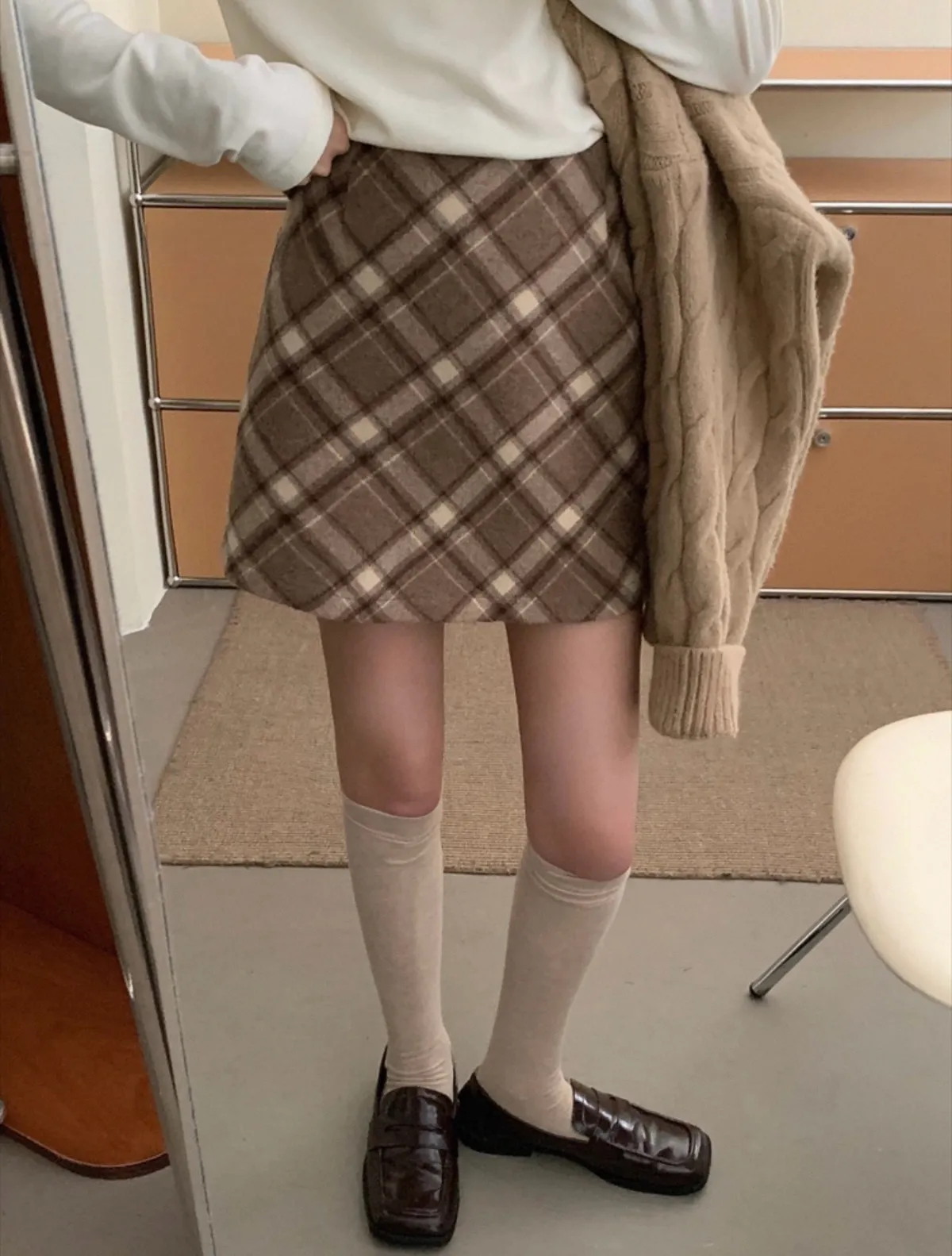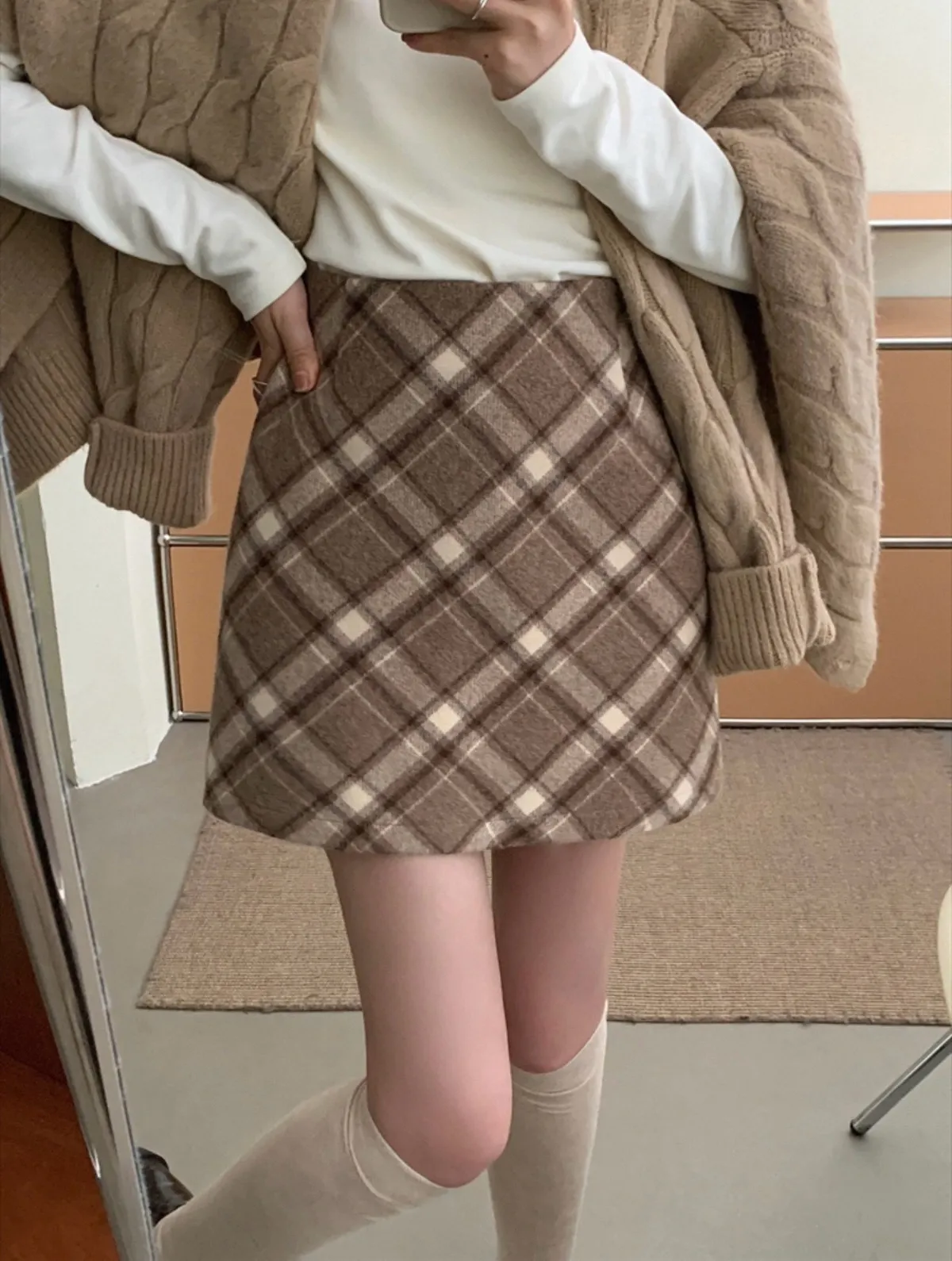 秋冬毛呢格紋百搭A字短裙