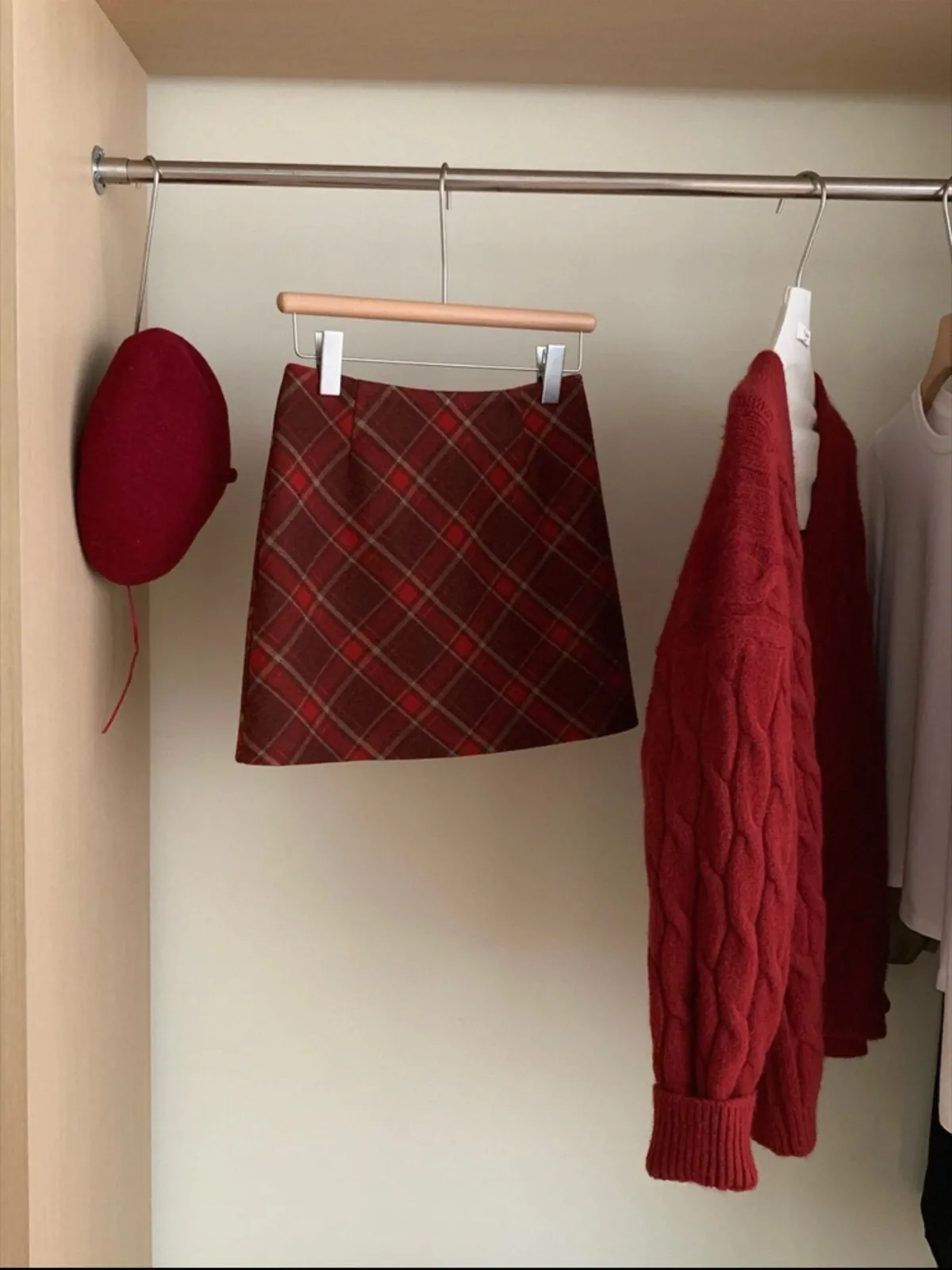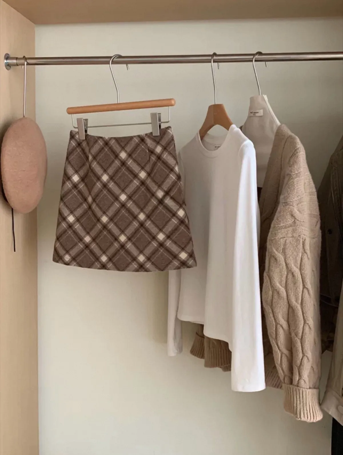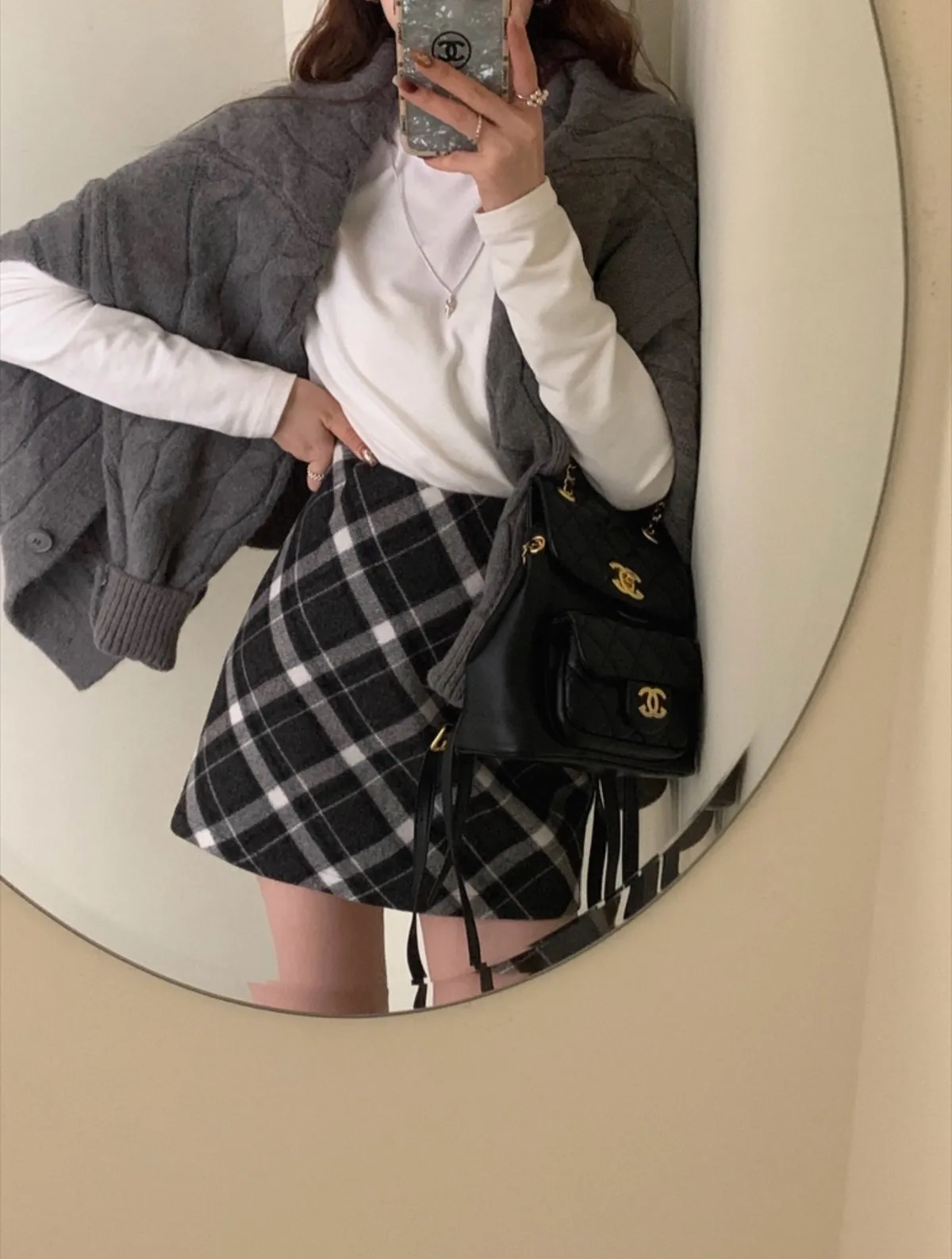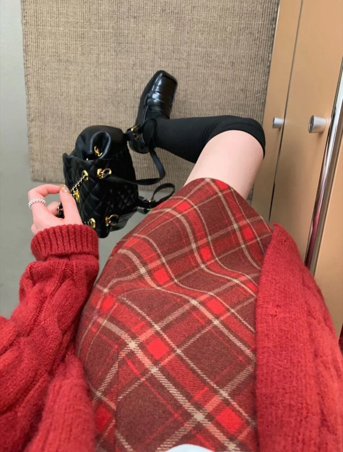 秋冬毛呢格紋百搭A字短裙