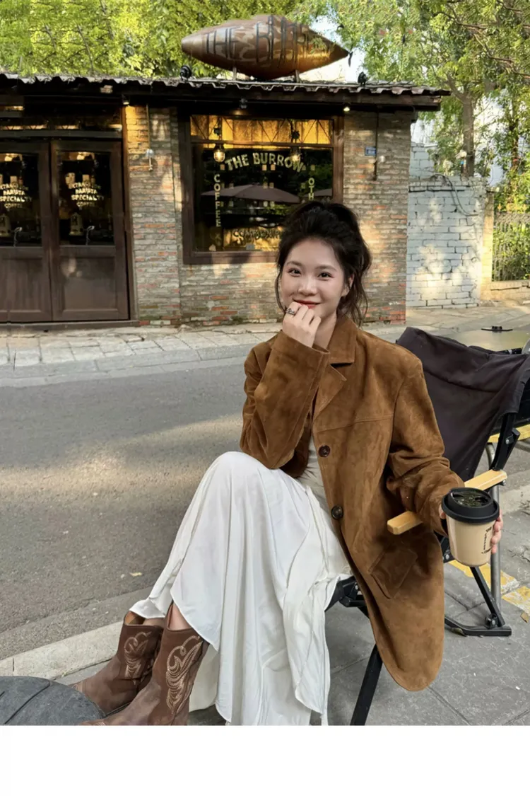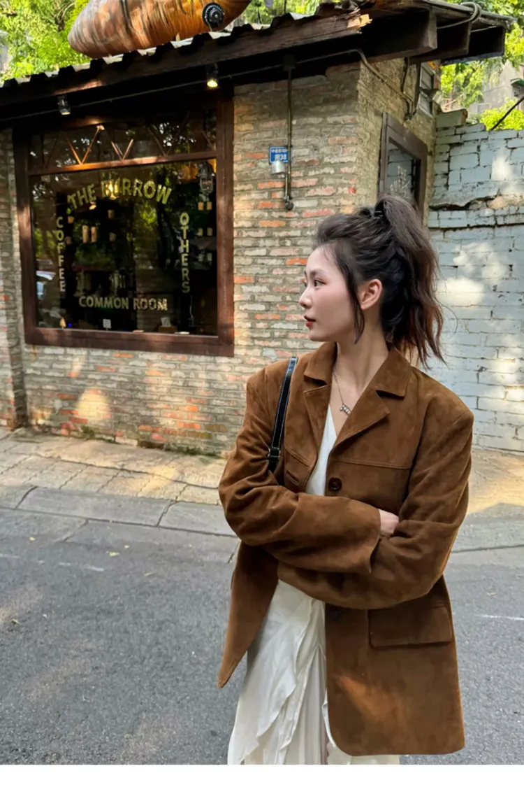 冬季美拉德麂皮西裝外套