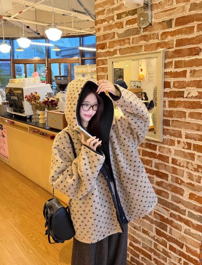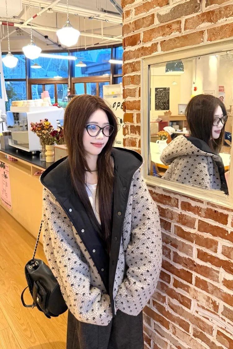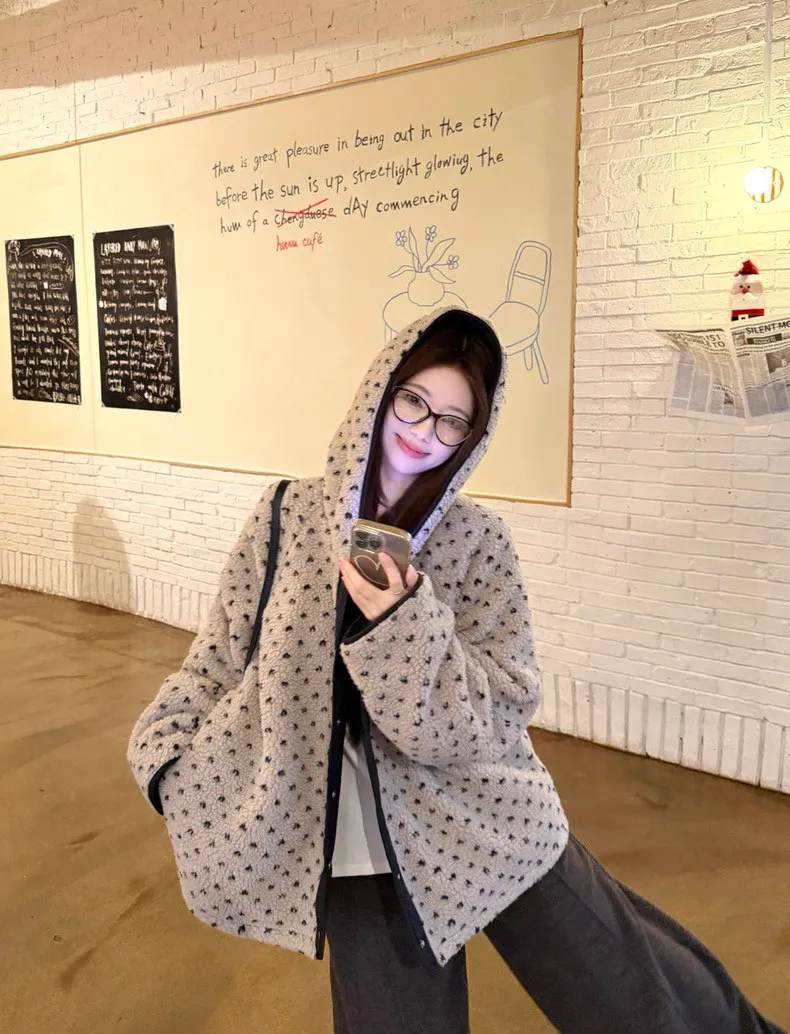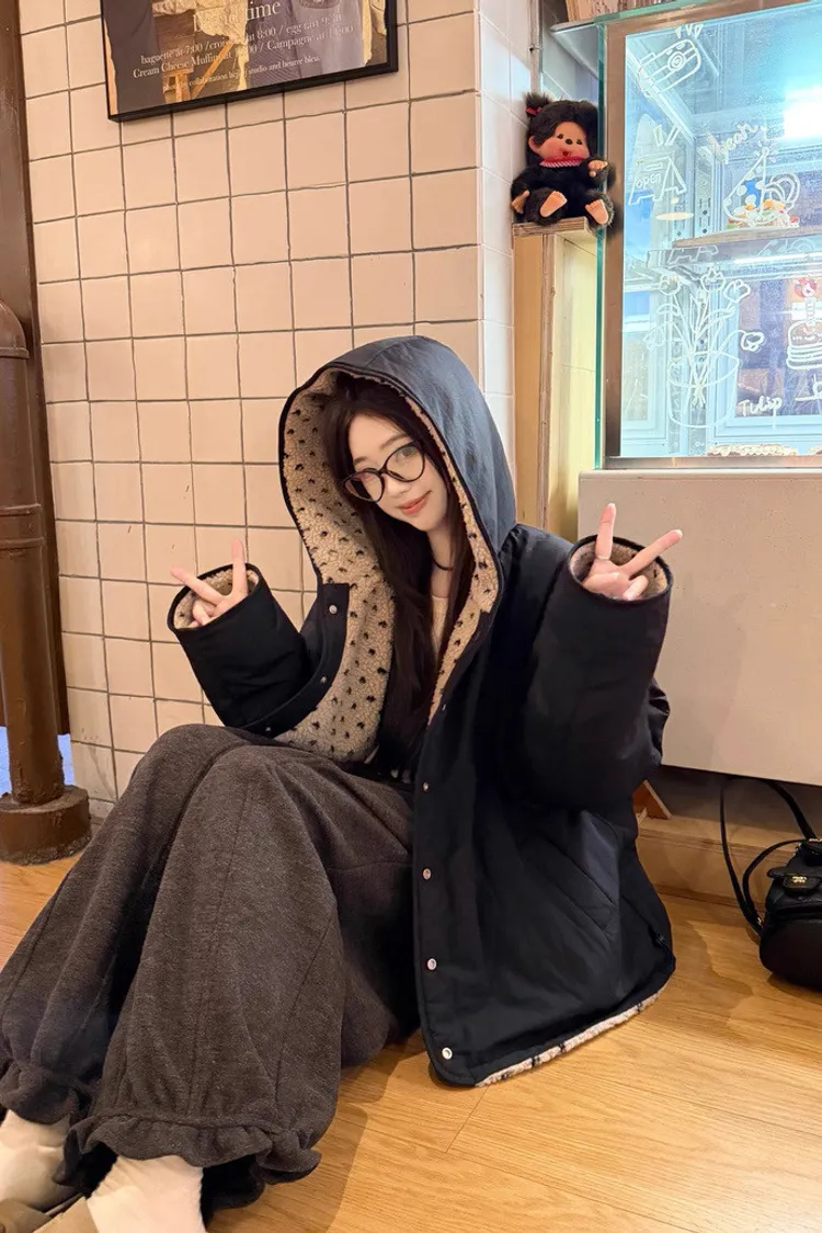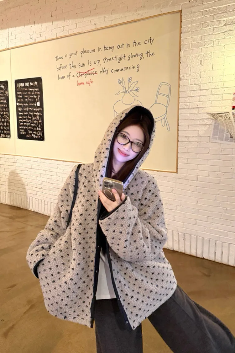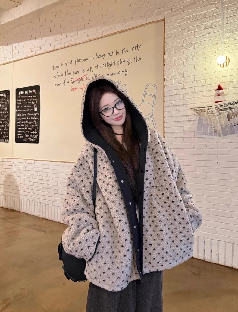 可可愛愛兩面穿愛心羊羔絨連帽外套