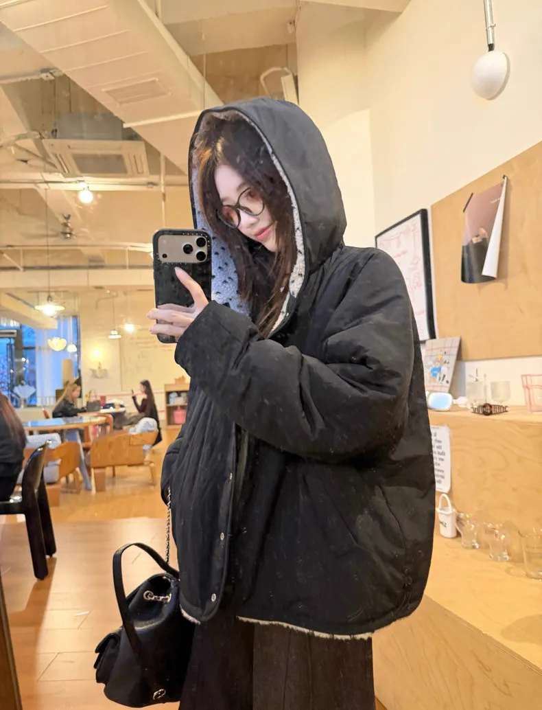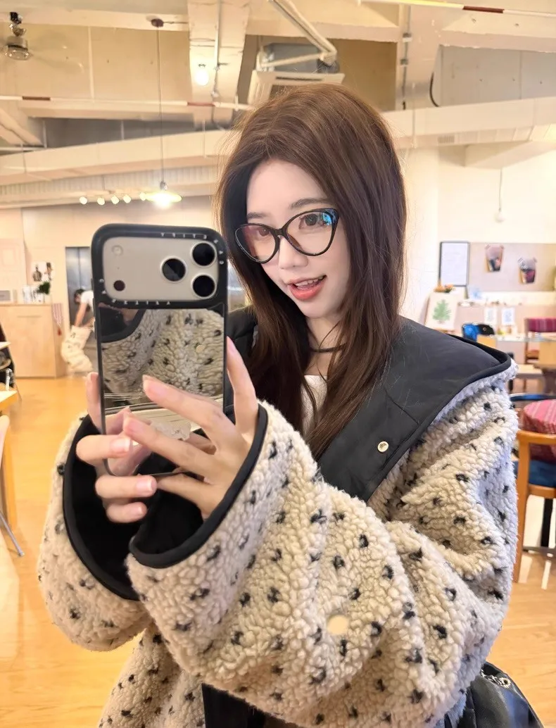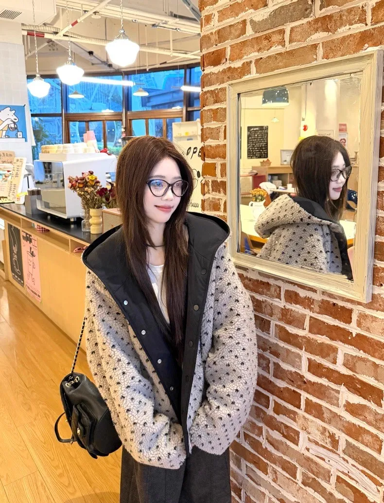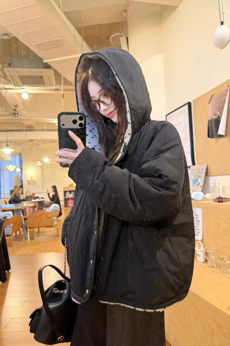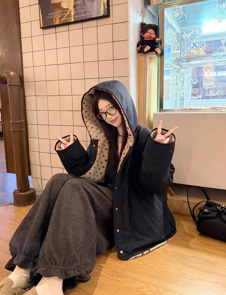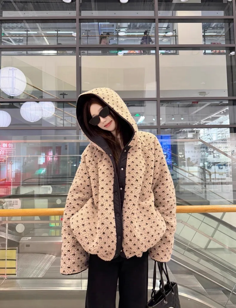 可可愛愛兩面穿愛心羊羔絨連帽外套