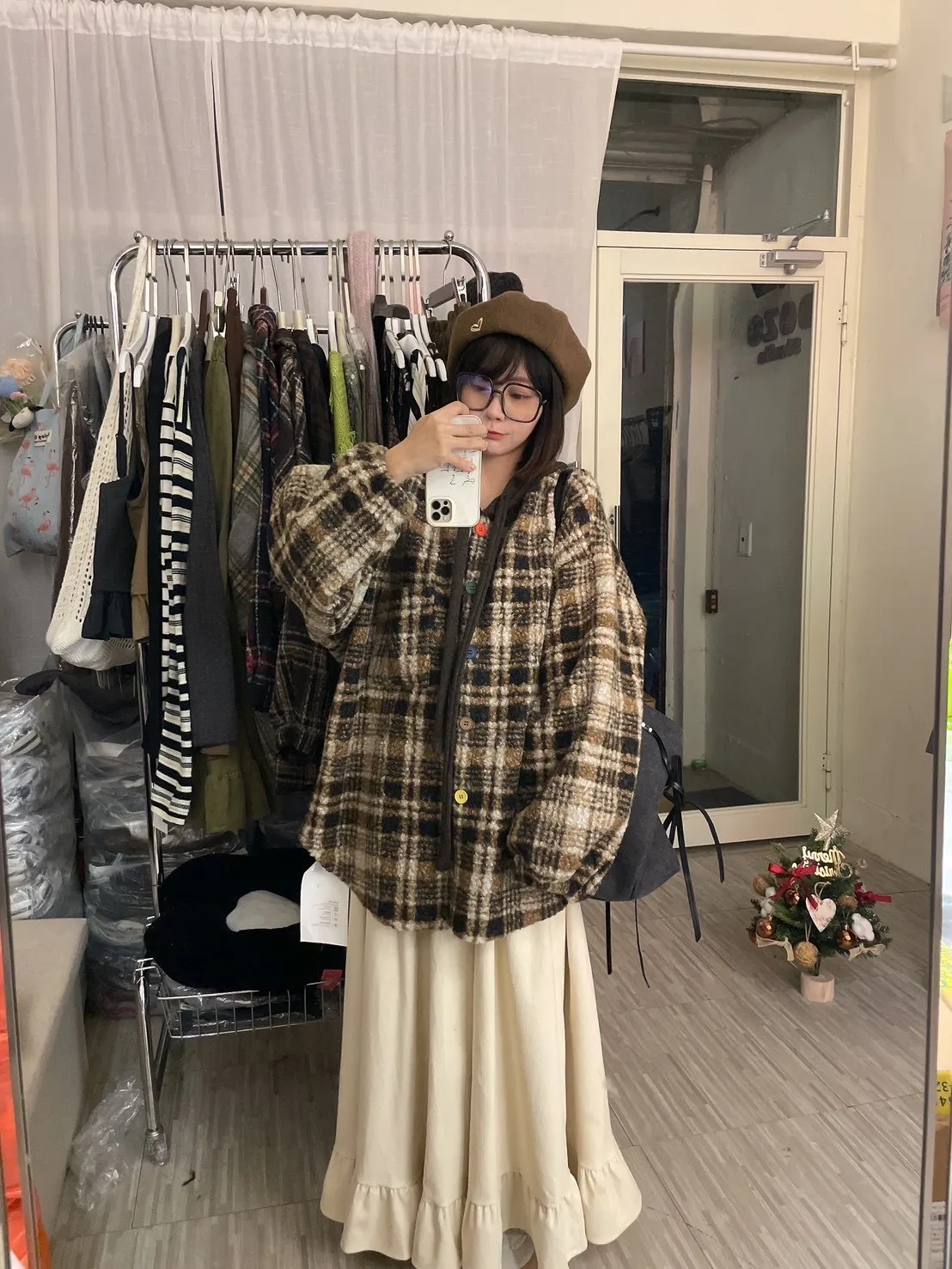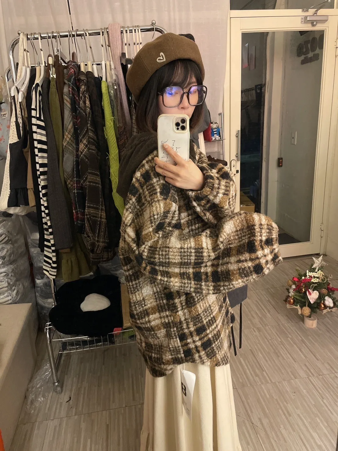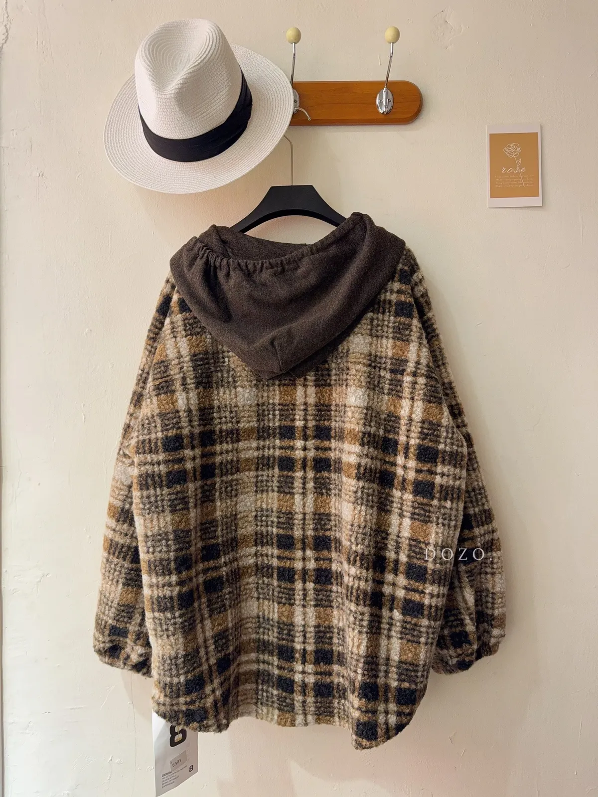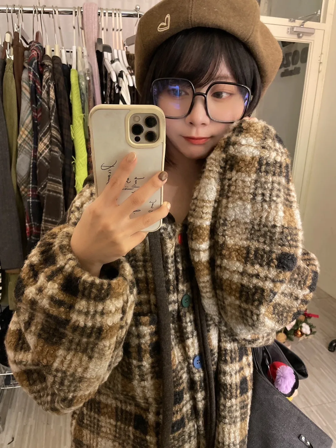 暖冬街道日系彩釦連帽格紋外套