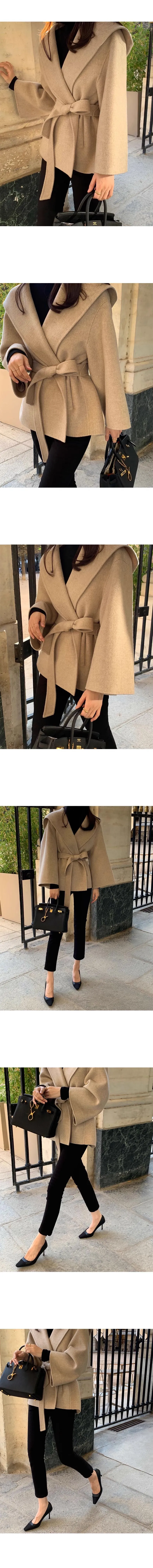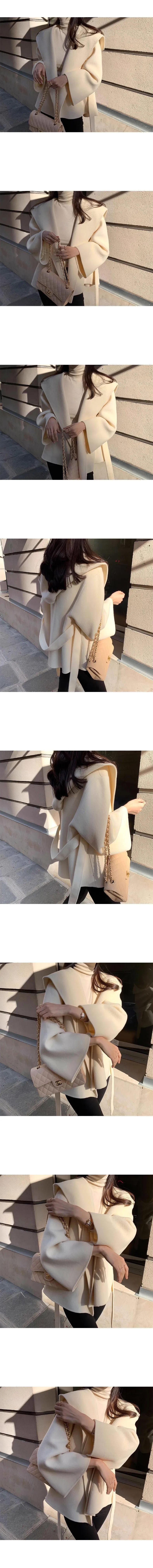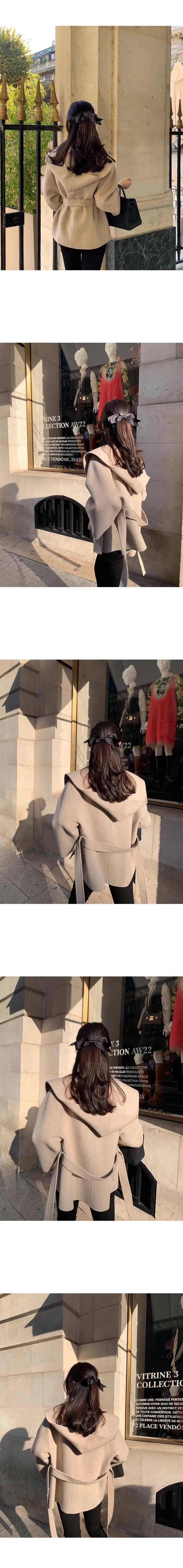 法式高級感連帽純色綁帶收腰風衣外套