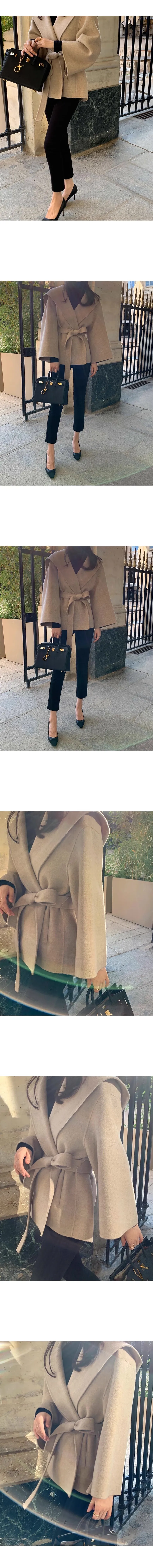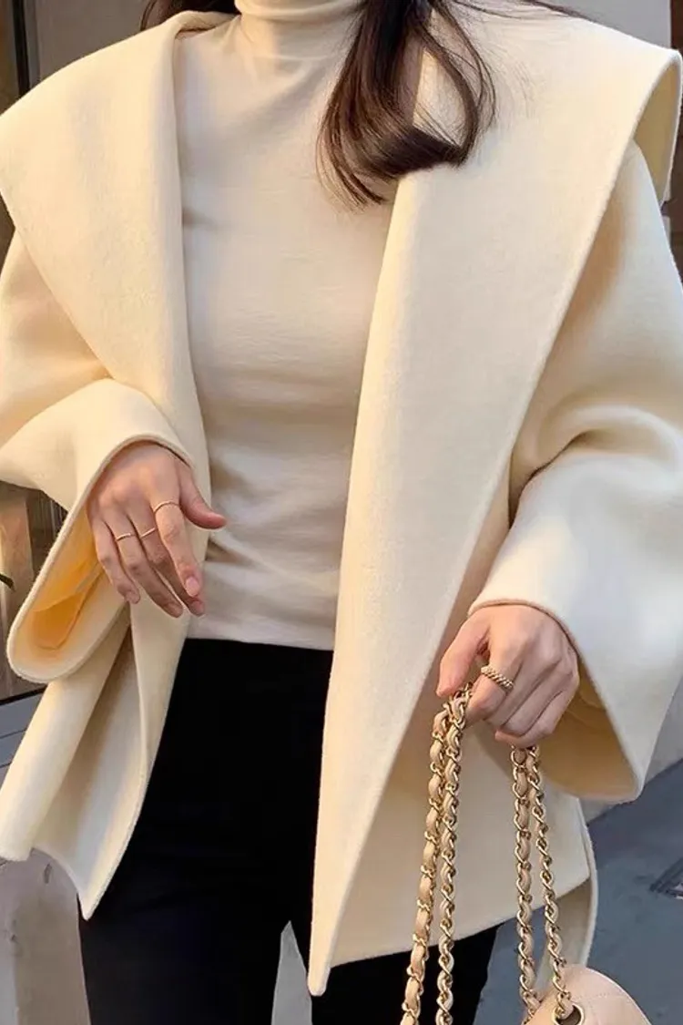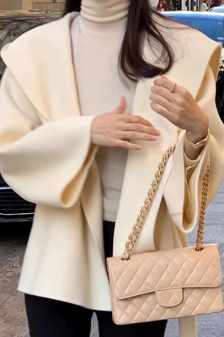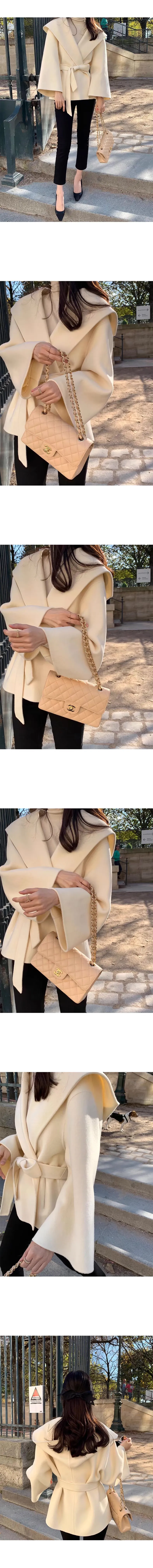 法式高級感連帽純色綁帶收腰風衣外套