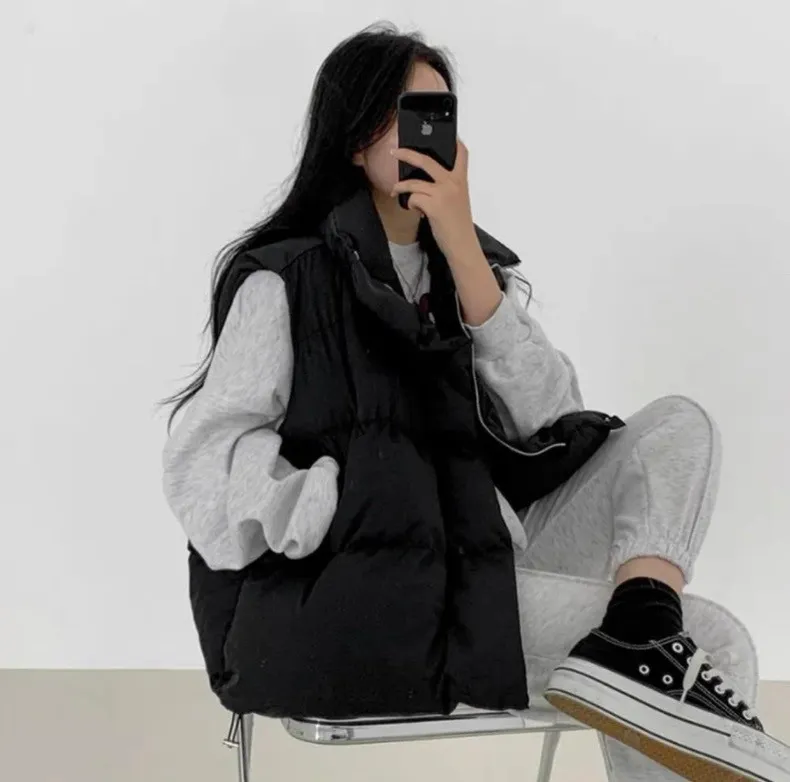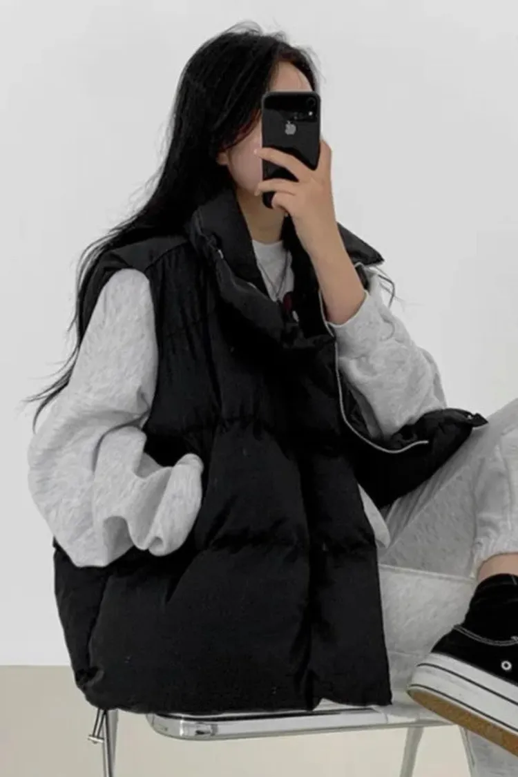 韓式街頭休閒感大口袋休閒羽絨背心