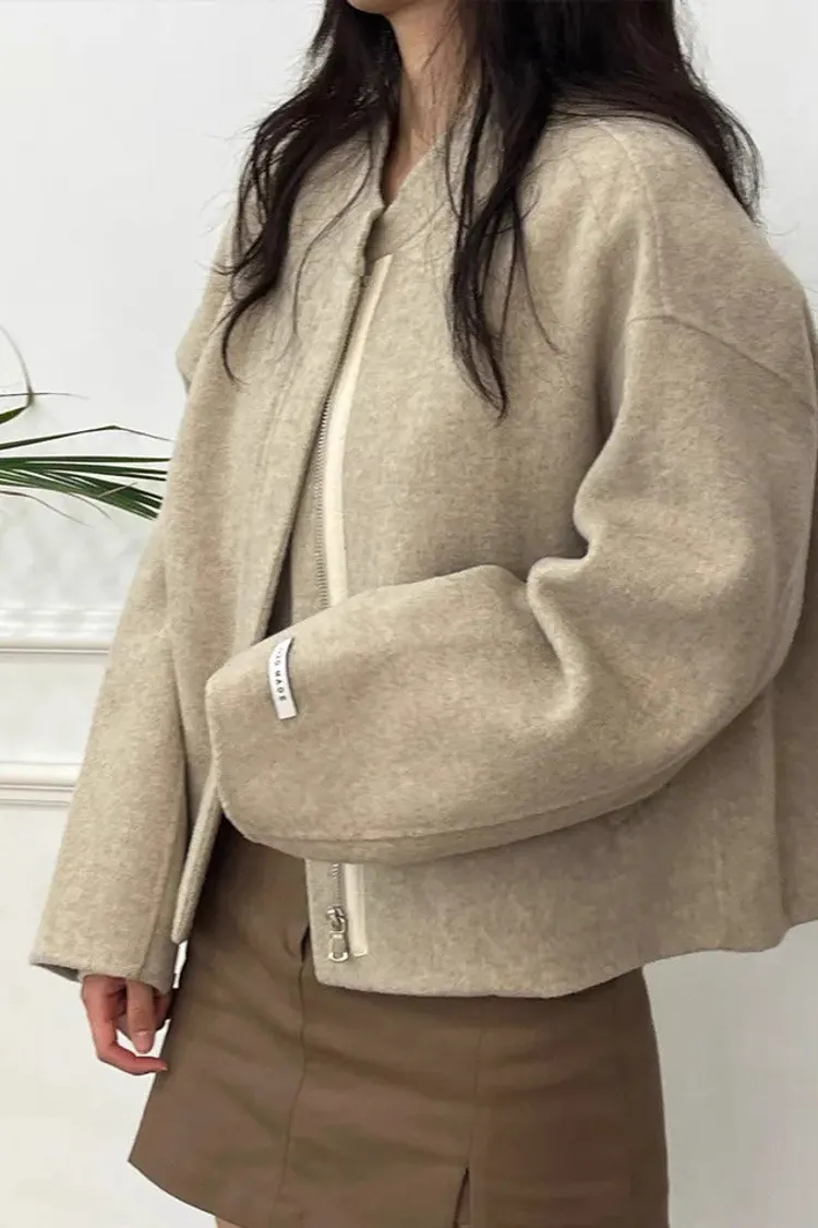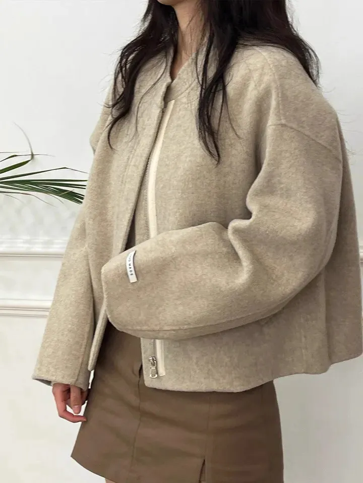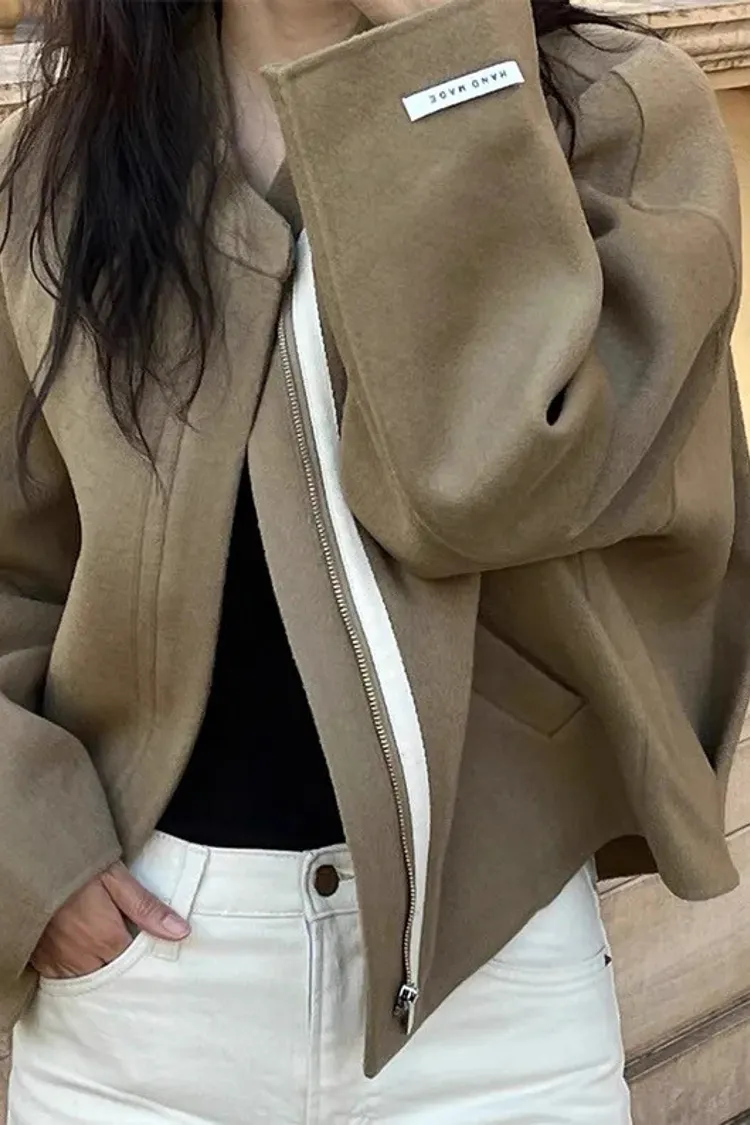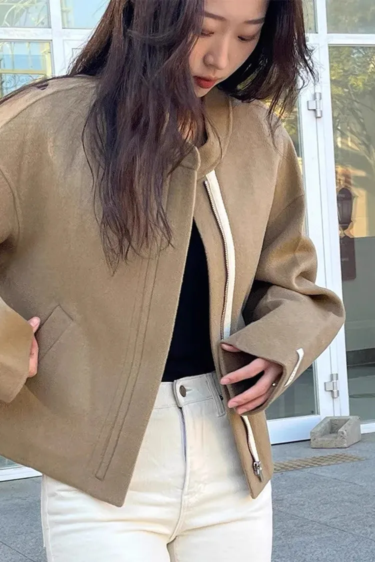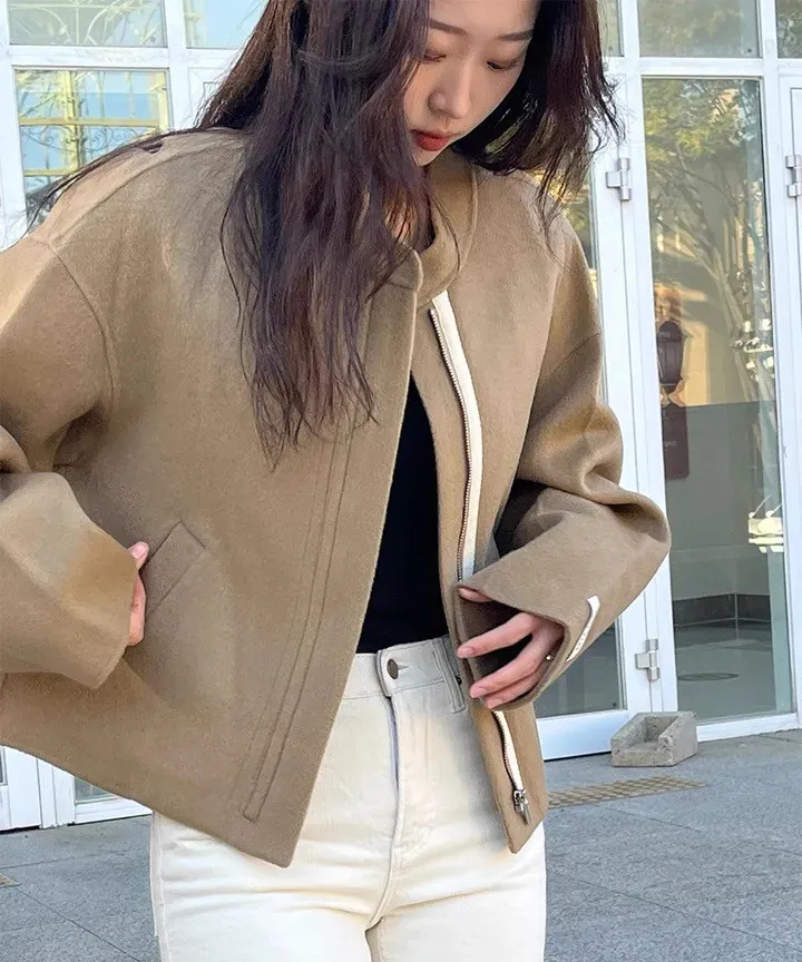 率性小眾立領毛呢標籤夾克外套