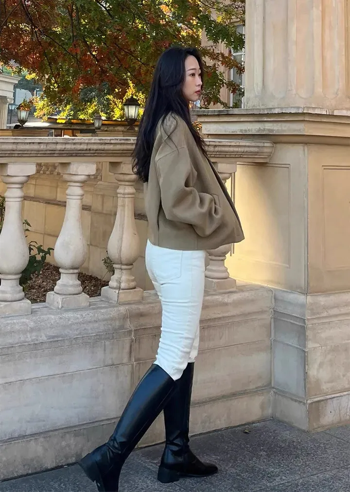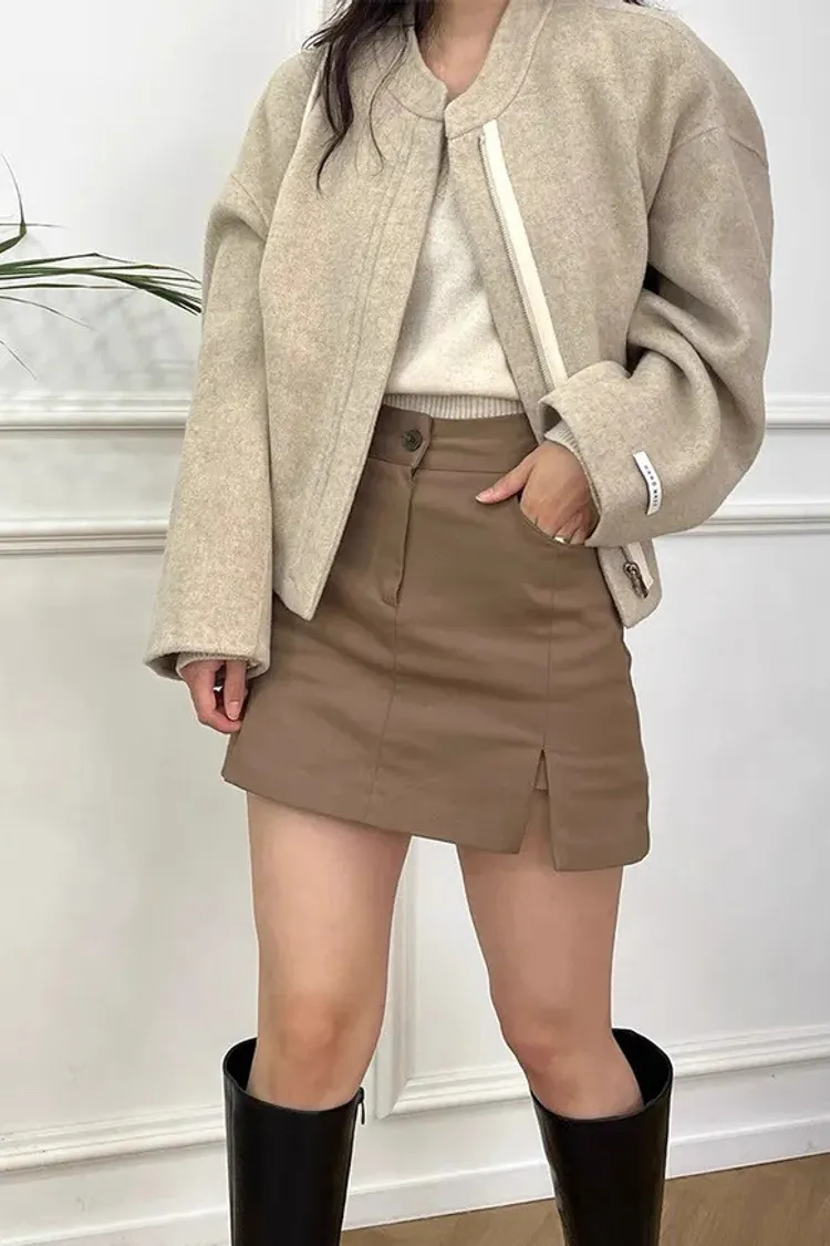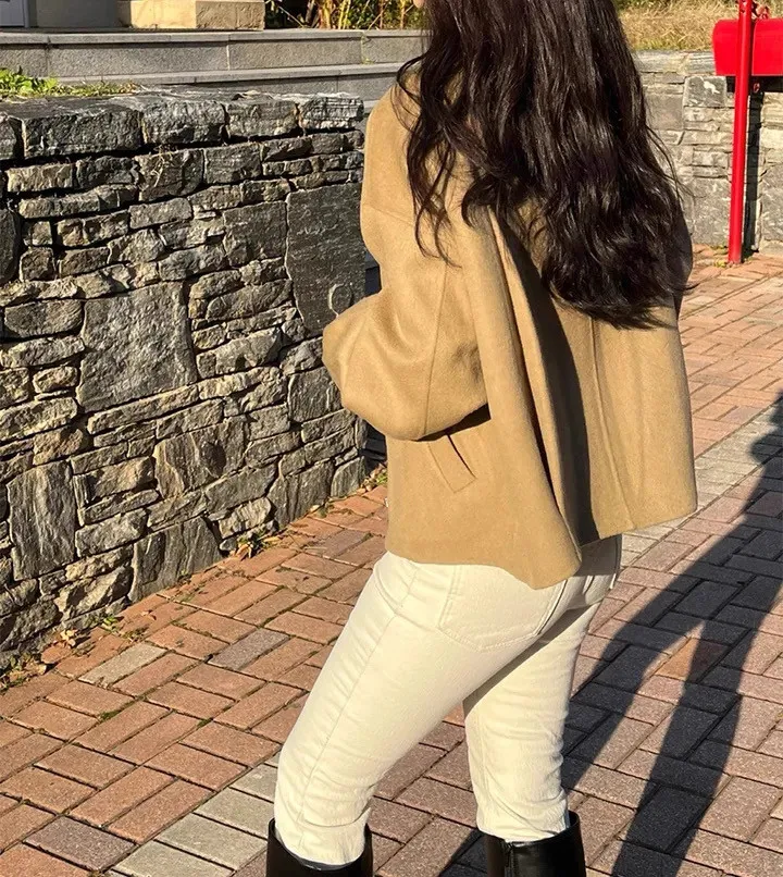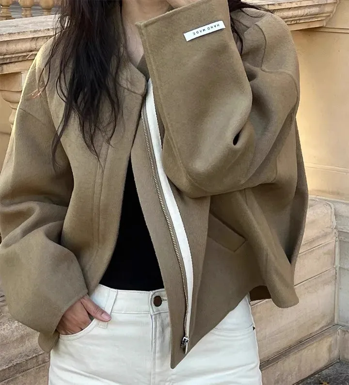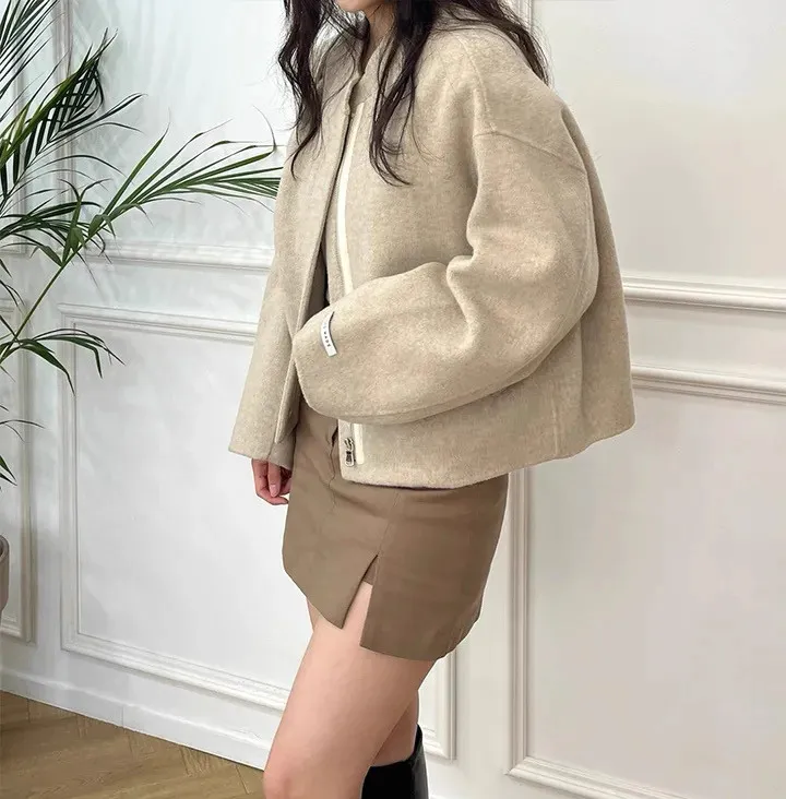 率性小眾立領毛呢標籤夾克外套