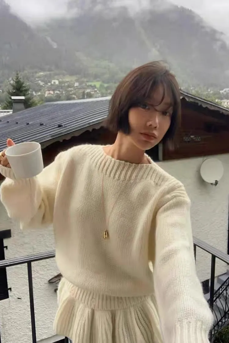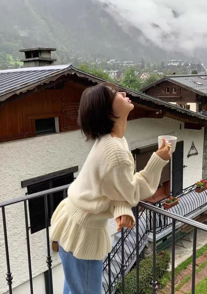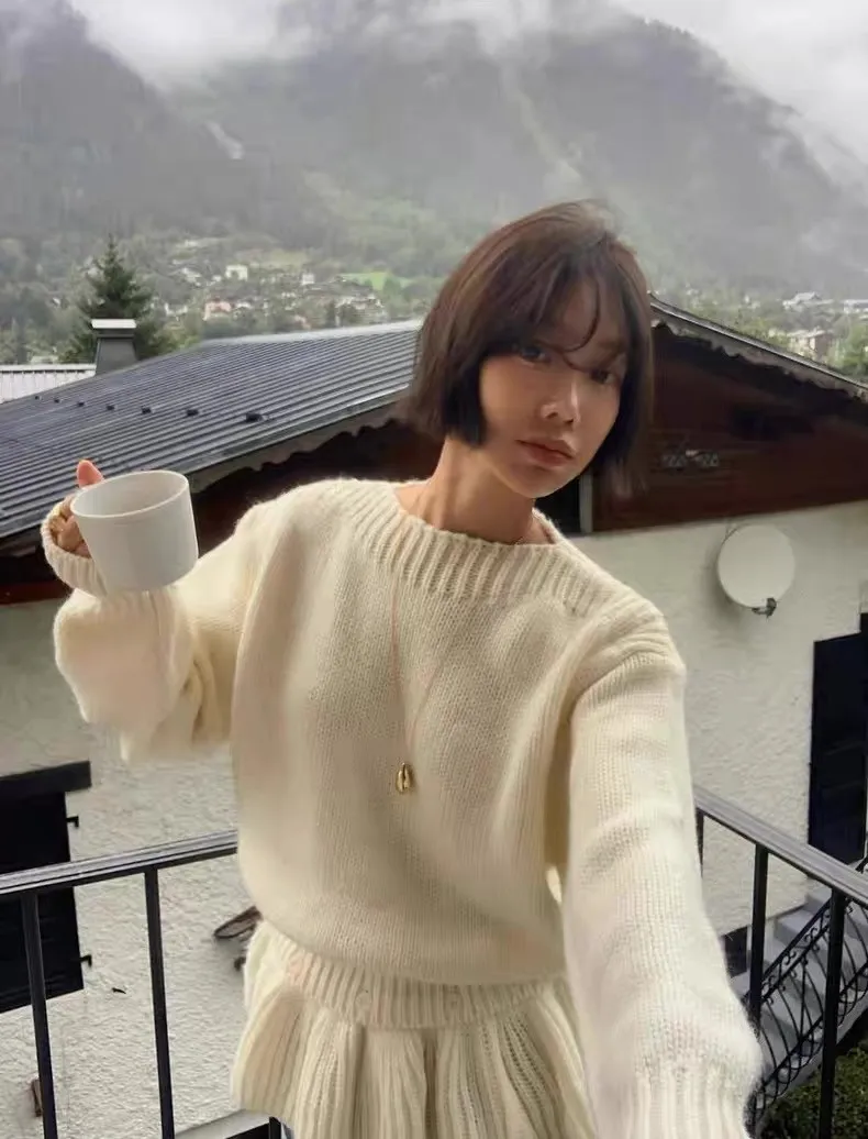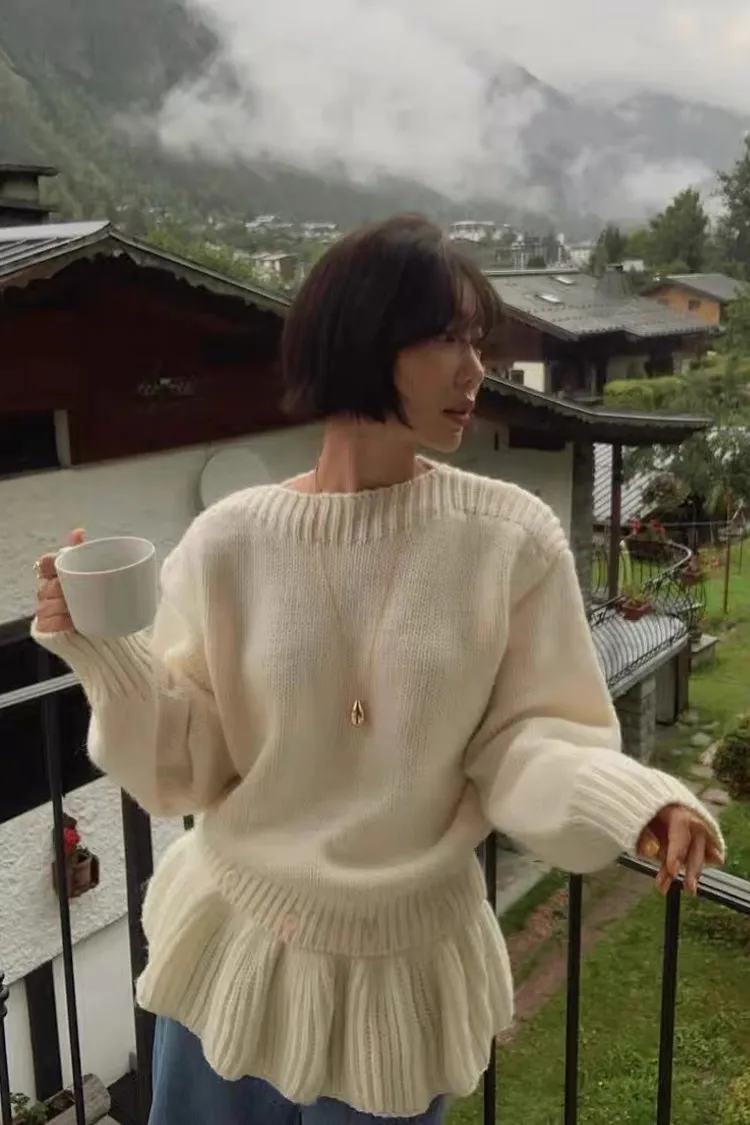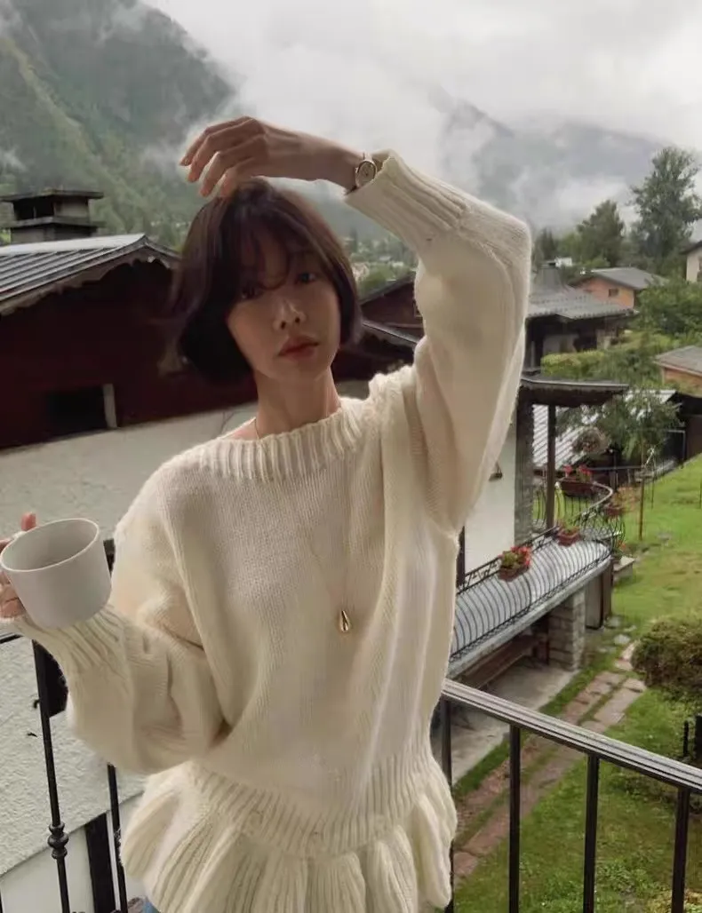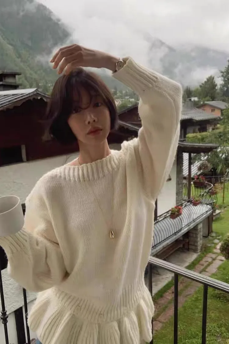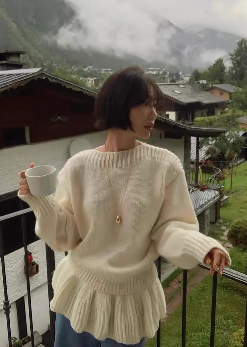 小眾設計感軟糯針織衫+花邊裙擺套裝