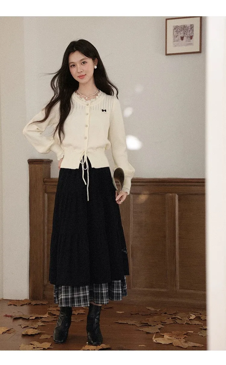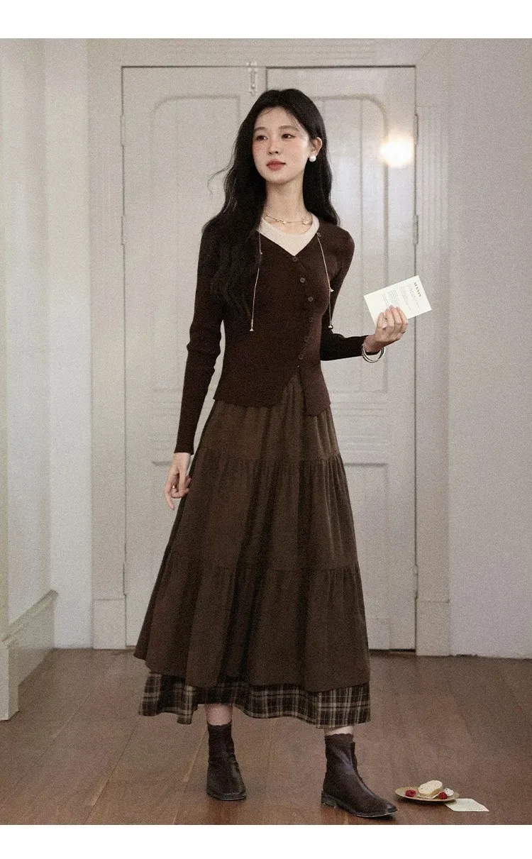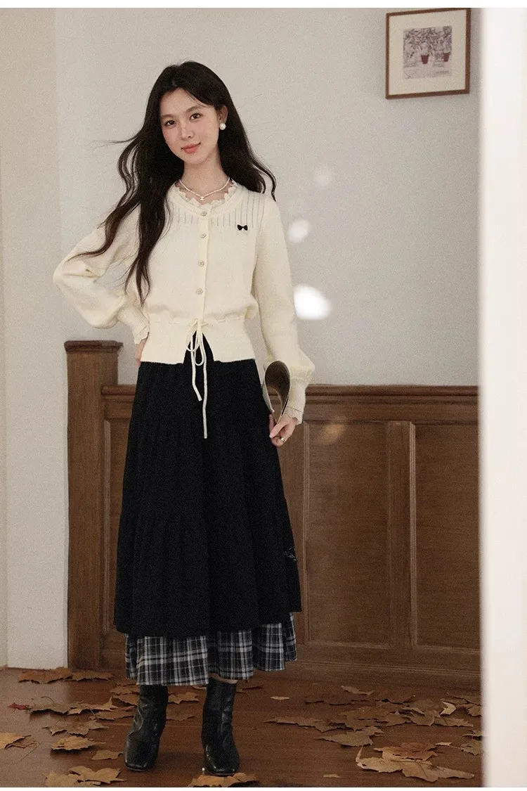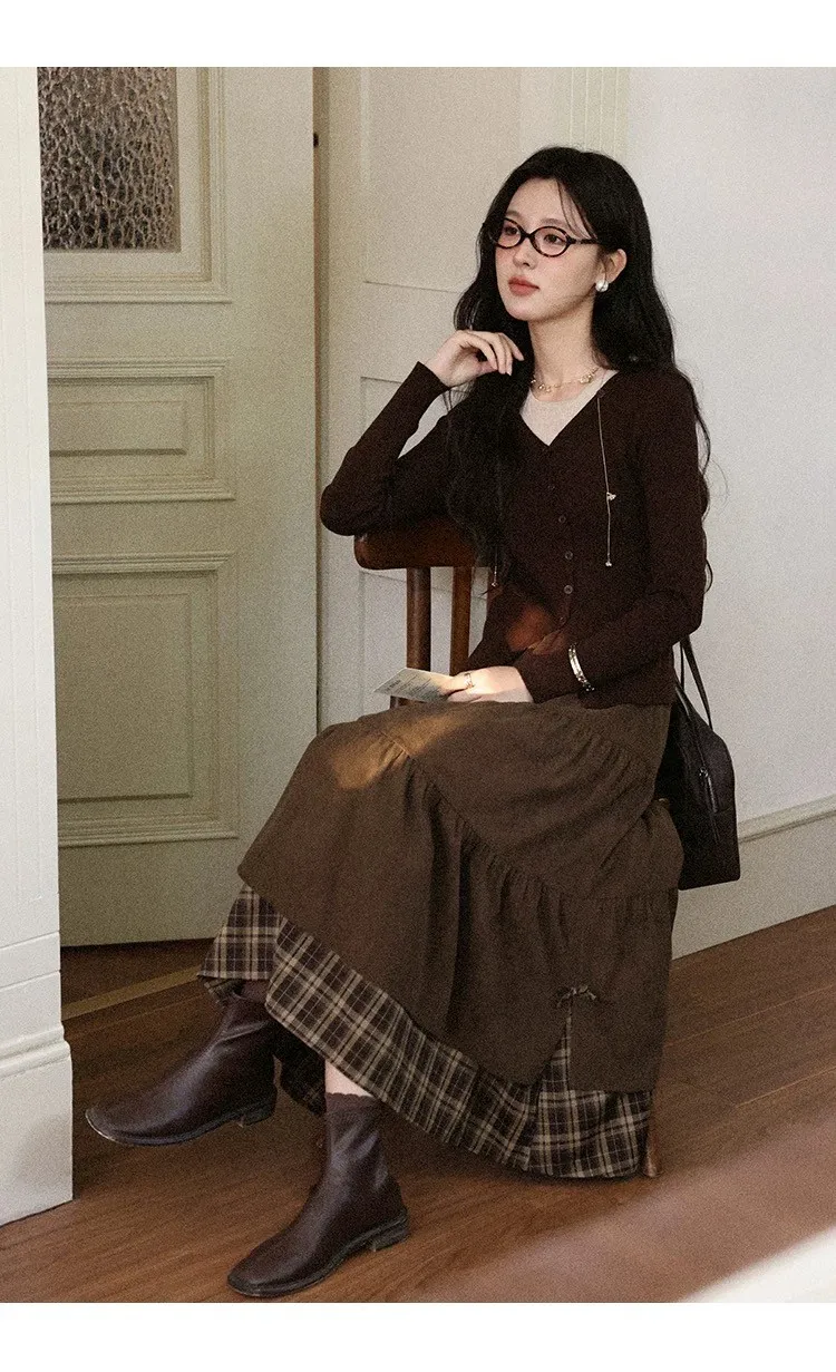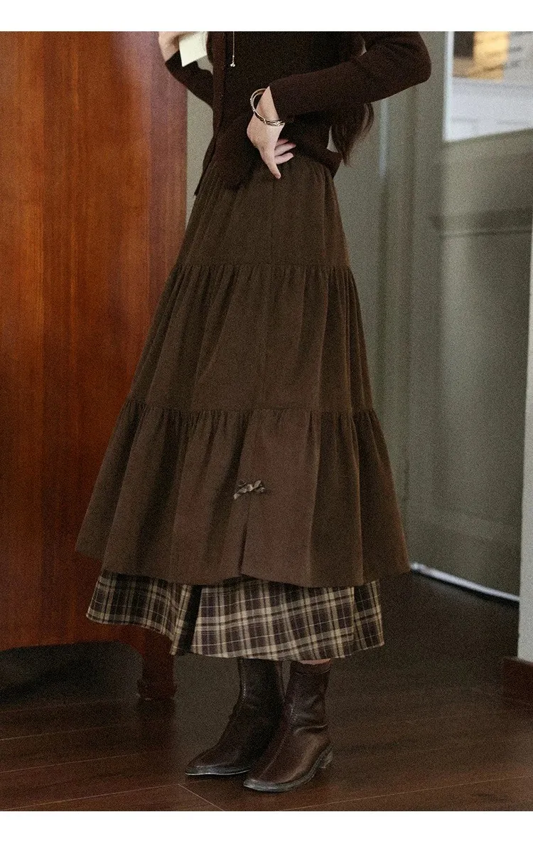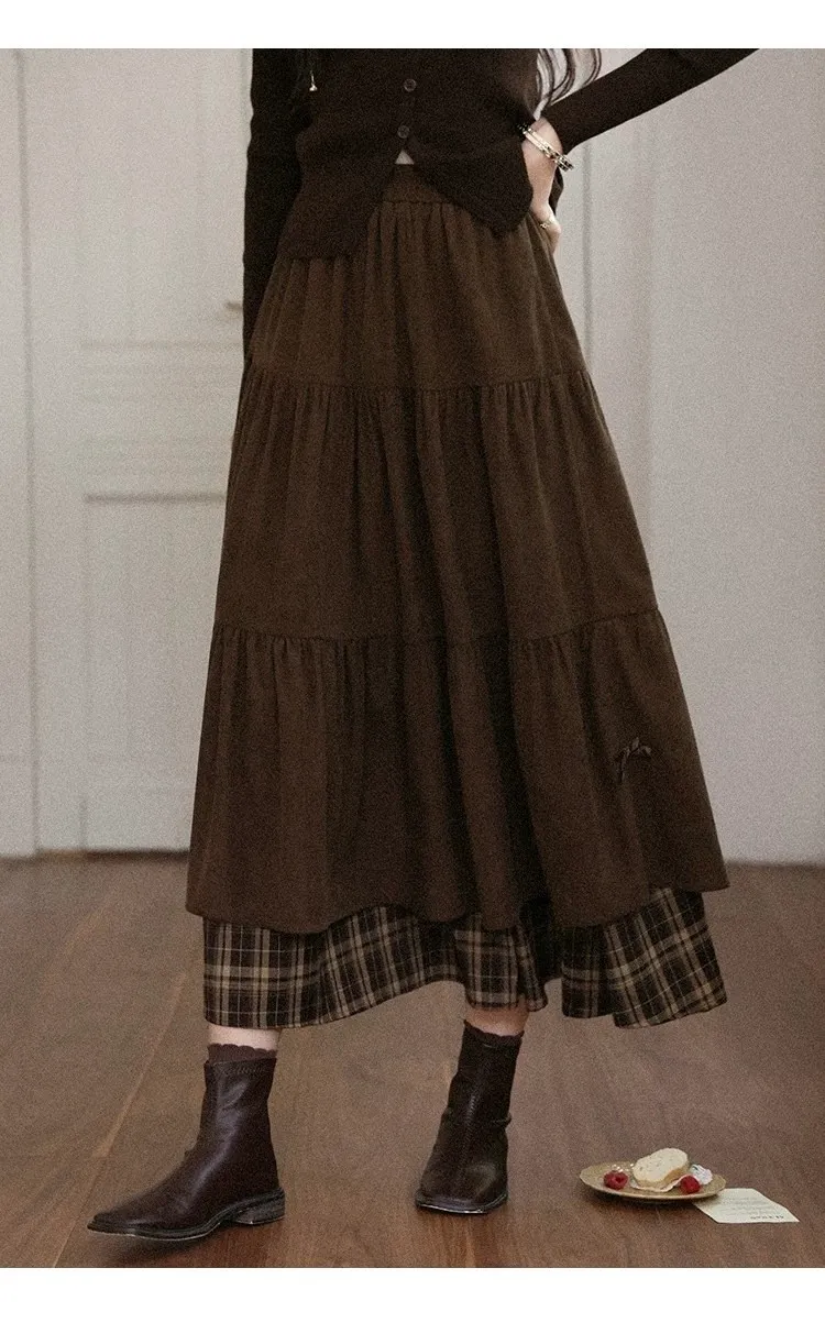 小步舞曲復古格紋拼接半身裙