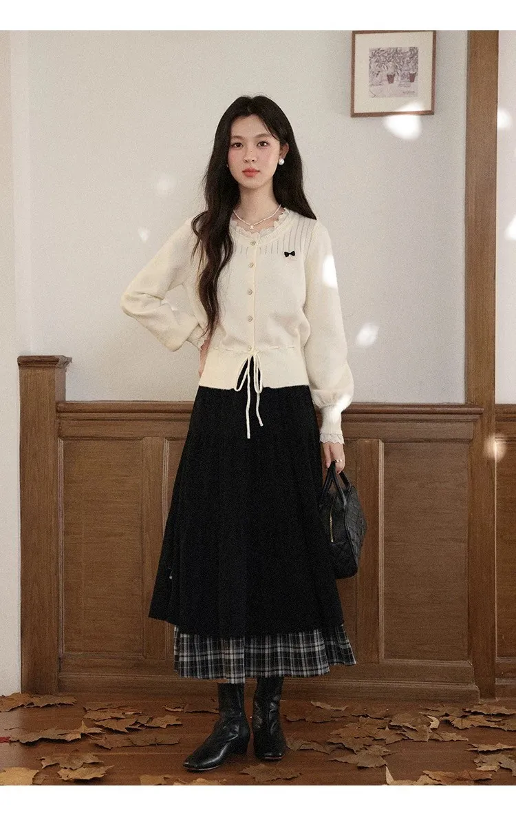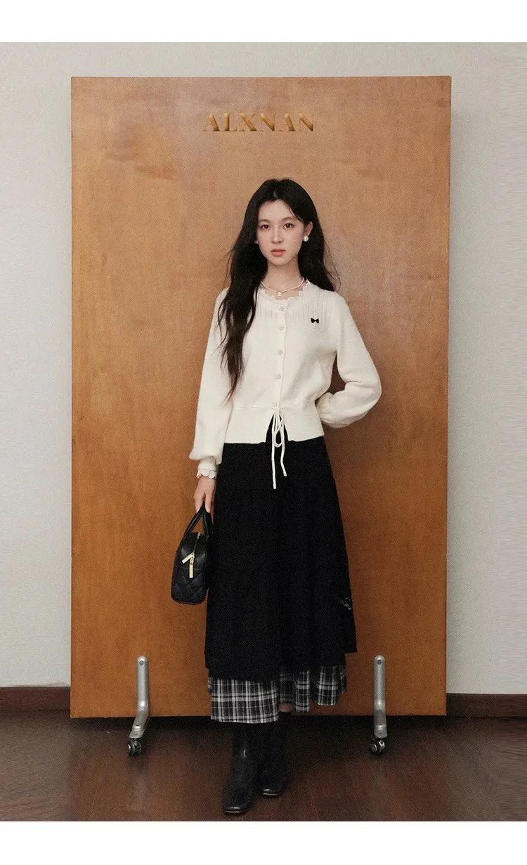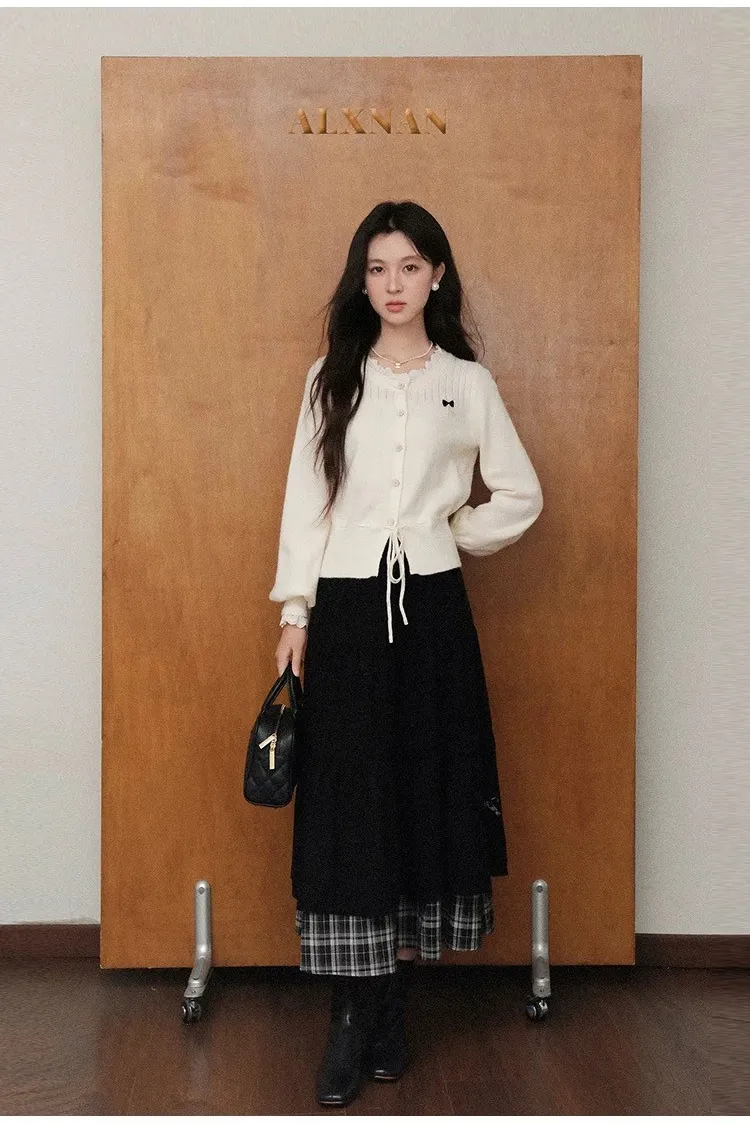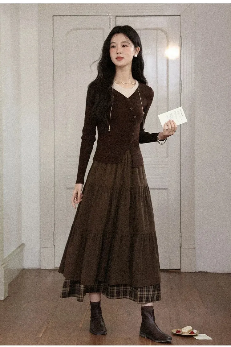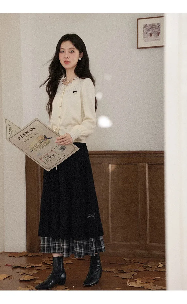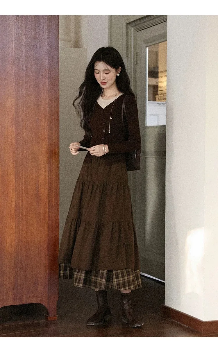 小步舞曲復古格紋拼接半身裙