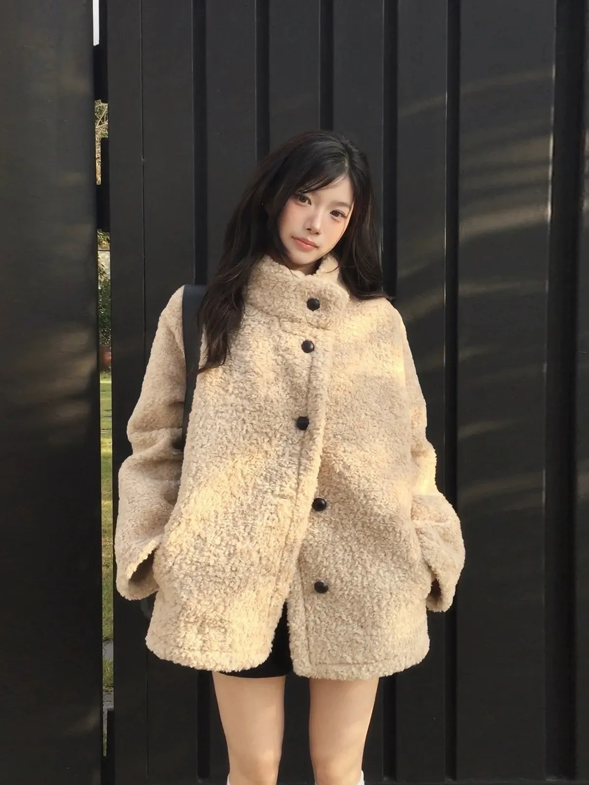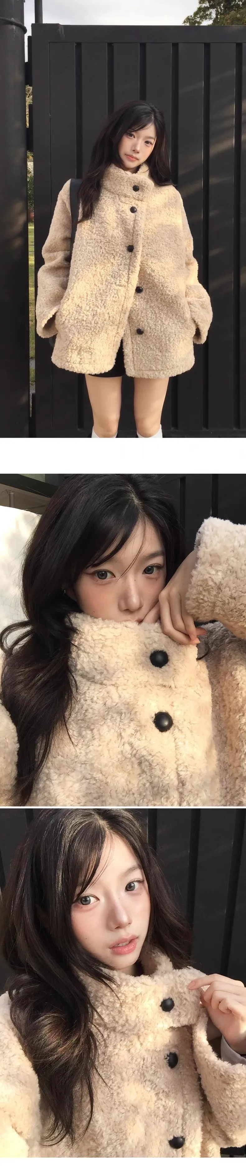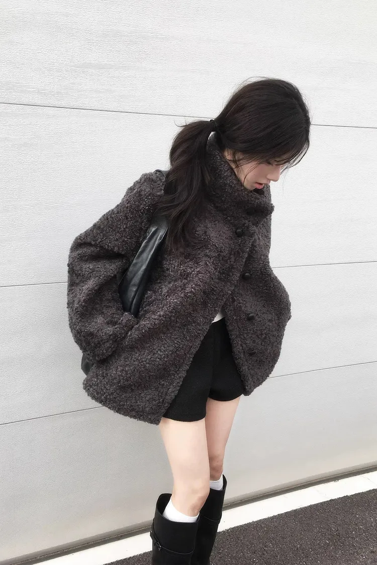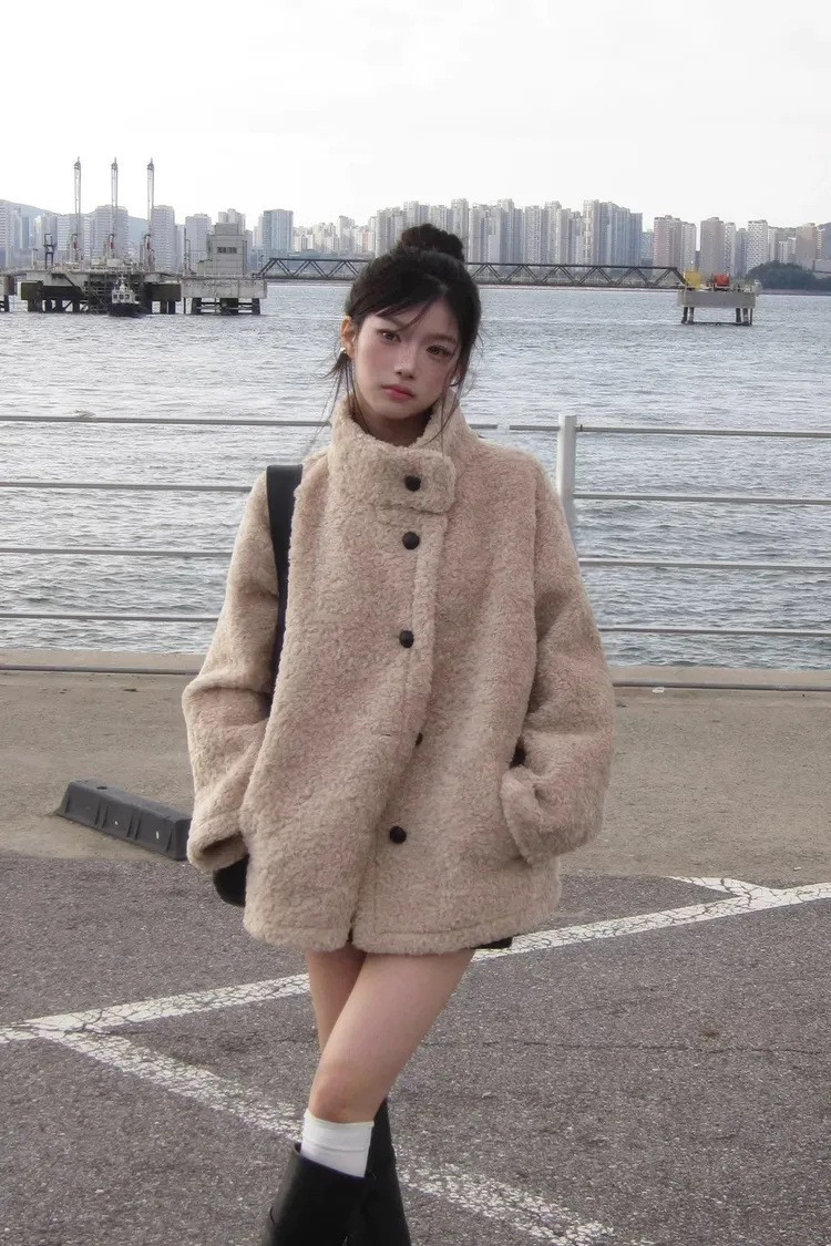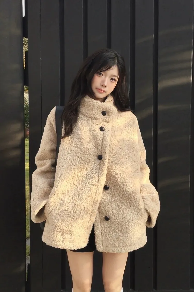 日系立領設計毛茸茸羊羔絨外套