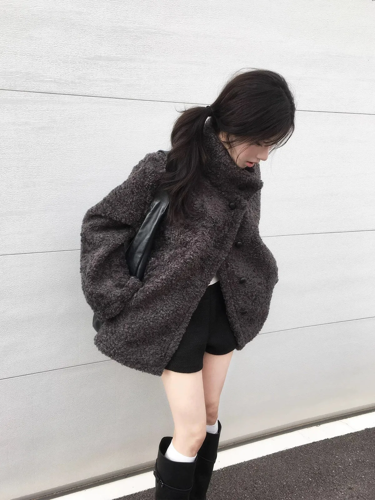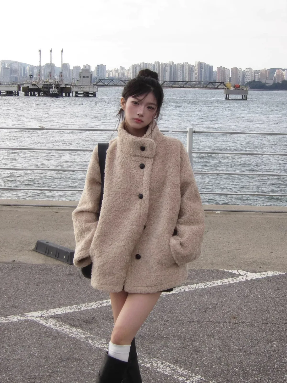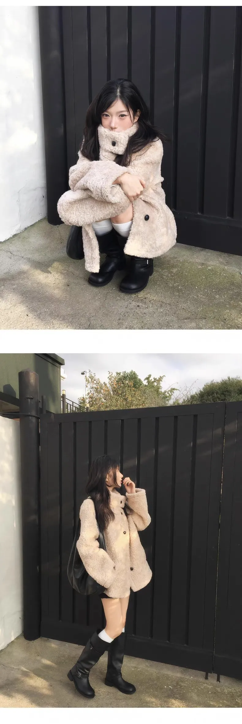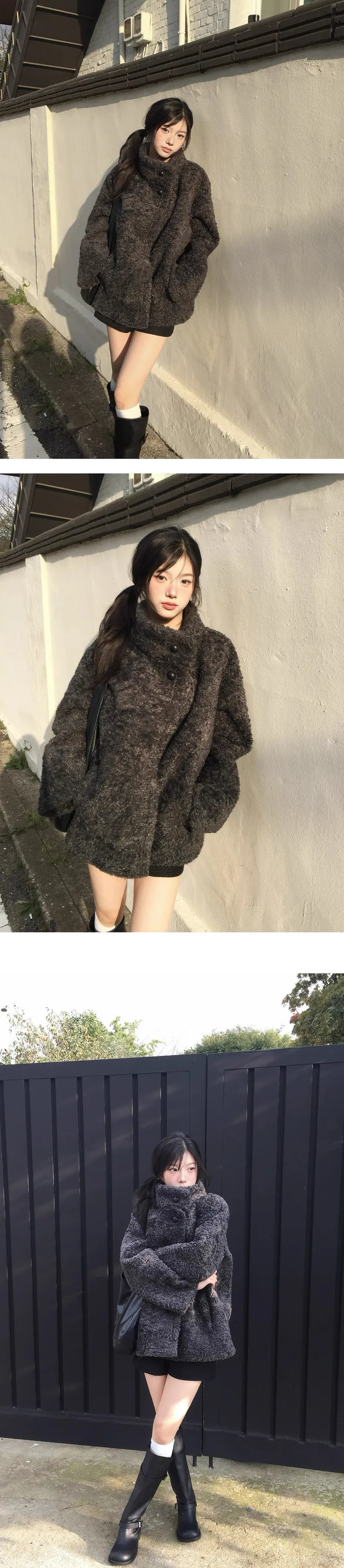 日系立領設計毛茸茸羊羔絨外套