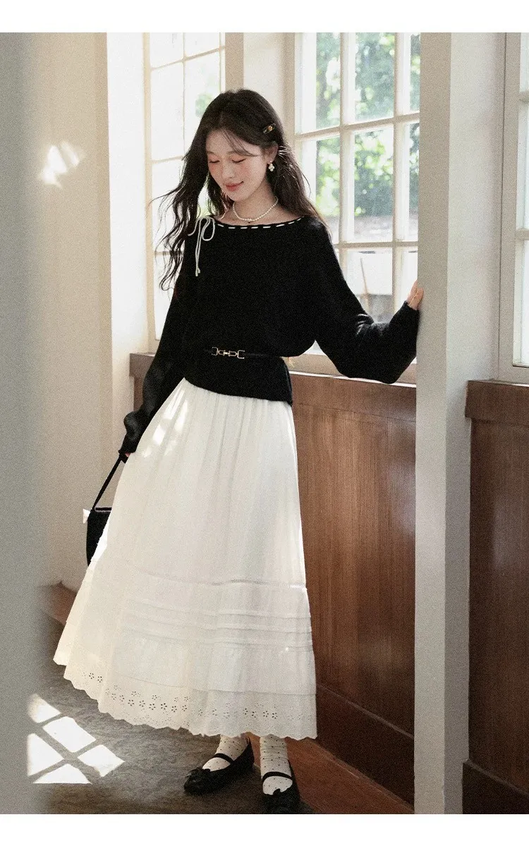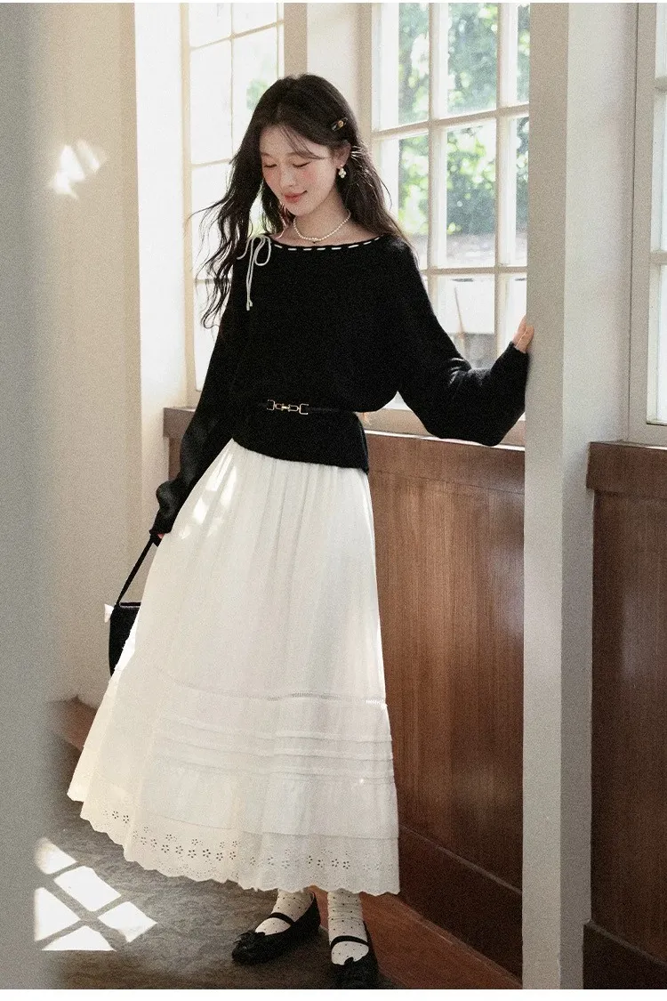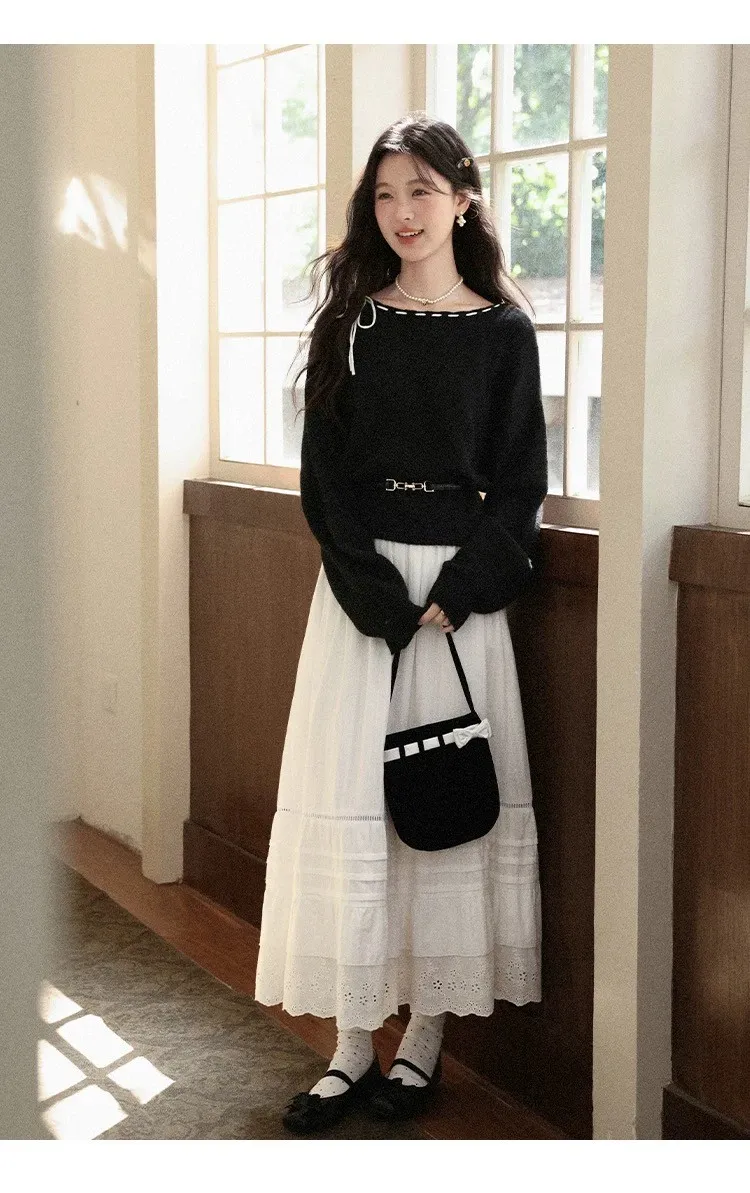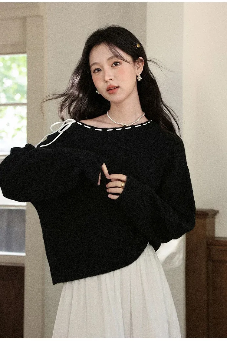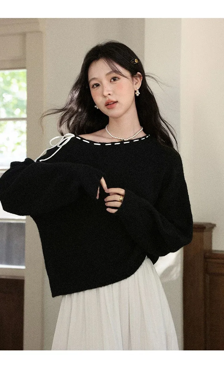 簡約蝴蝶結繫帶高級感配色針織上衣