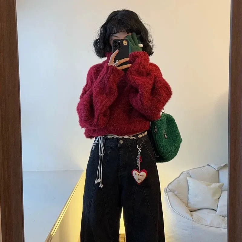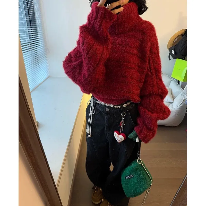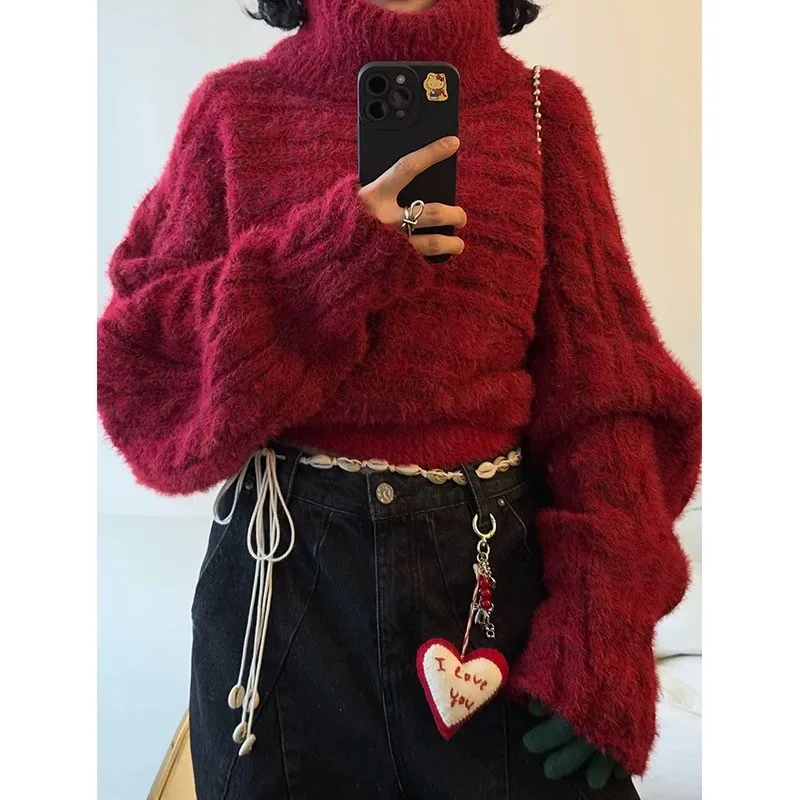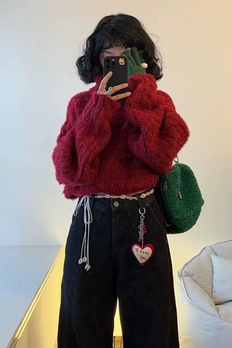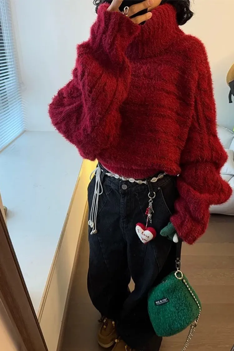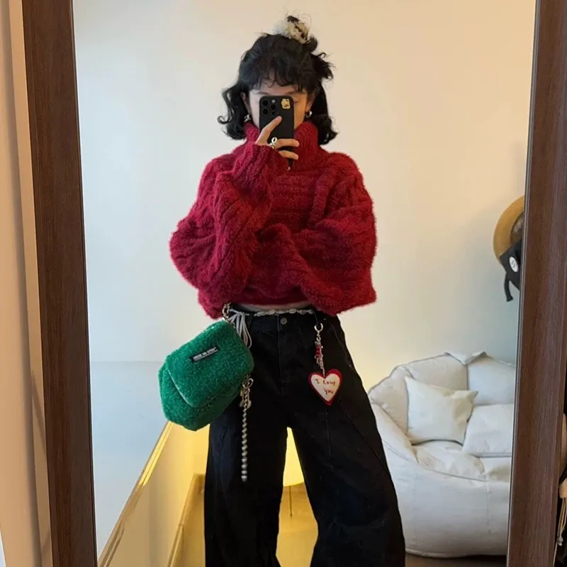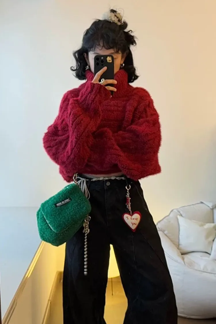 高級時髦感多穿法寬鬆加厚短款針織上衣