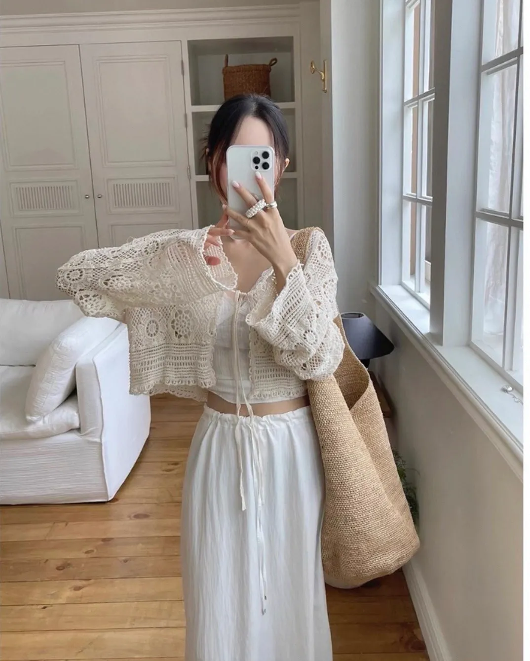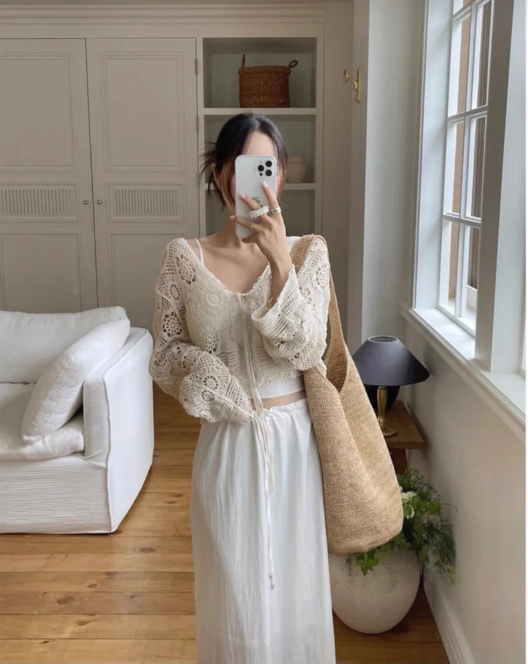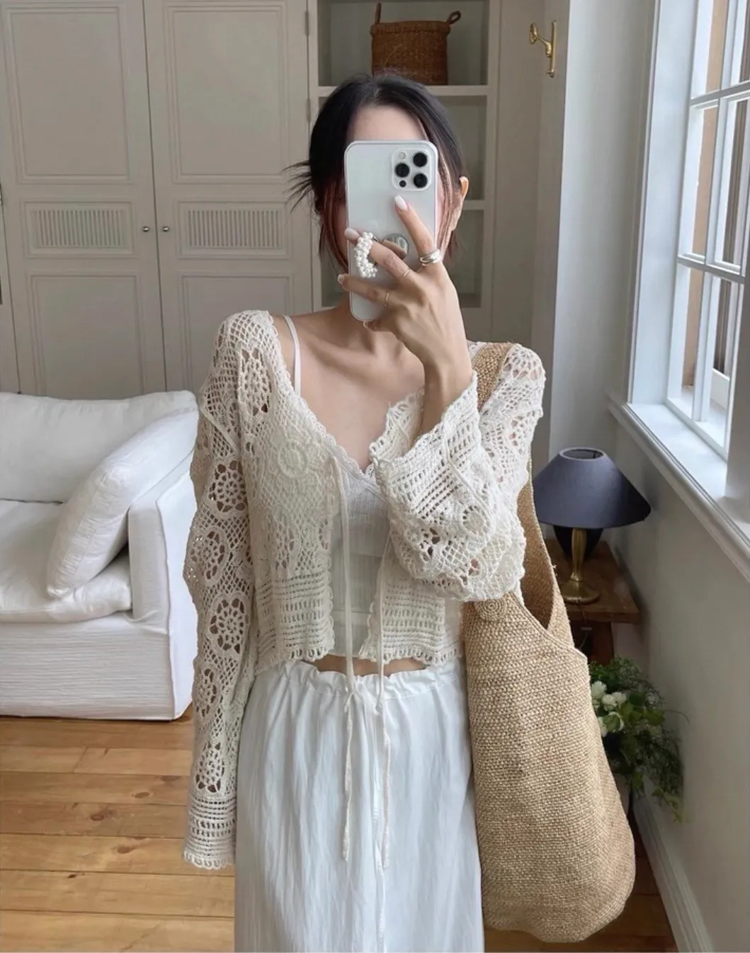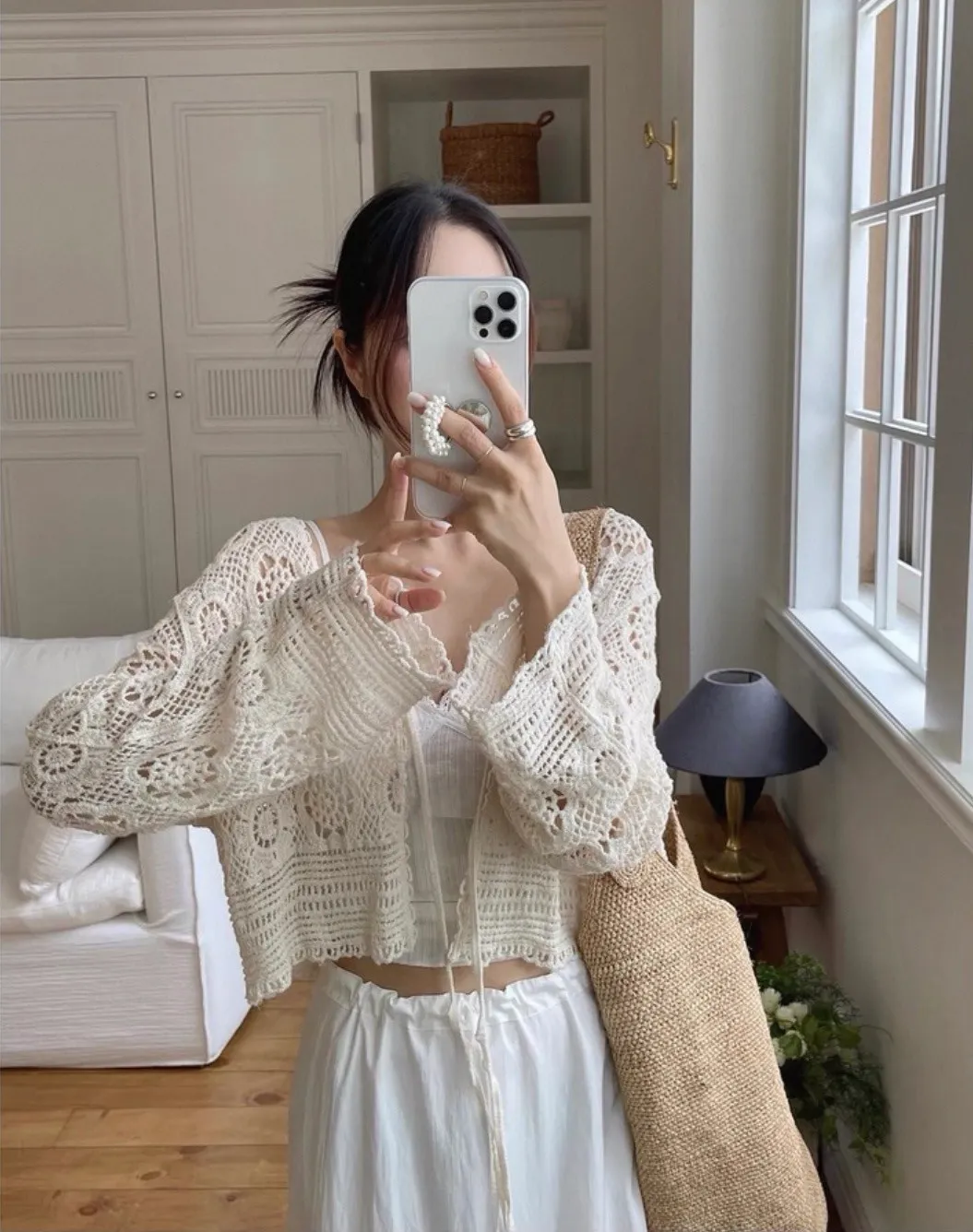 鏤空鉤花針織綁帶罩衫外套