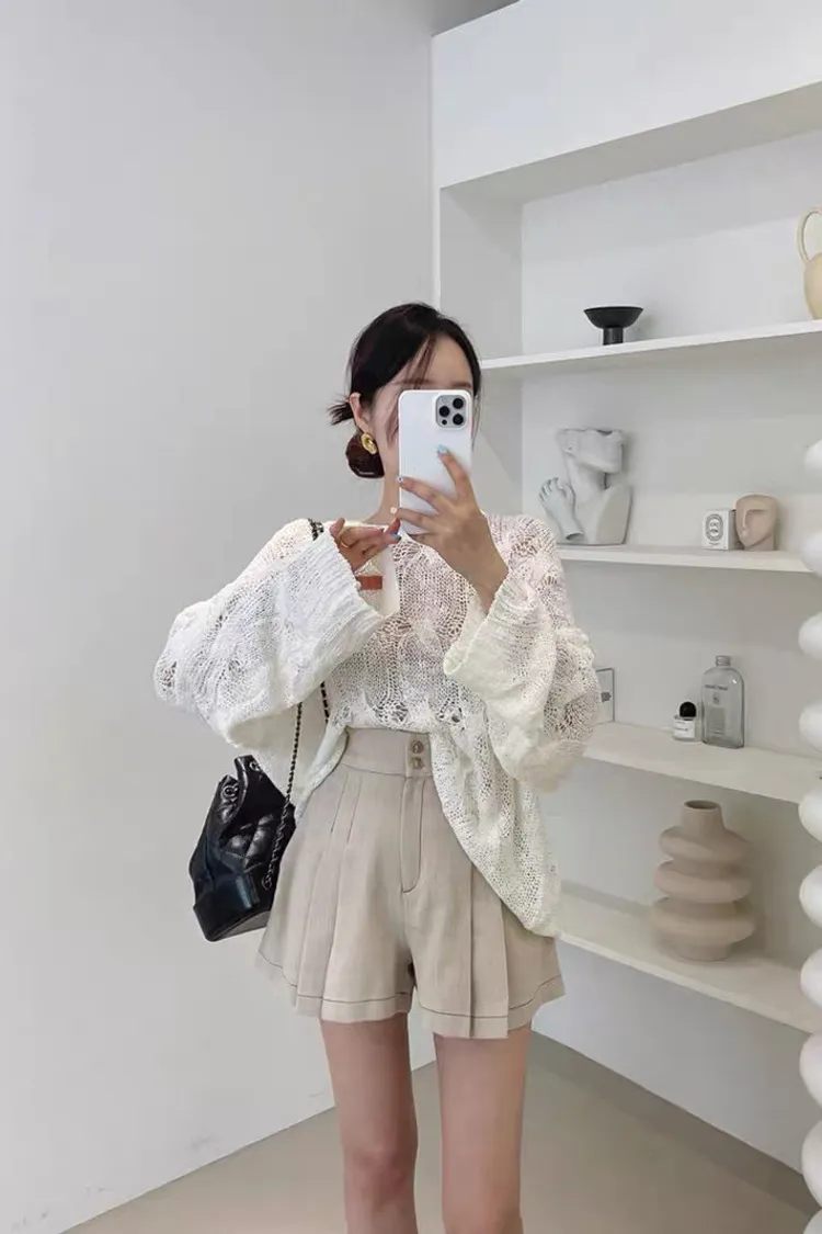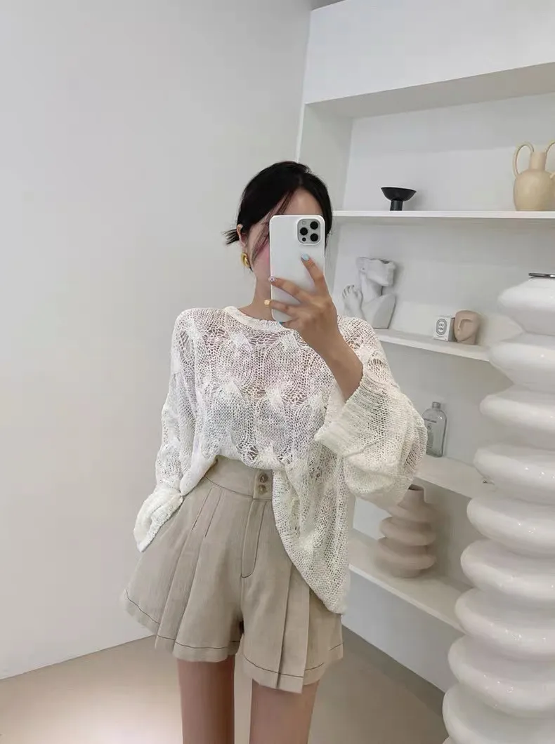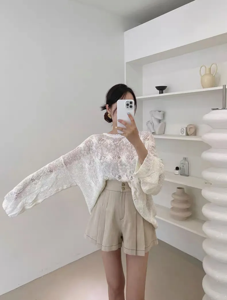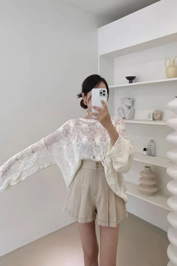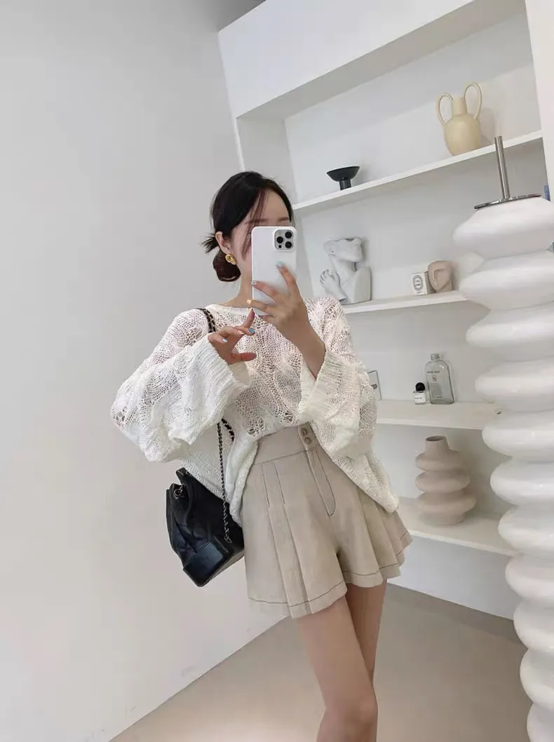 韓系chic鏤空針織長袖上衣