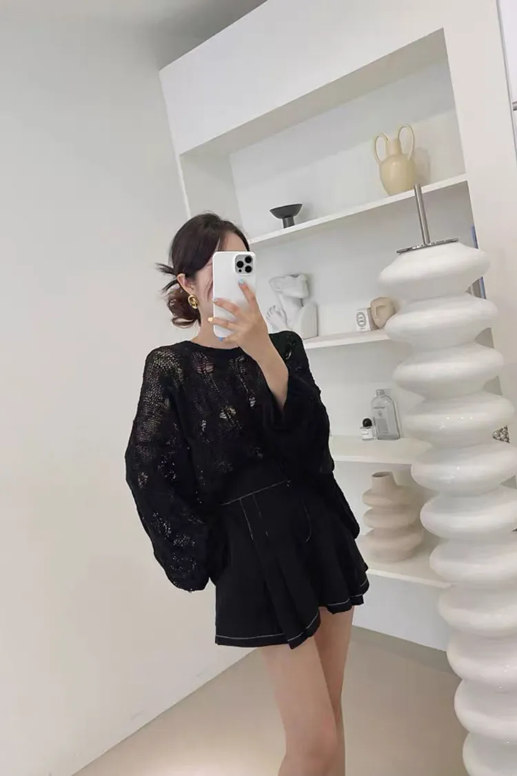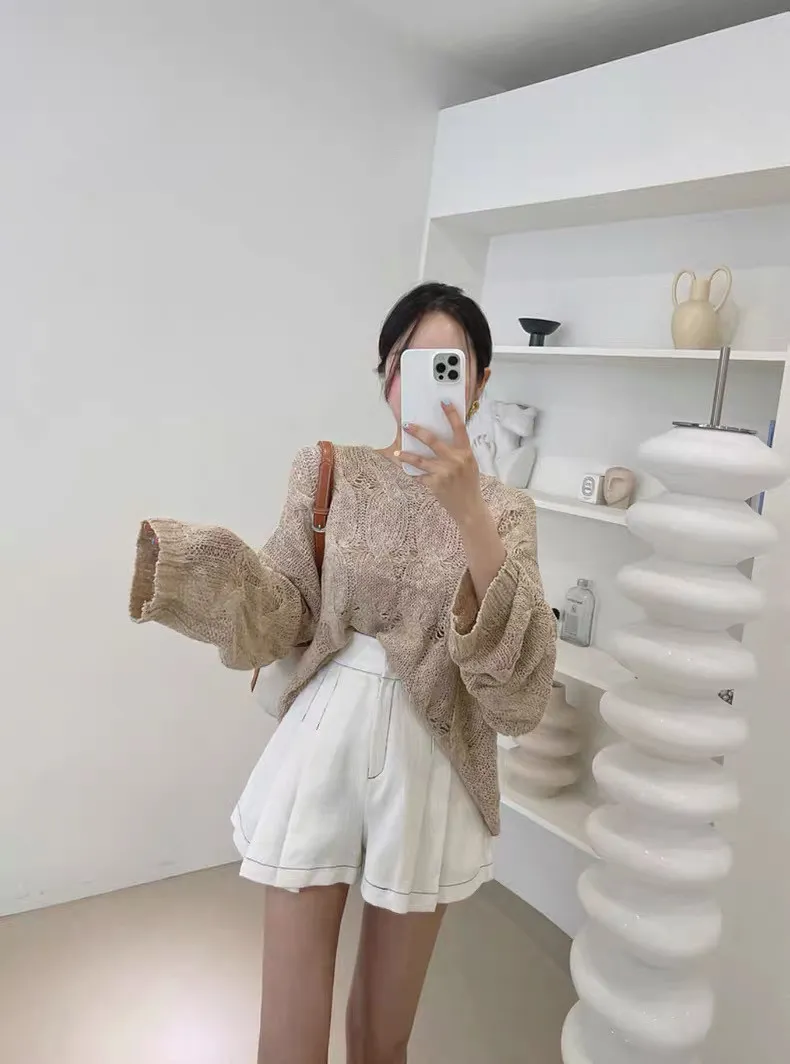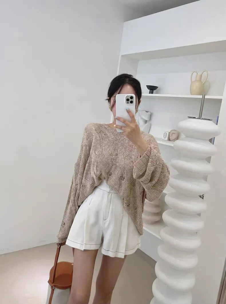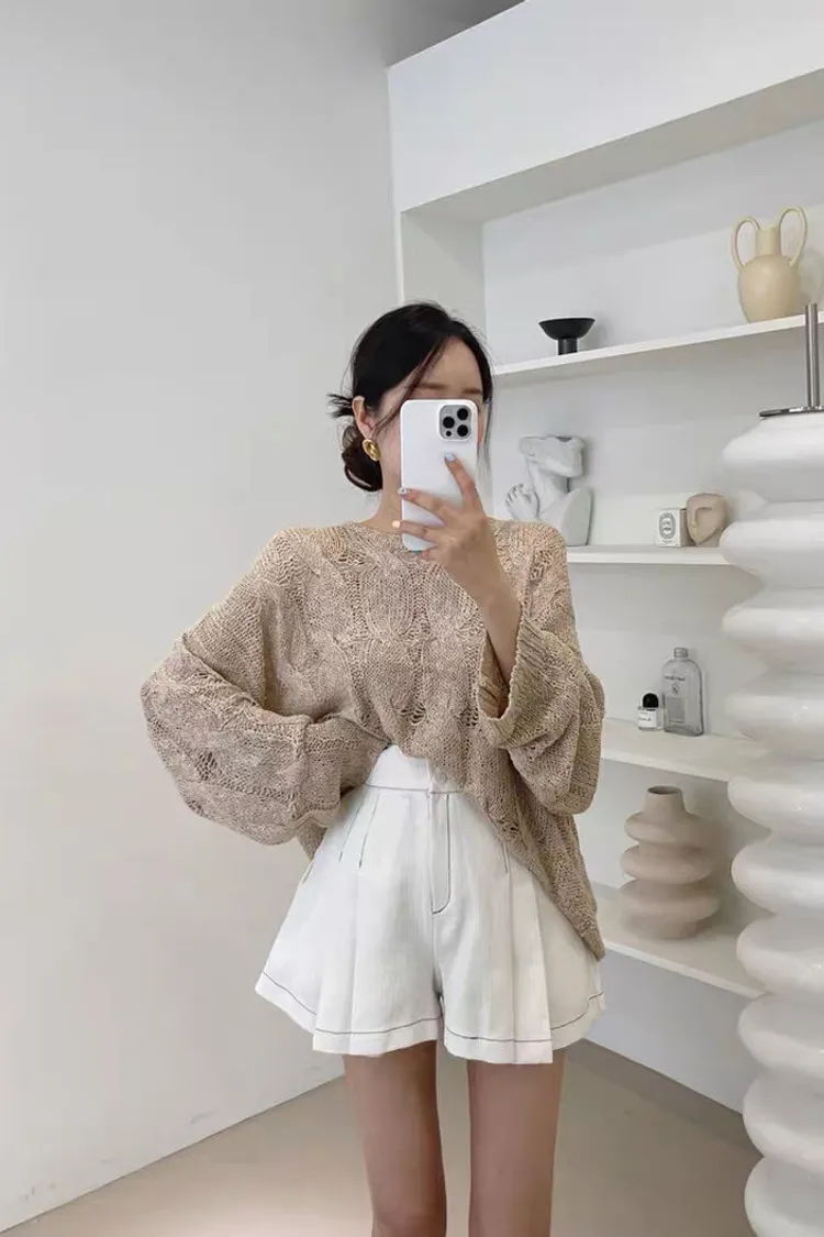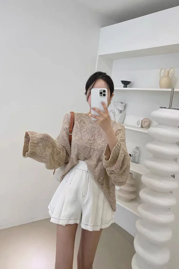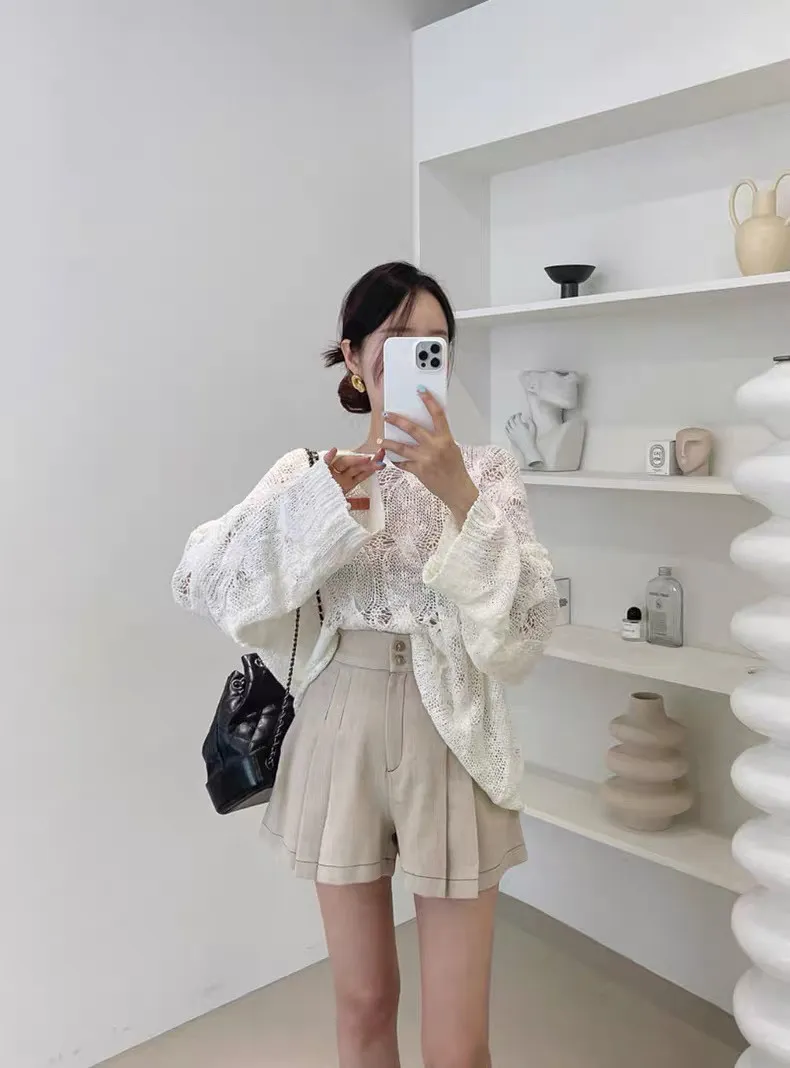 韓系chic鏤空針織長袖上衣