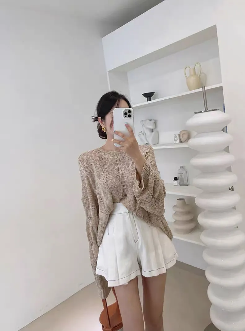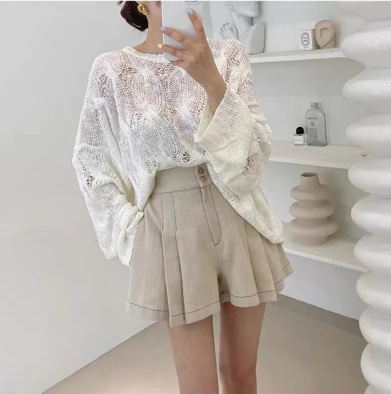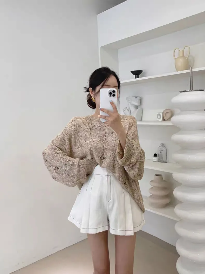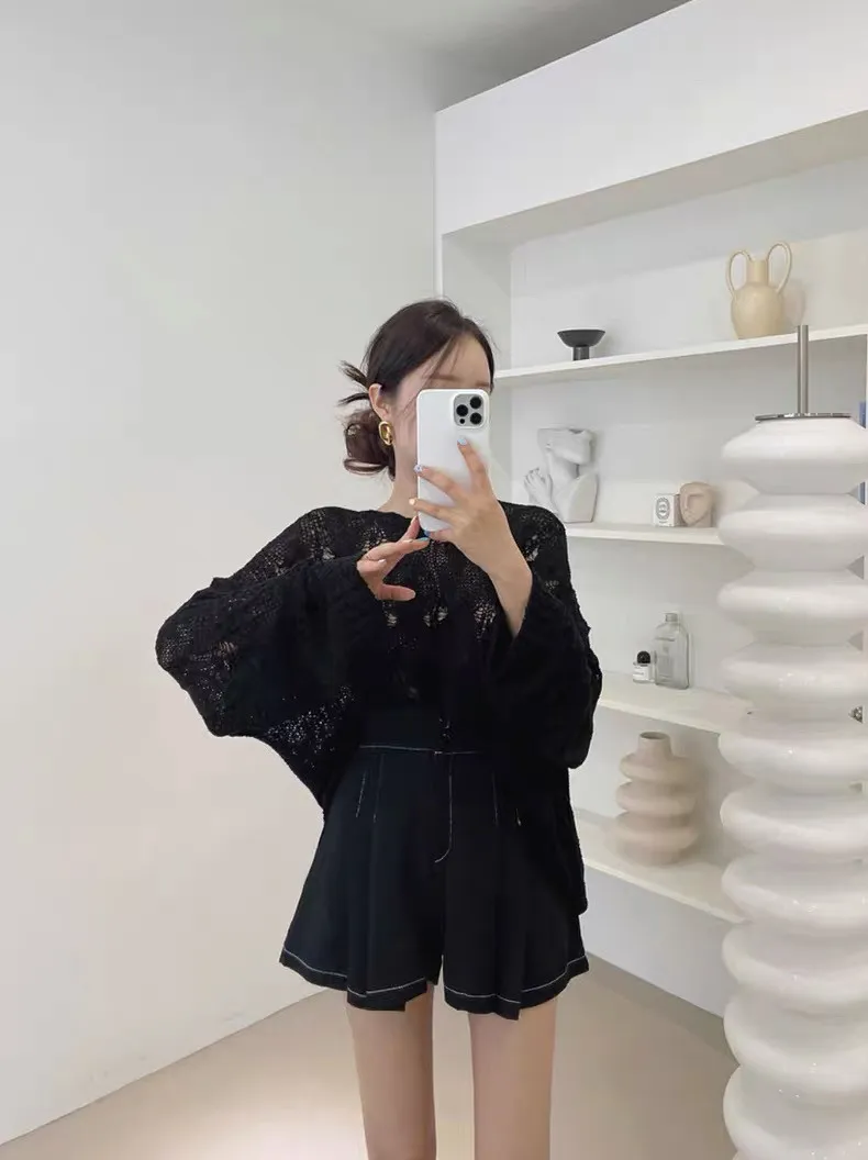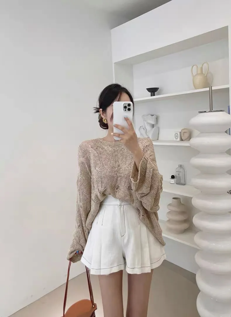 韓系chic鏤空針織長袖上衣