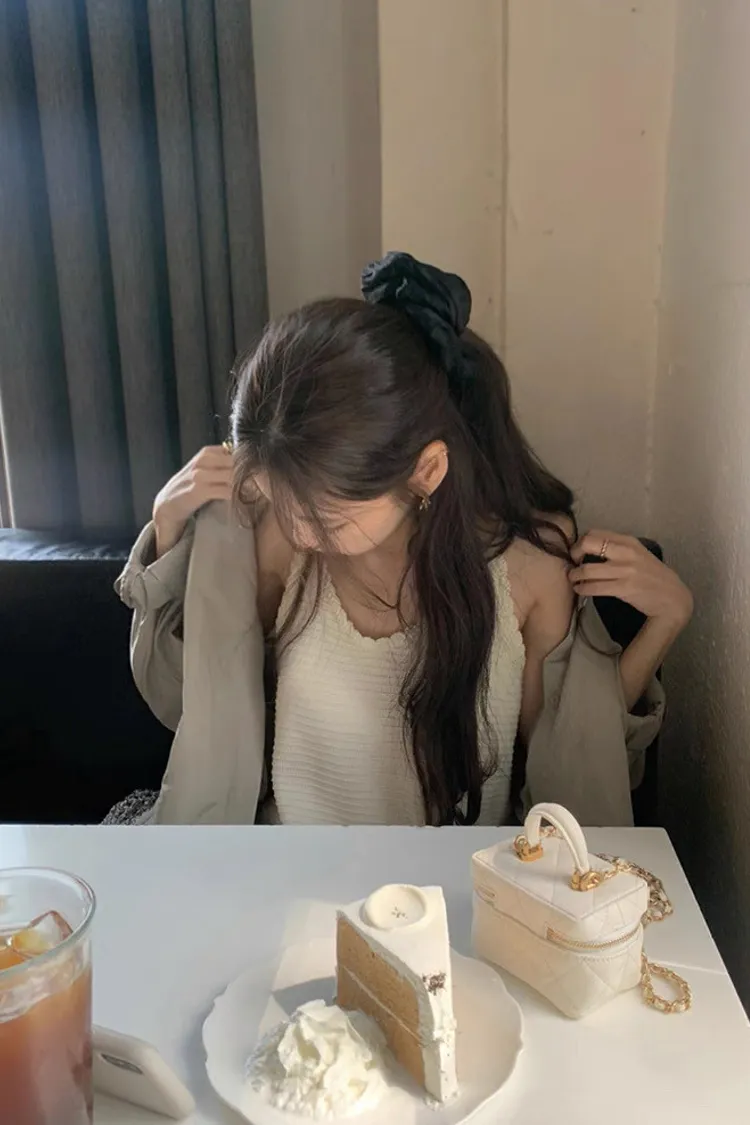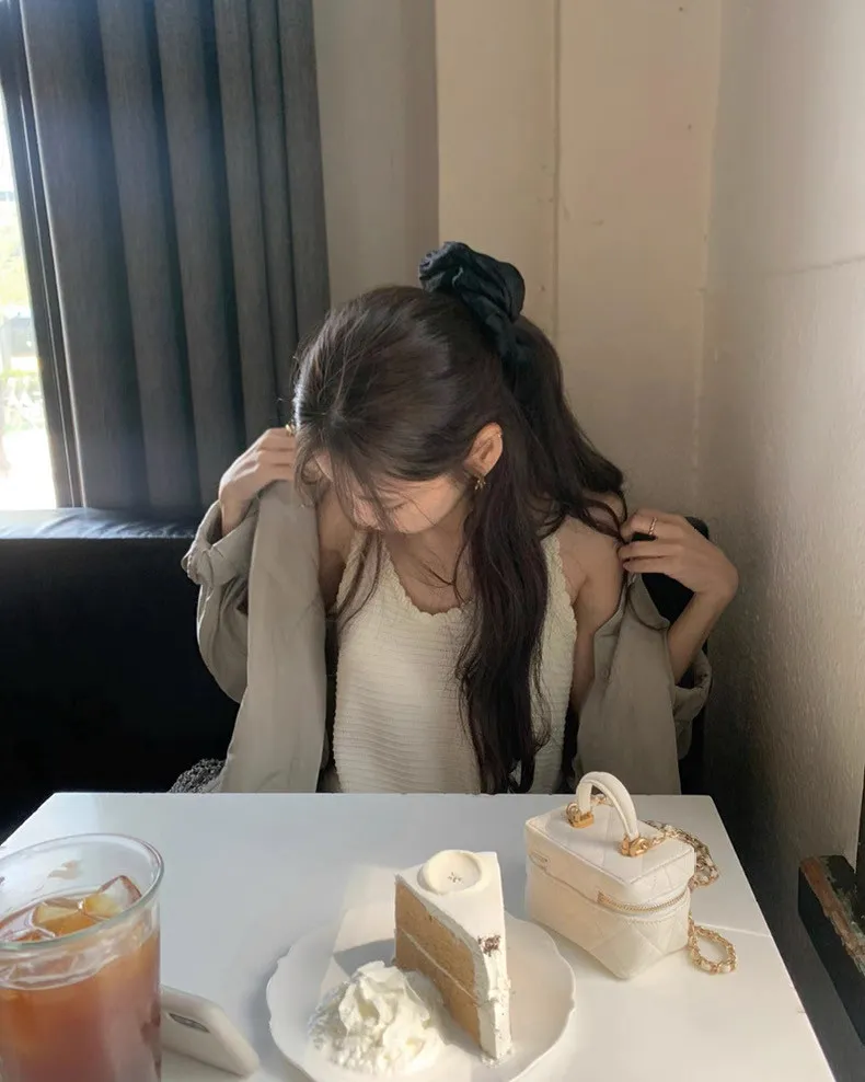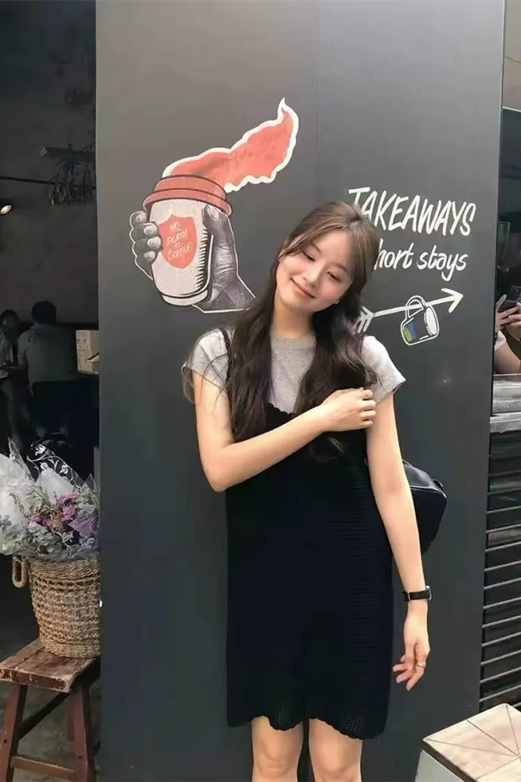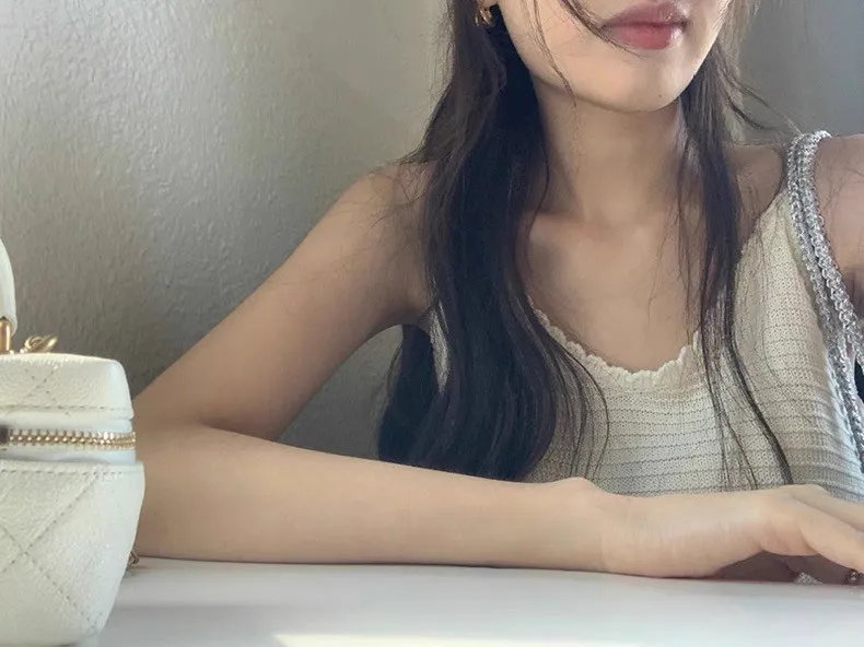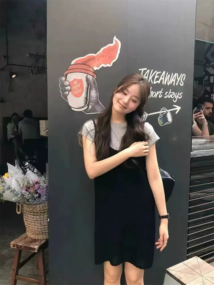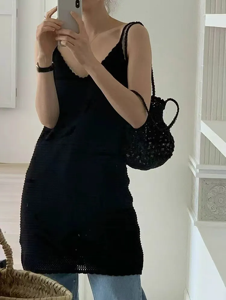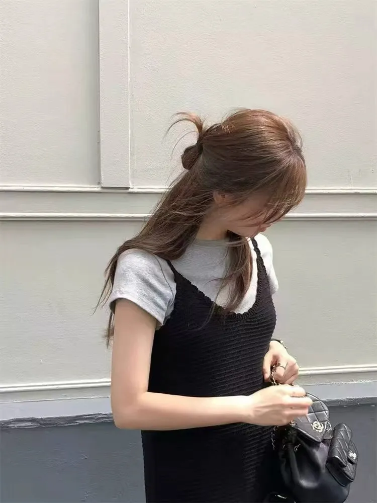 韓系Chic高級感坑條無袖針織背心連身裙