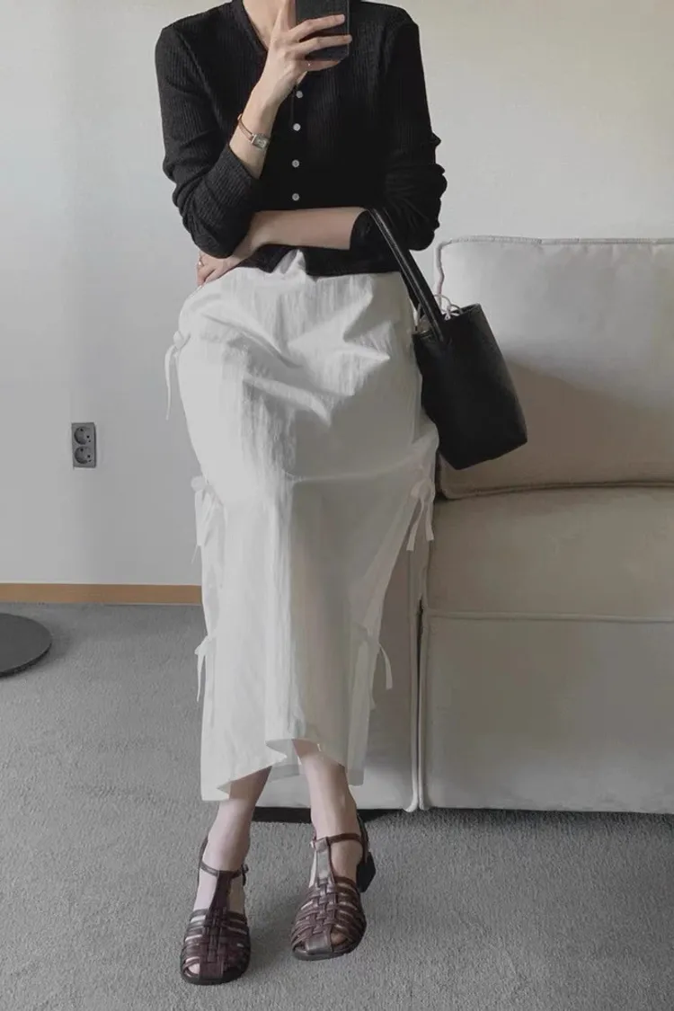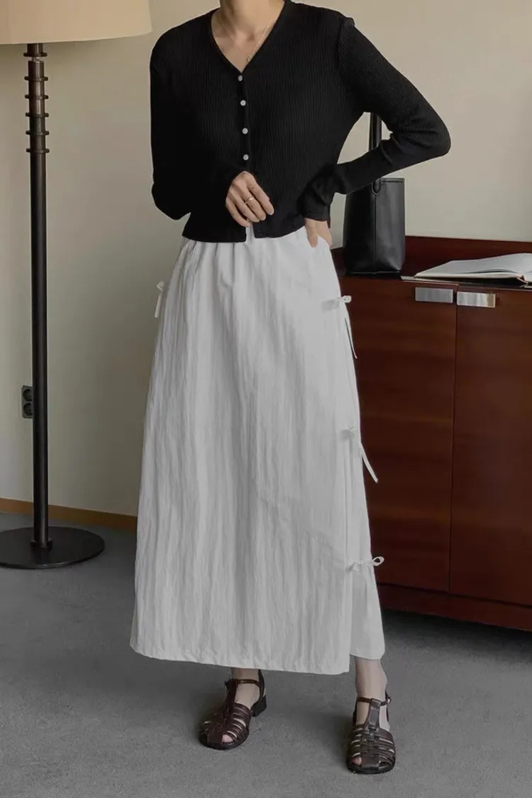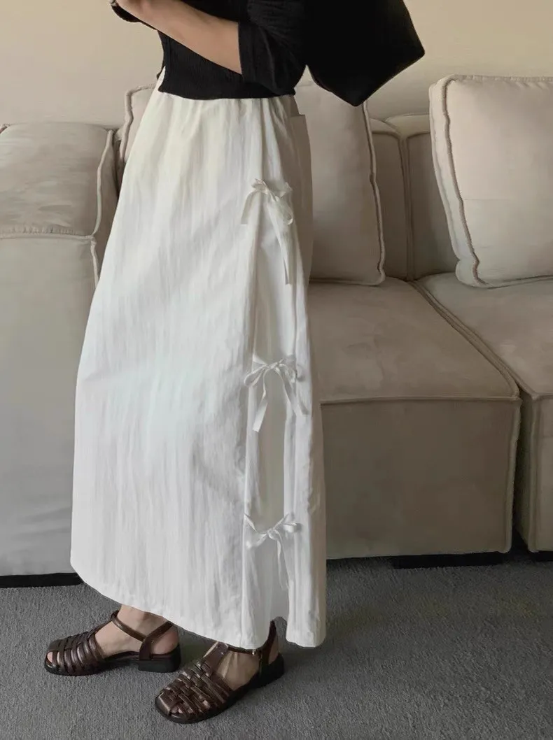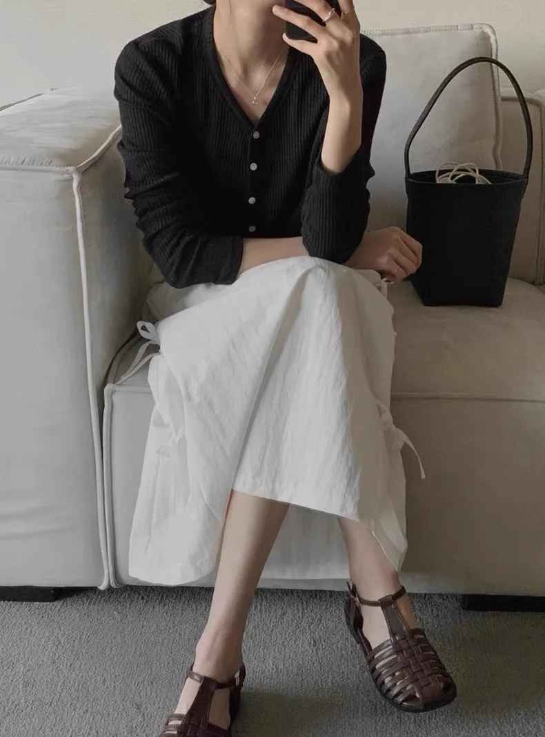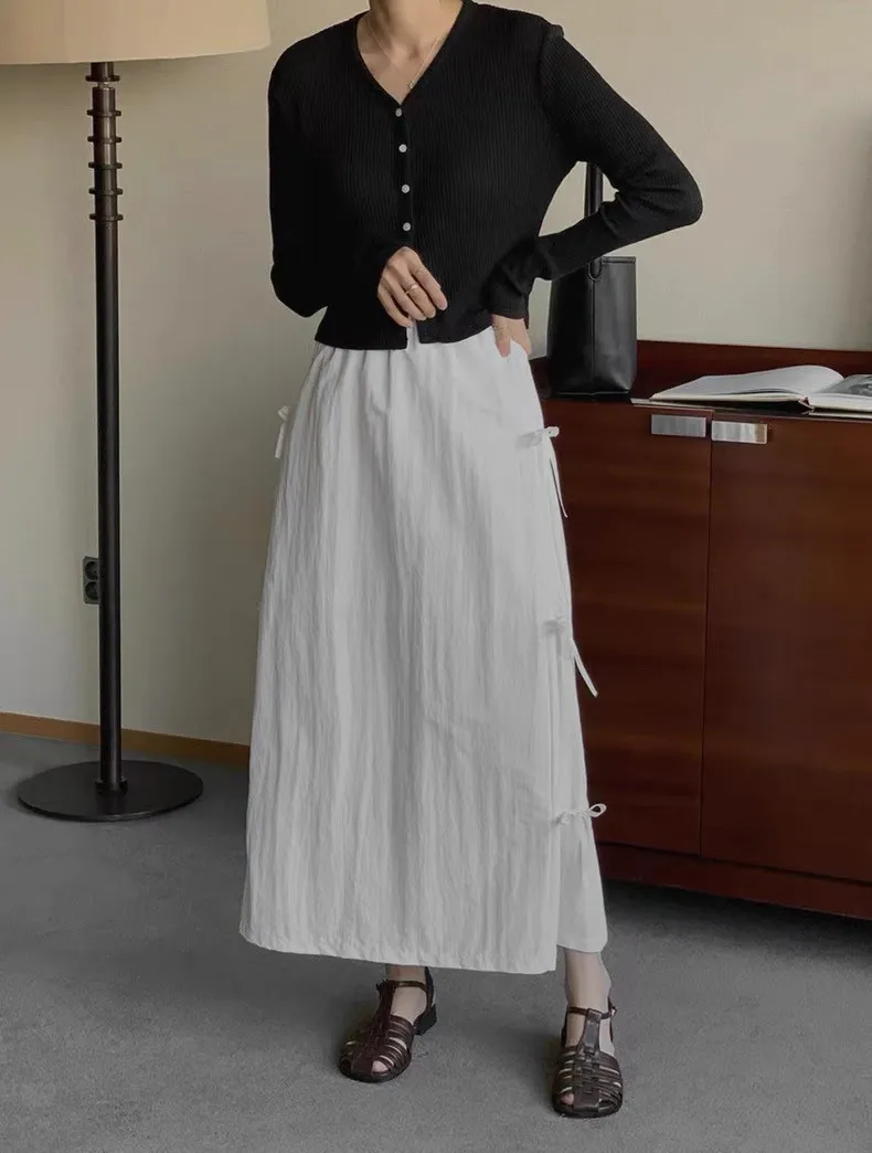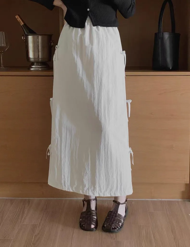 日系清新蝴蝶結繫帶高腰半身裙