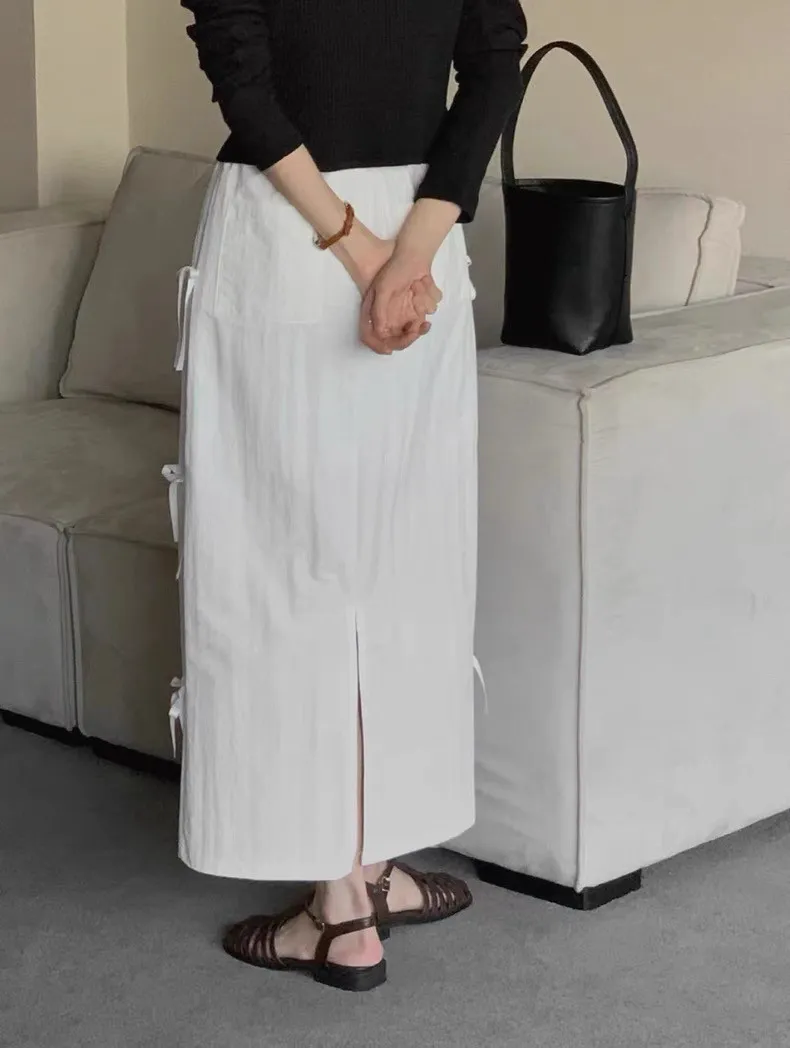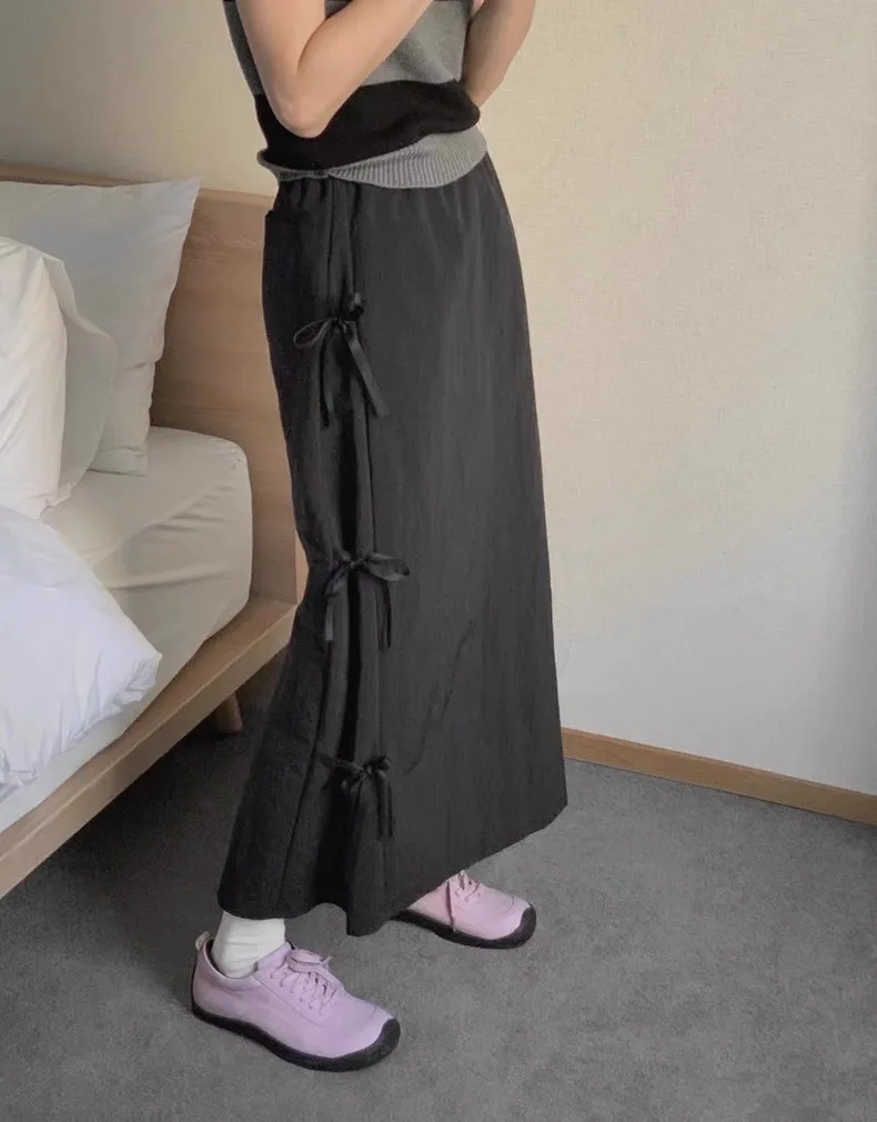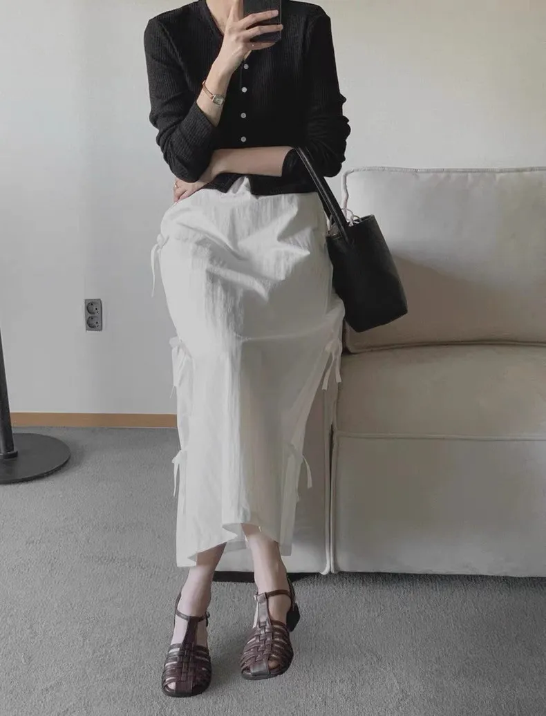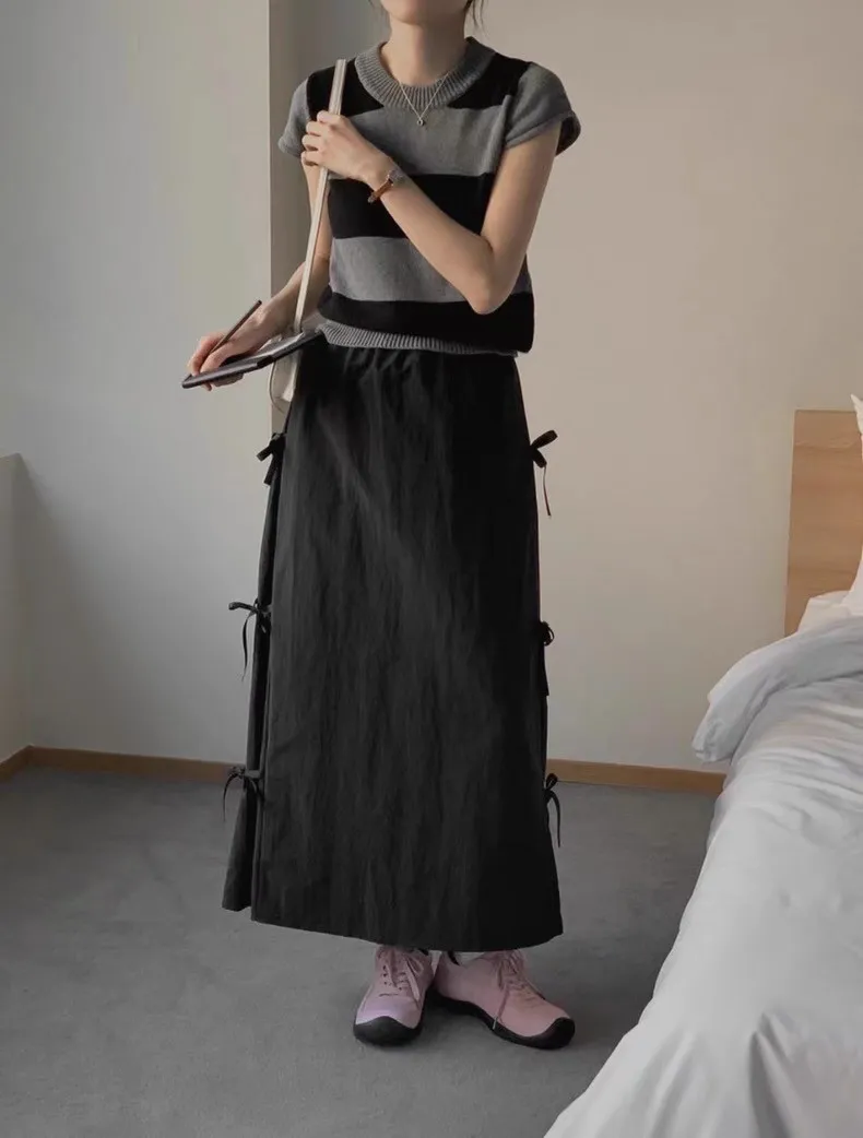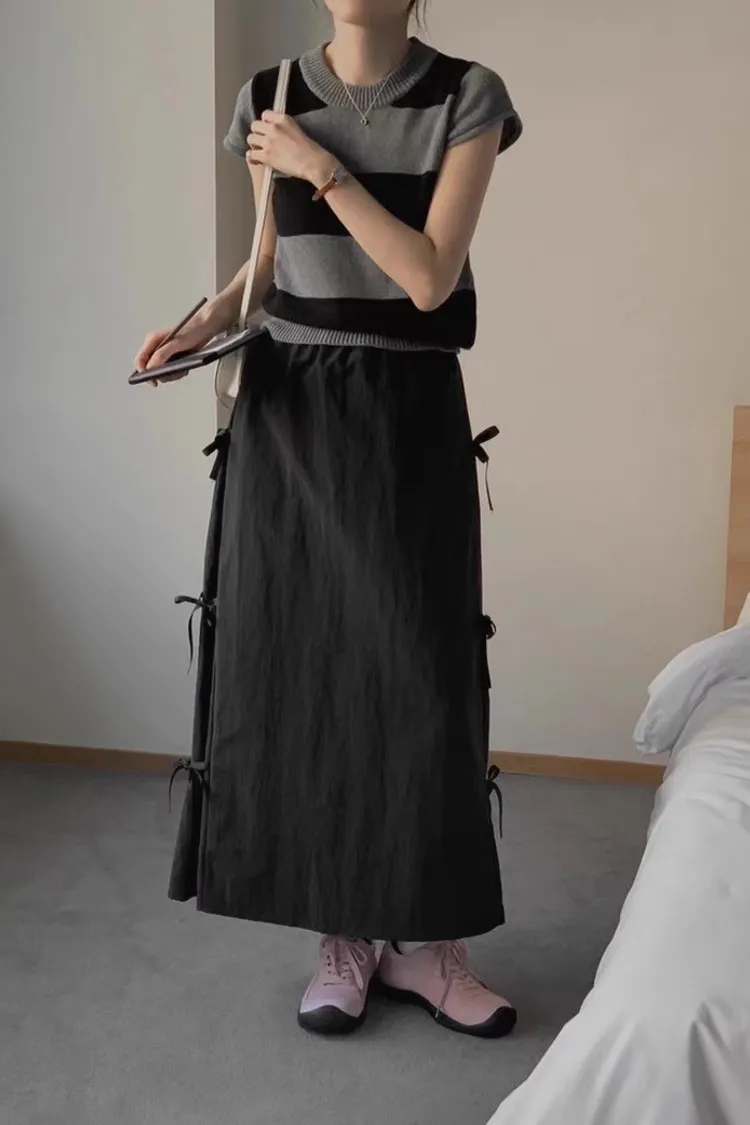 日系清新蝴蝶結繫帶高腰半身裙