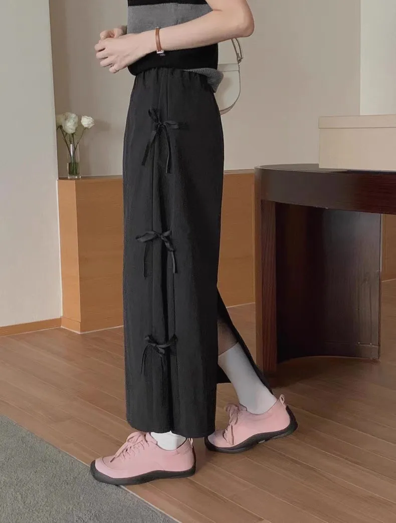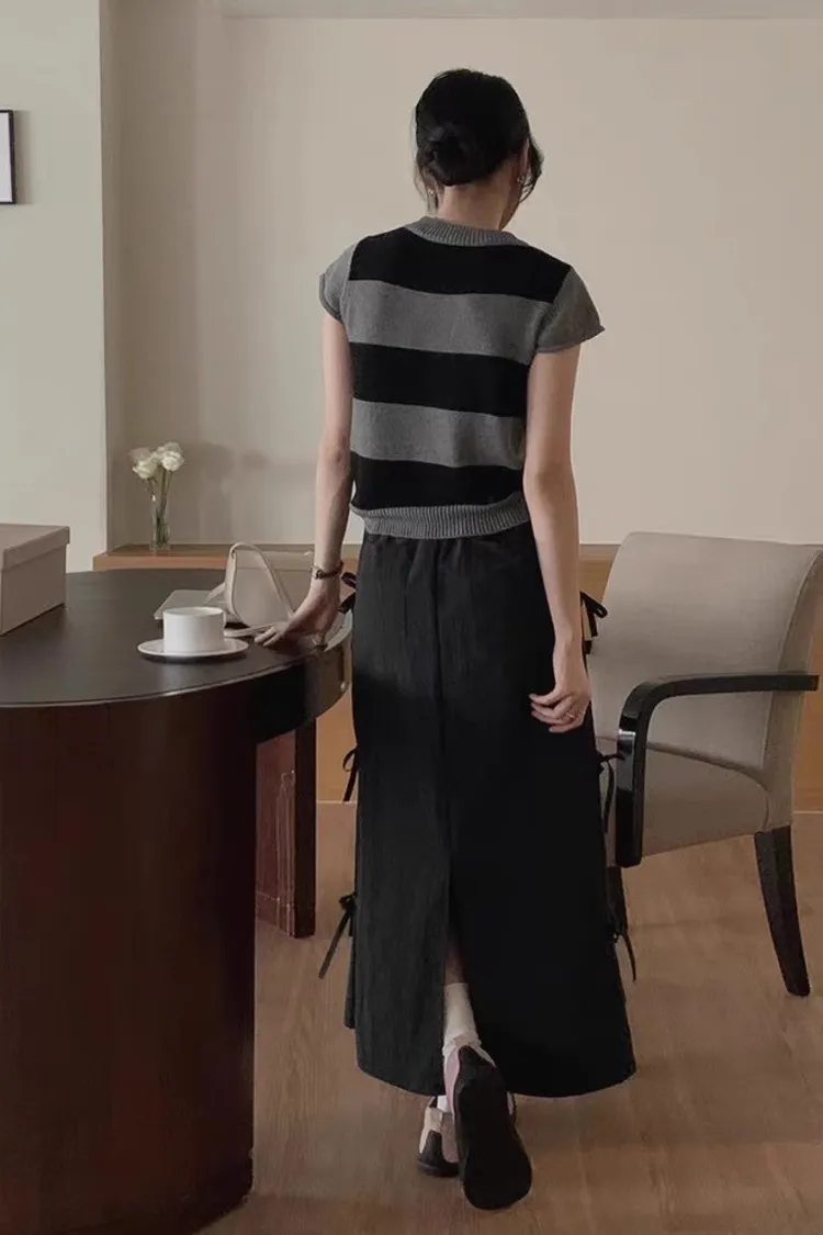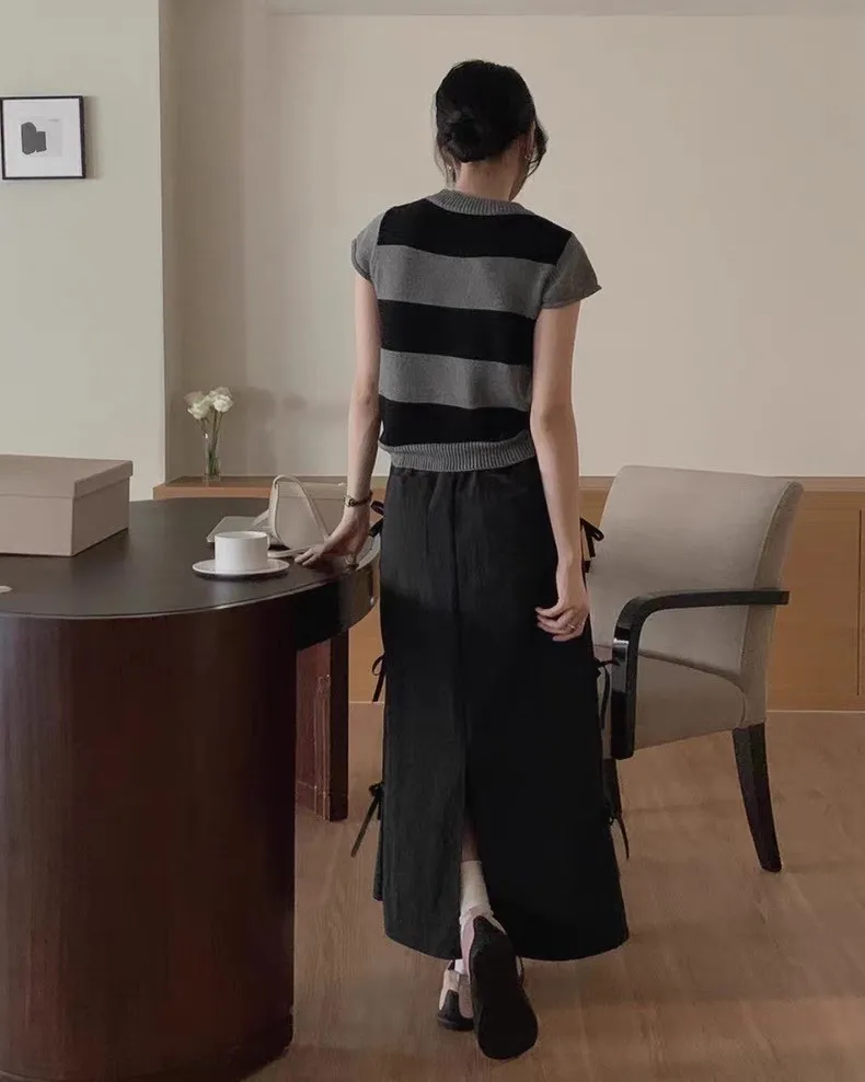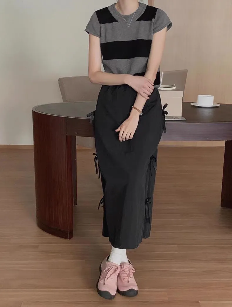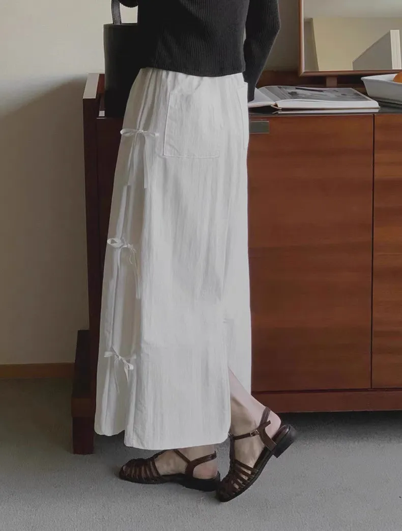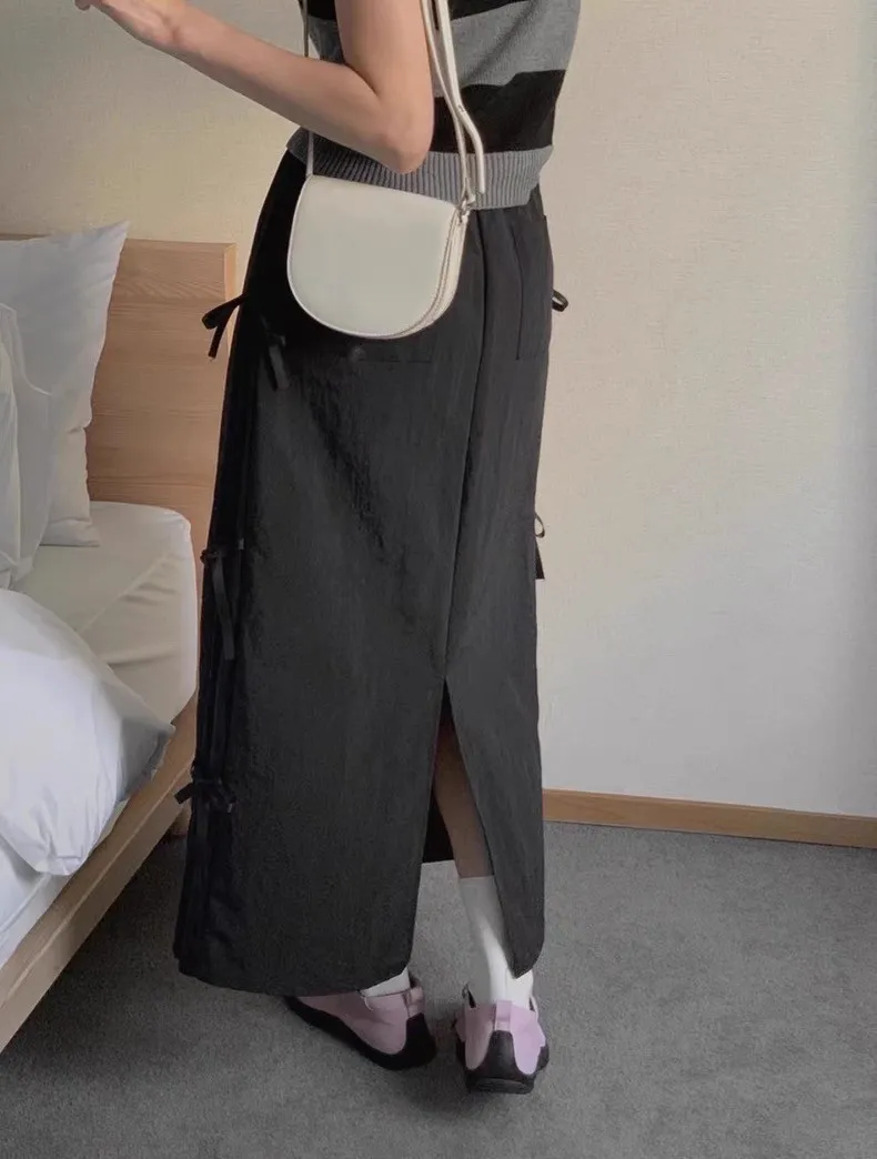 日系清新蝴蝶結繫帶高腰半身裙