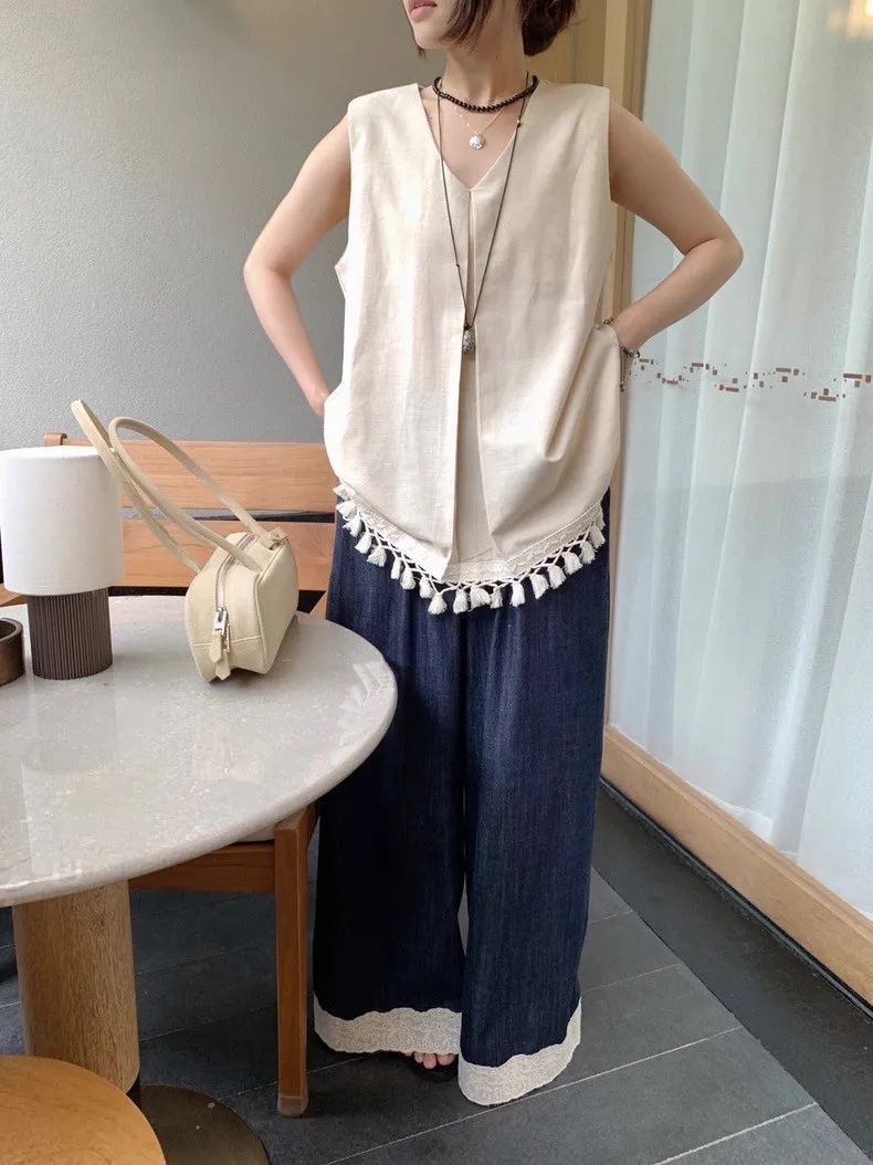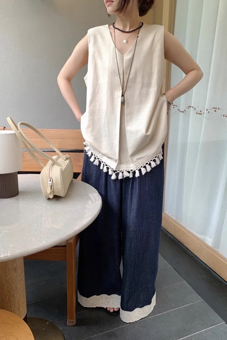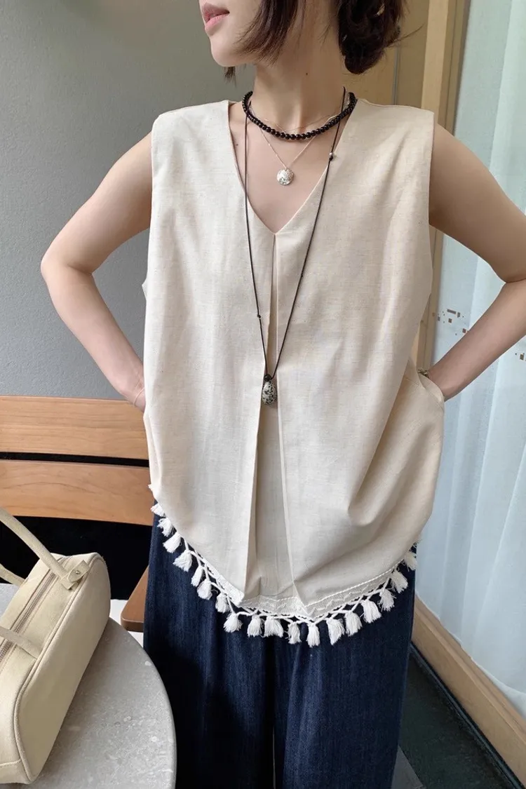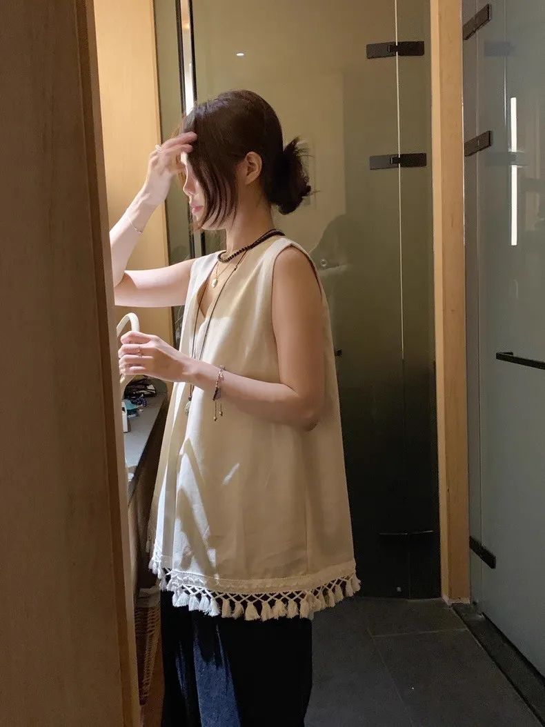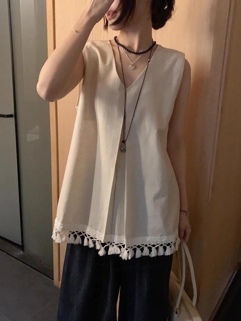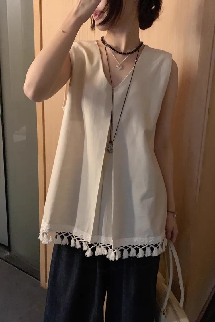 韓系時尚流蘇無袖襯衫