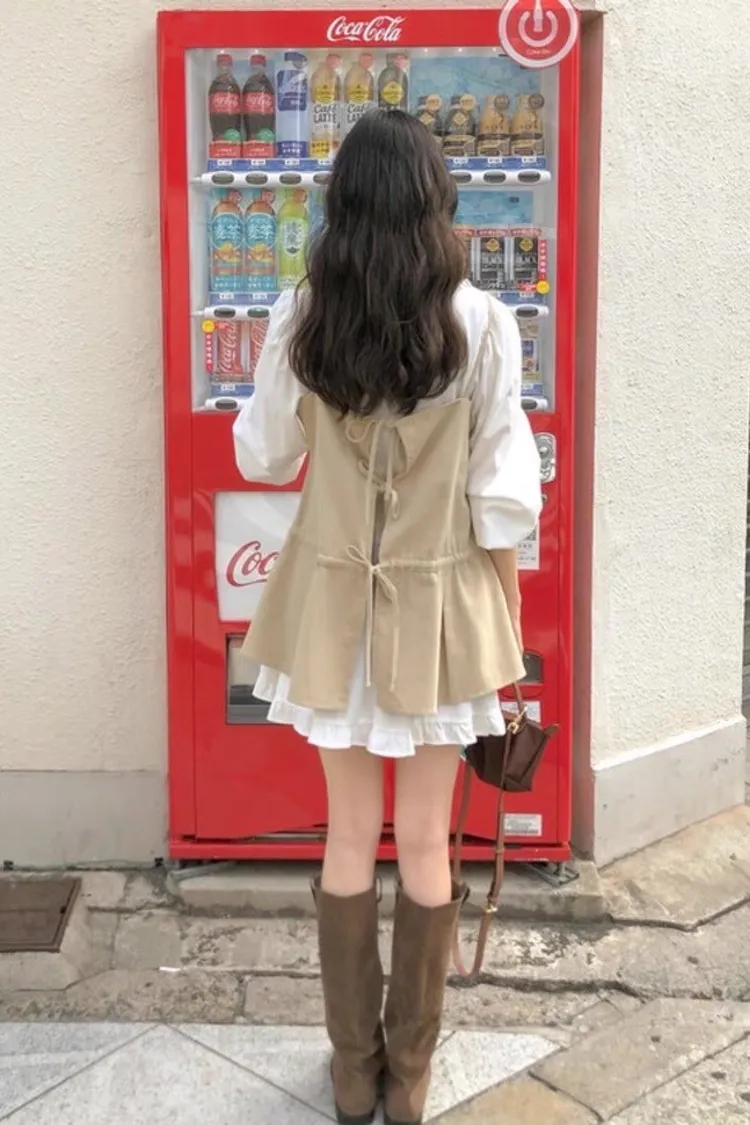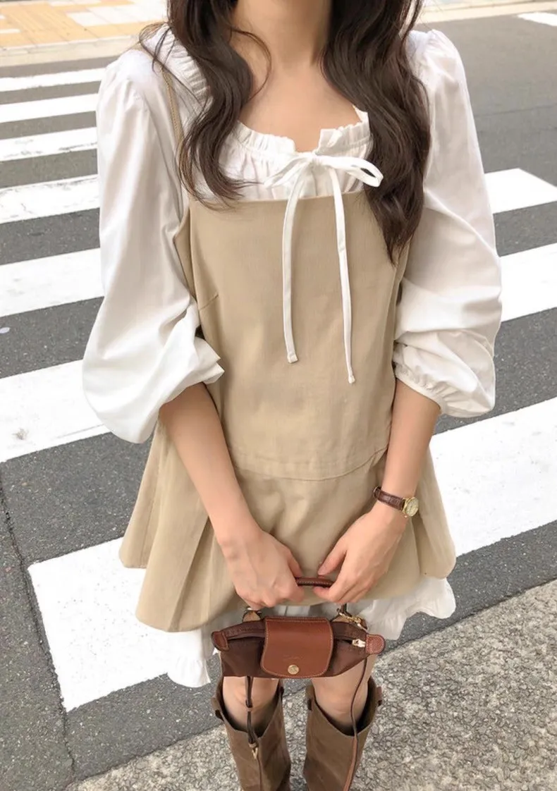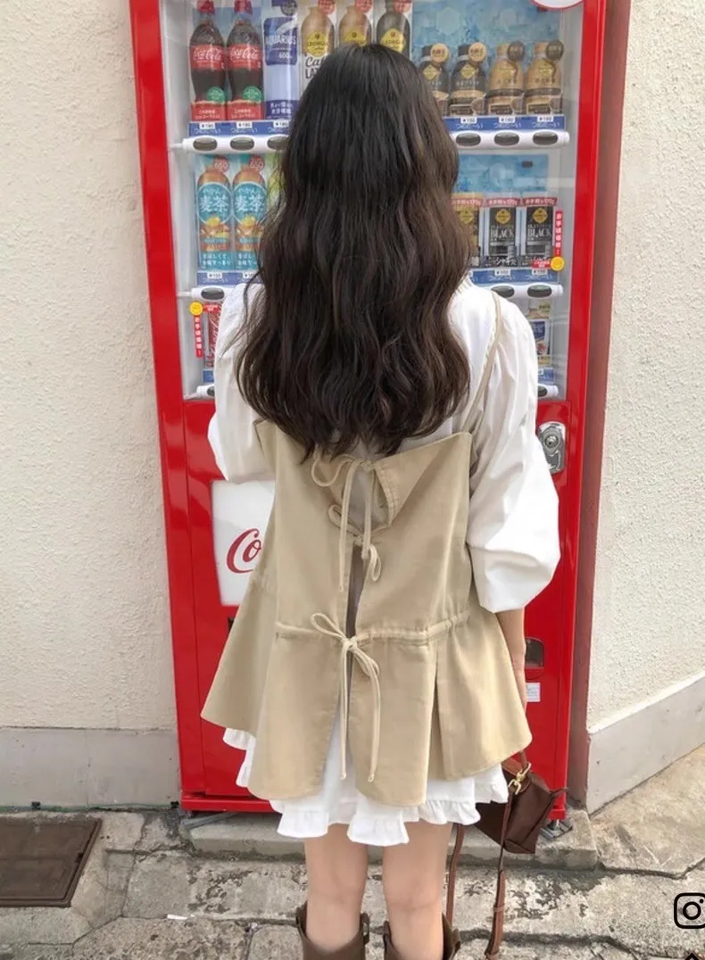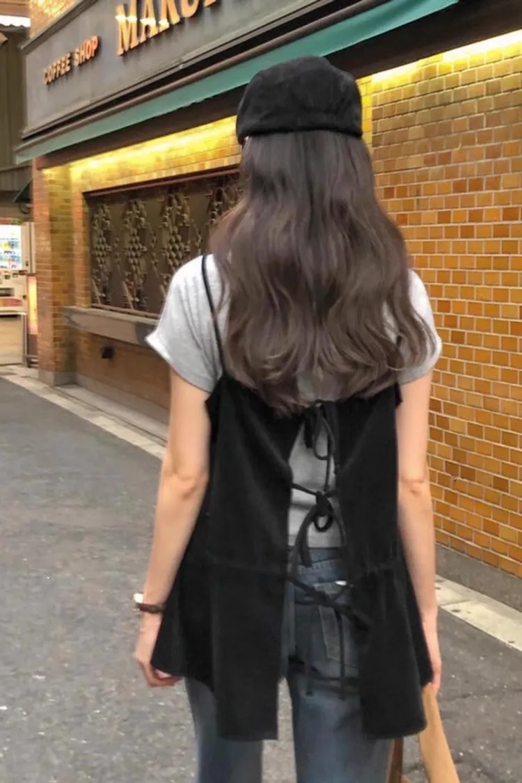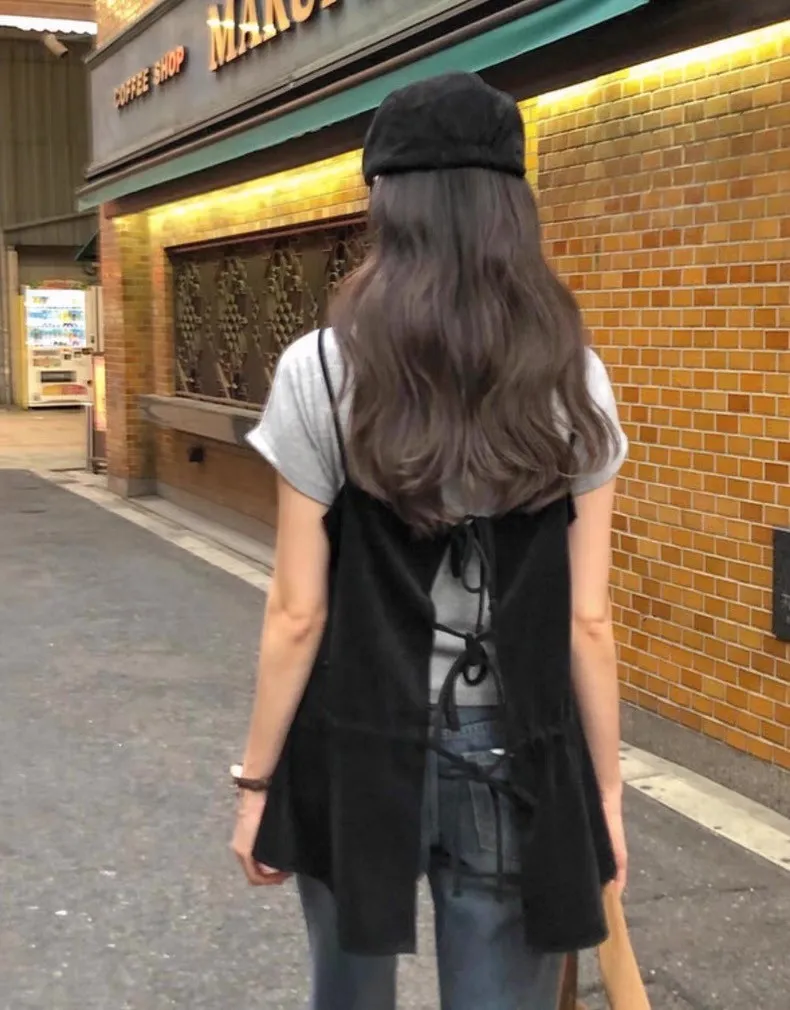 輕奢氣質純色後背繫帶吊帶裙