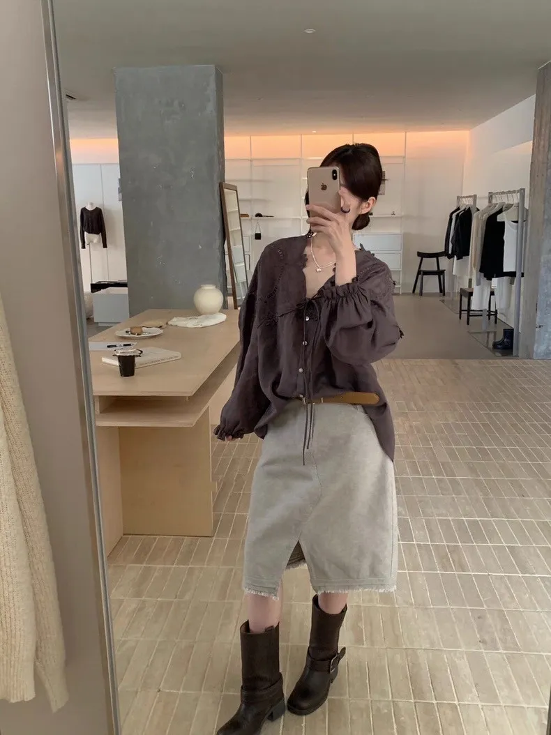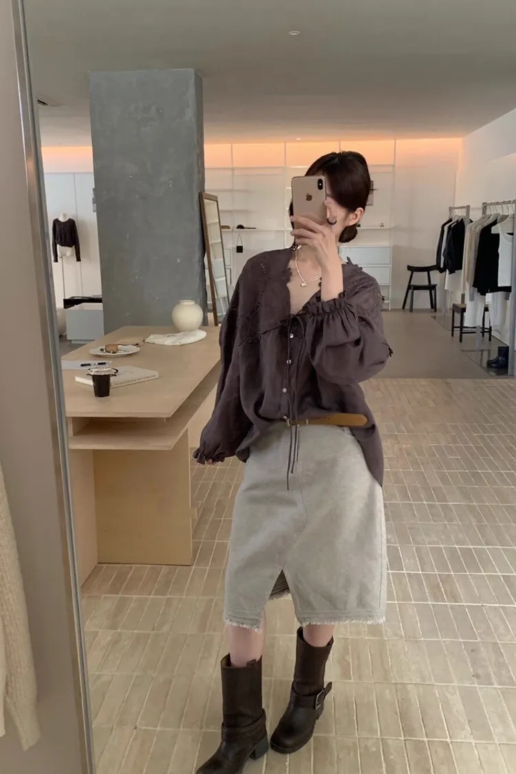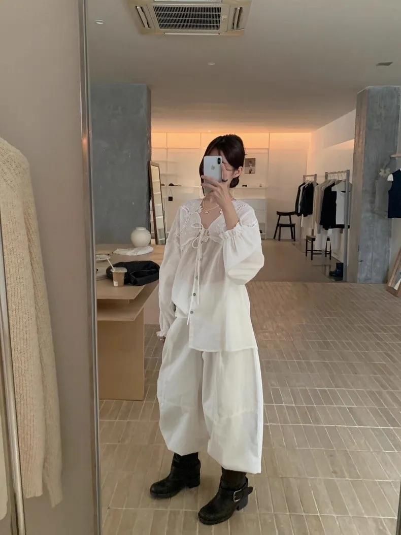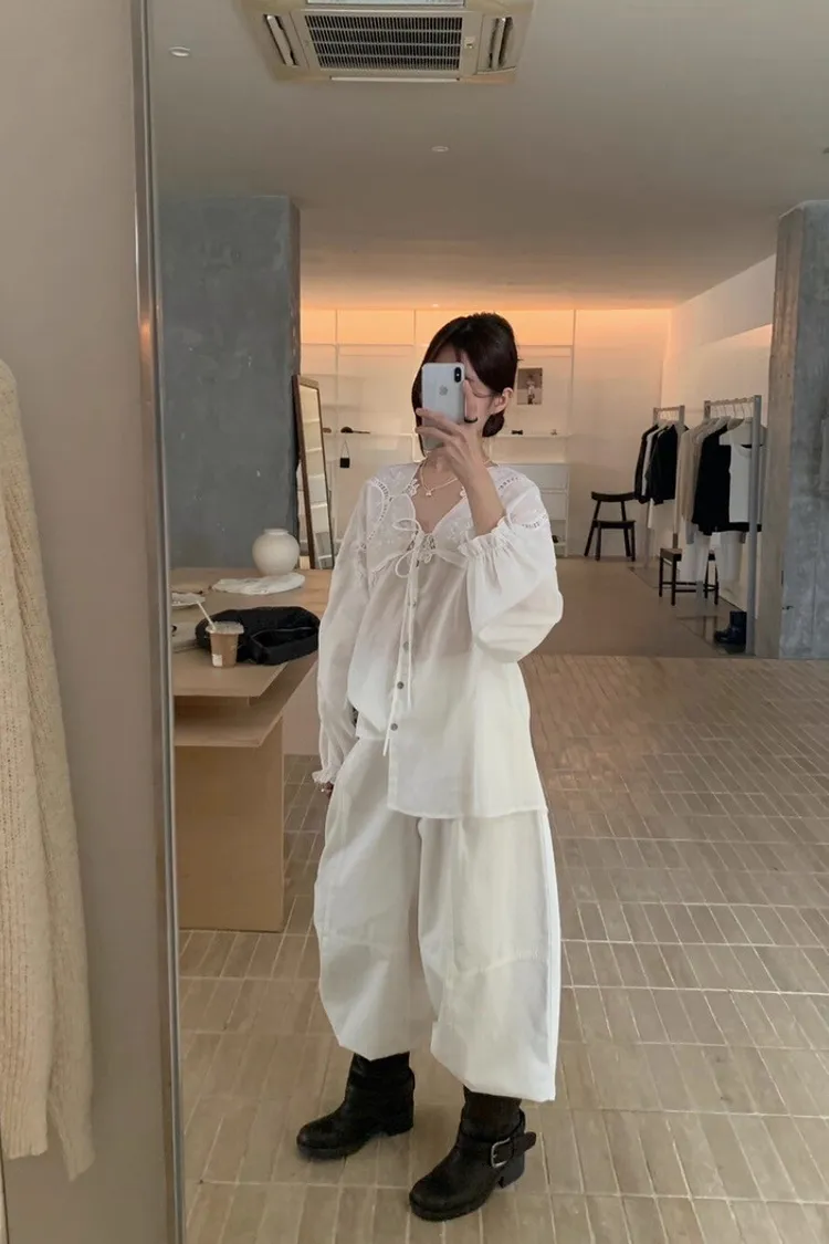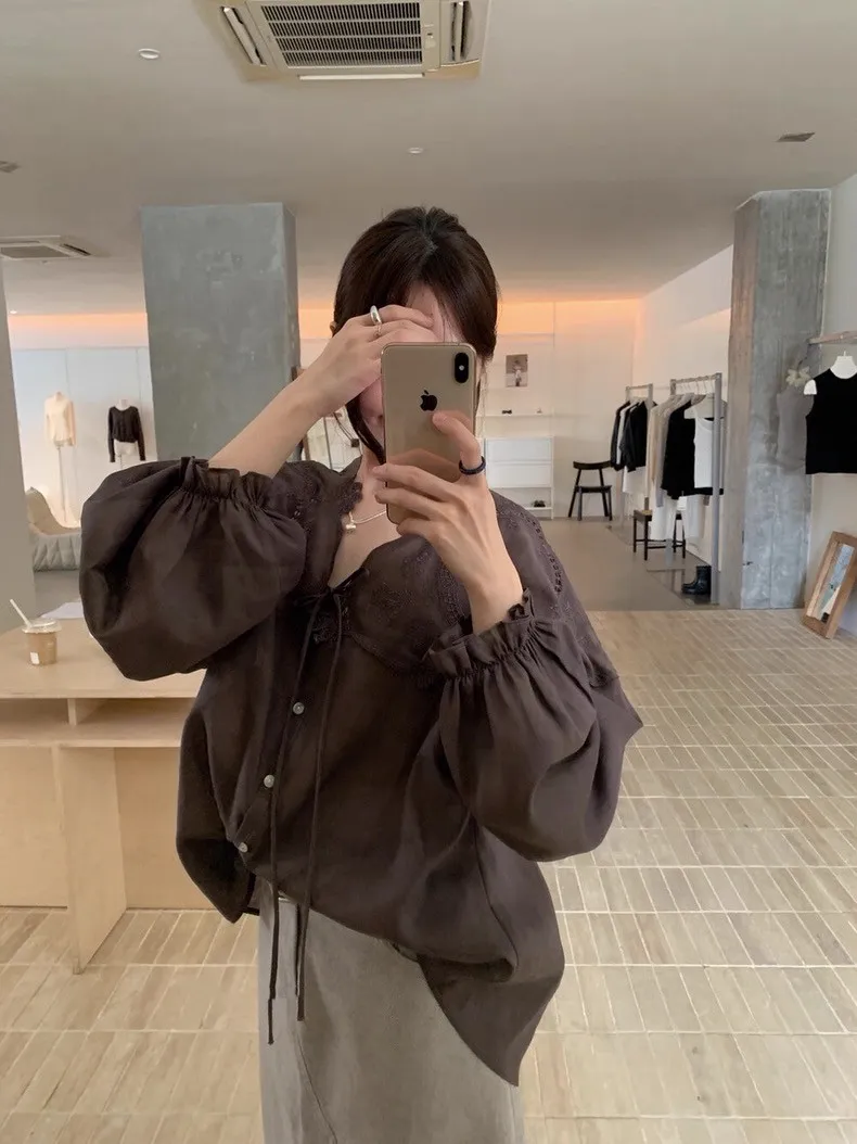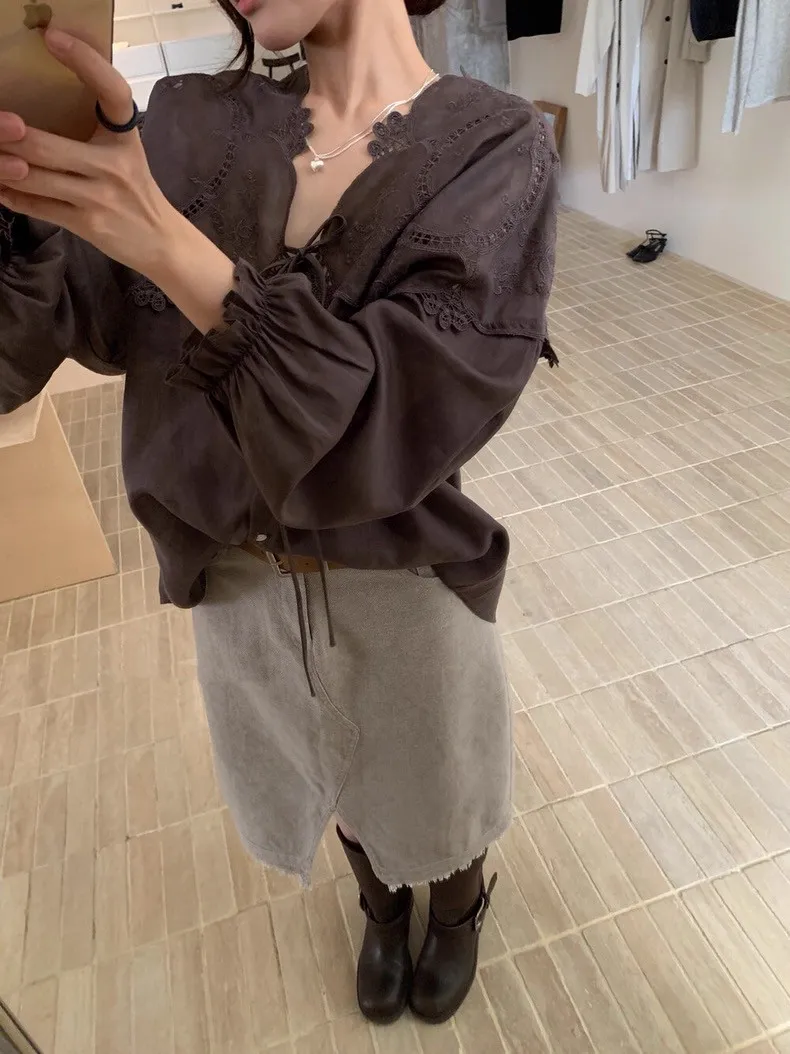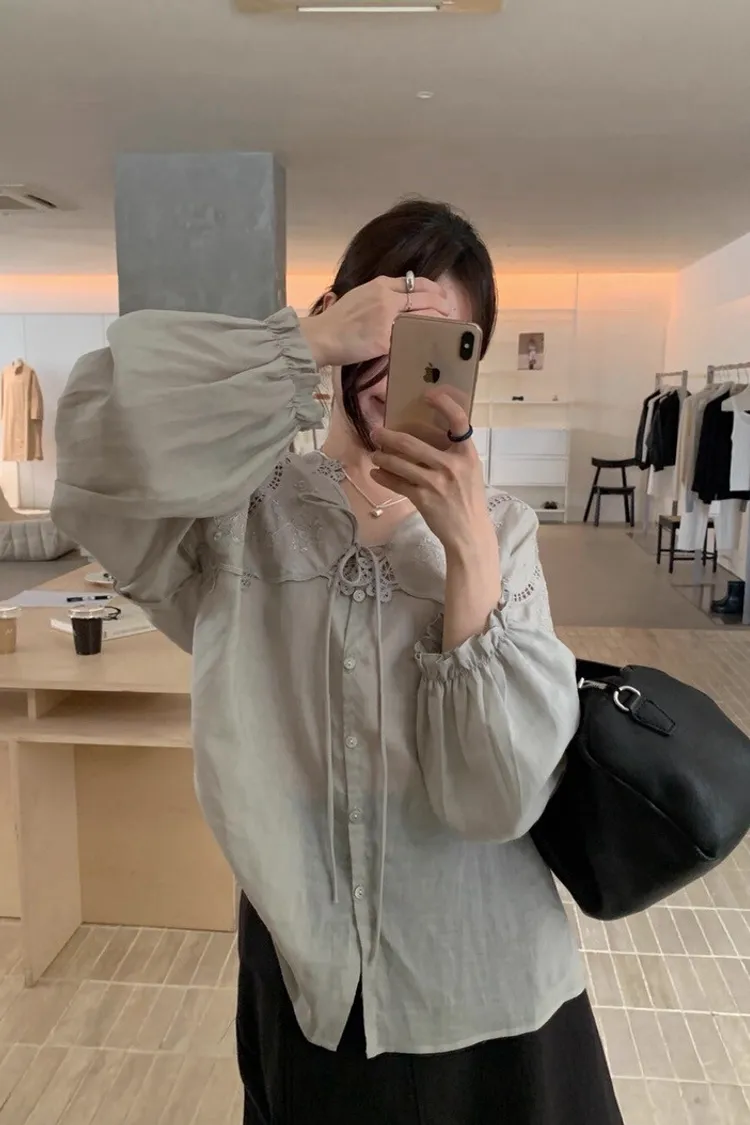 法式鏤空雕花蕾絲長袖襯衫