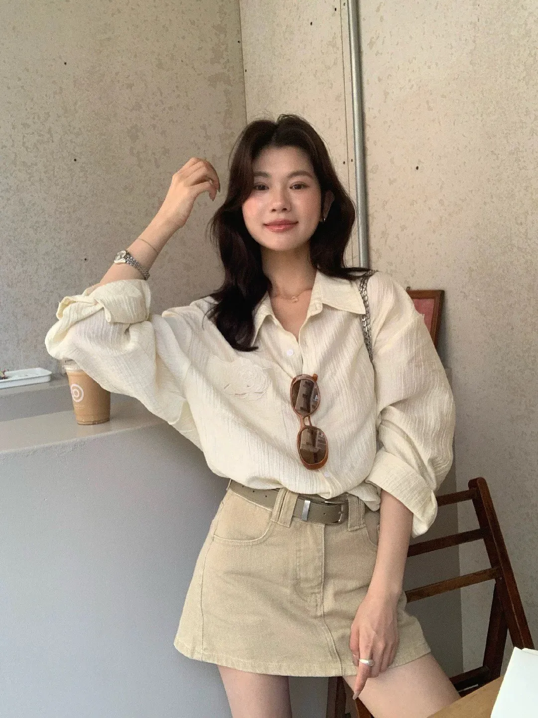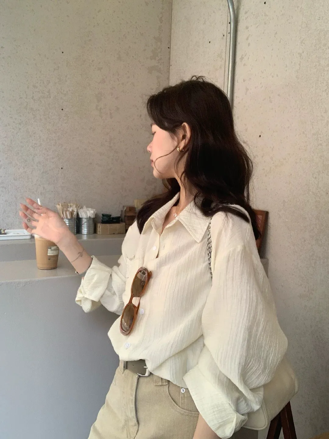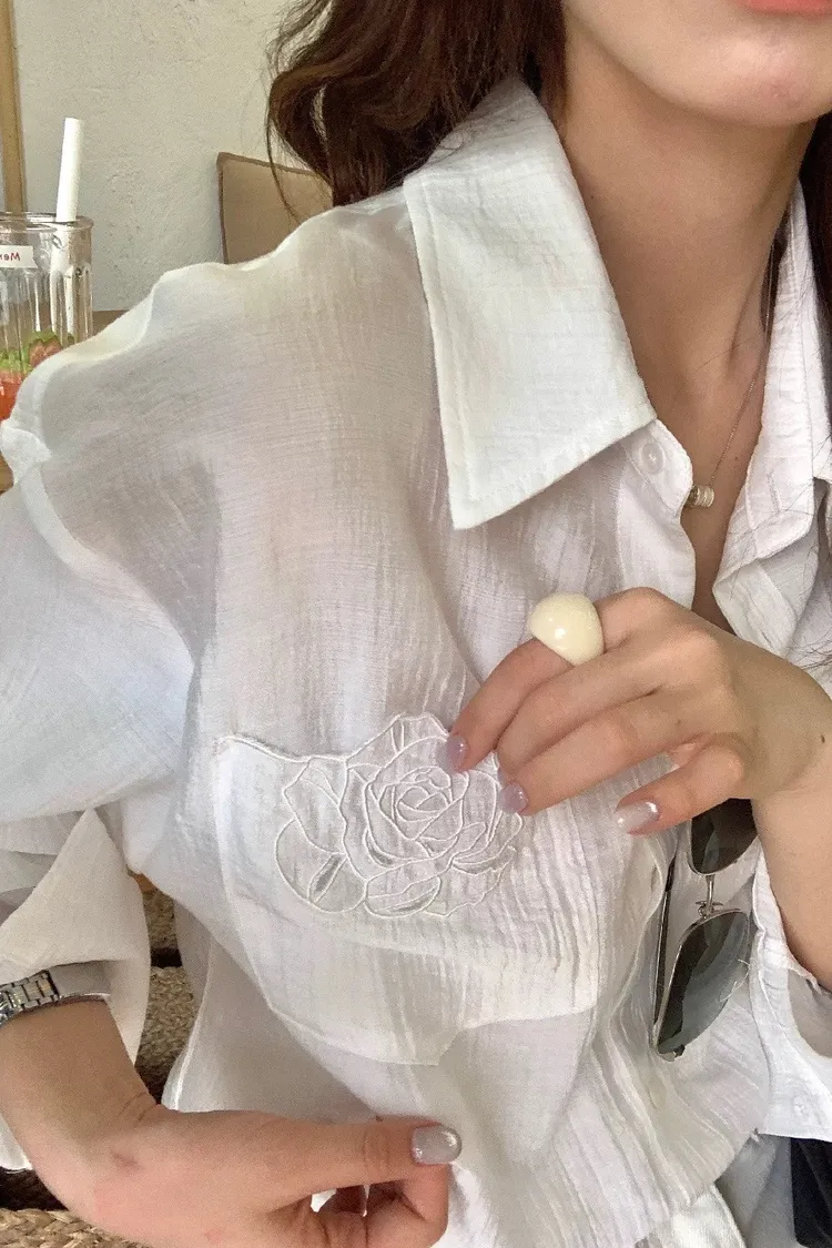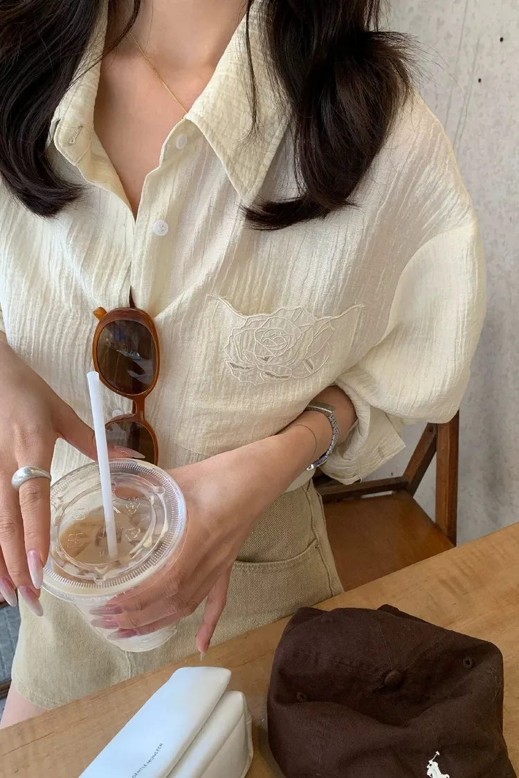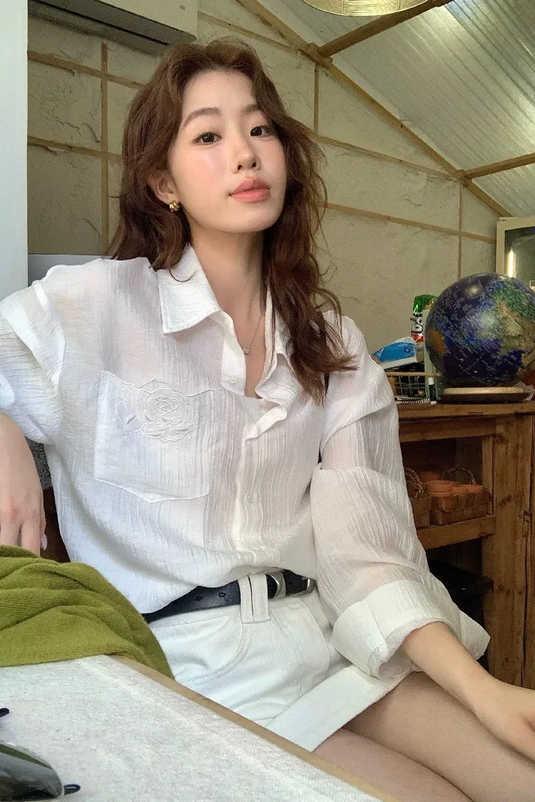 韓系輕奢質感亞麻寬鬆襯衫
