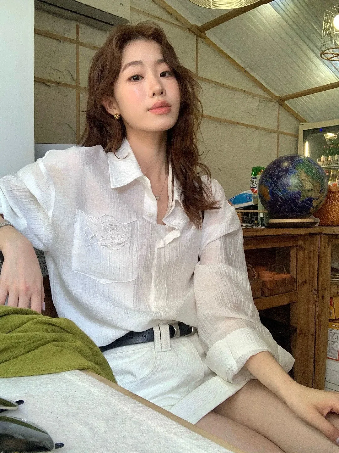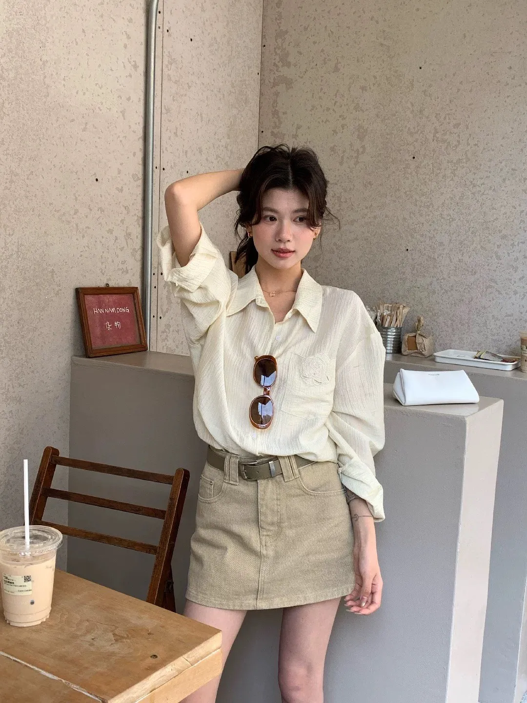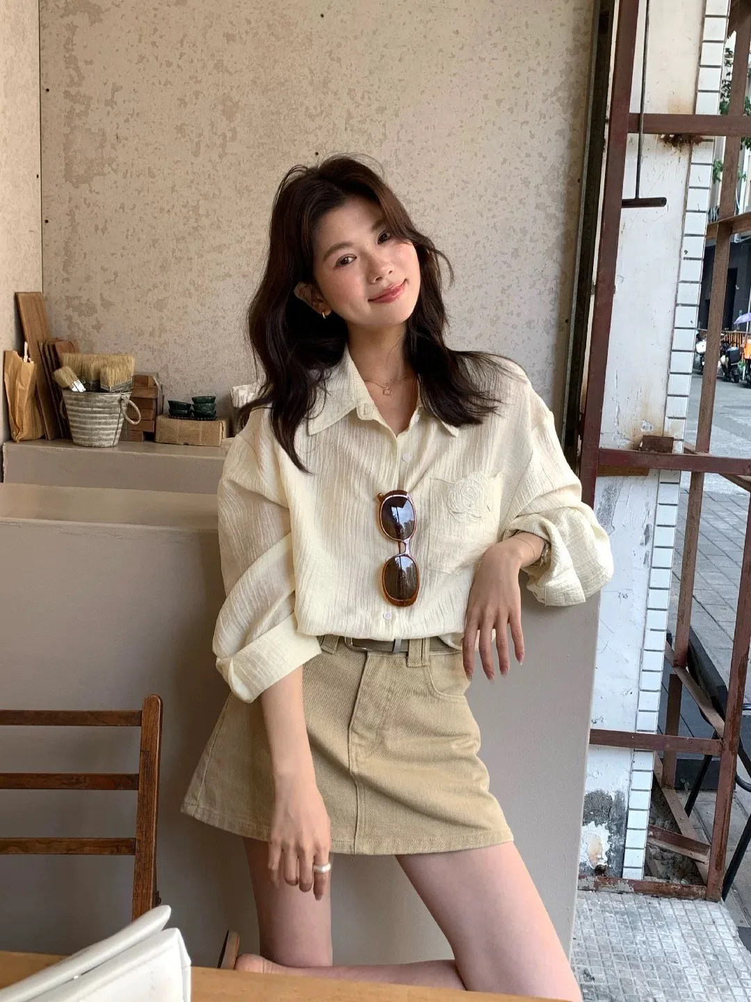 韓系輕奢質感亞麻寬鬆襯衫